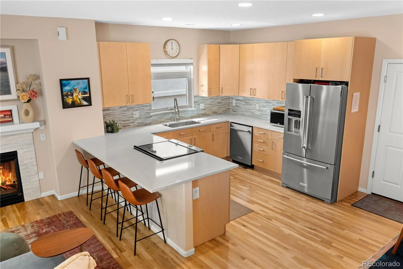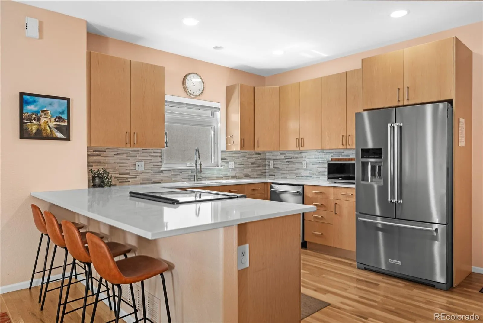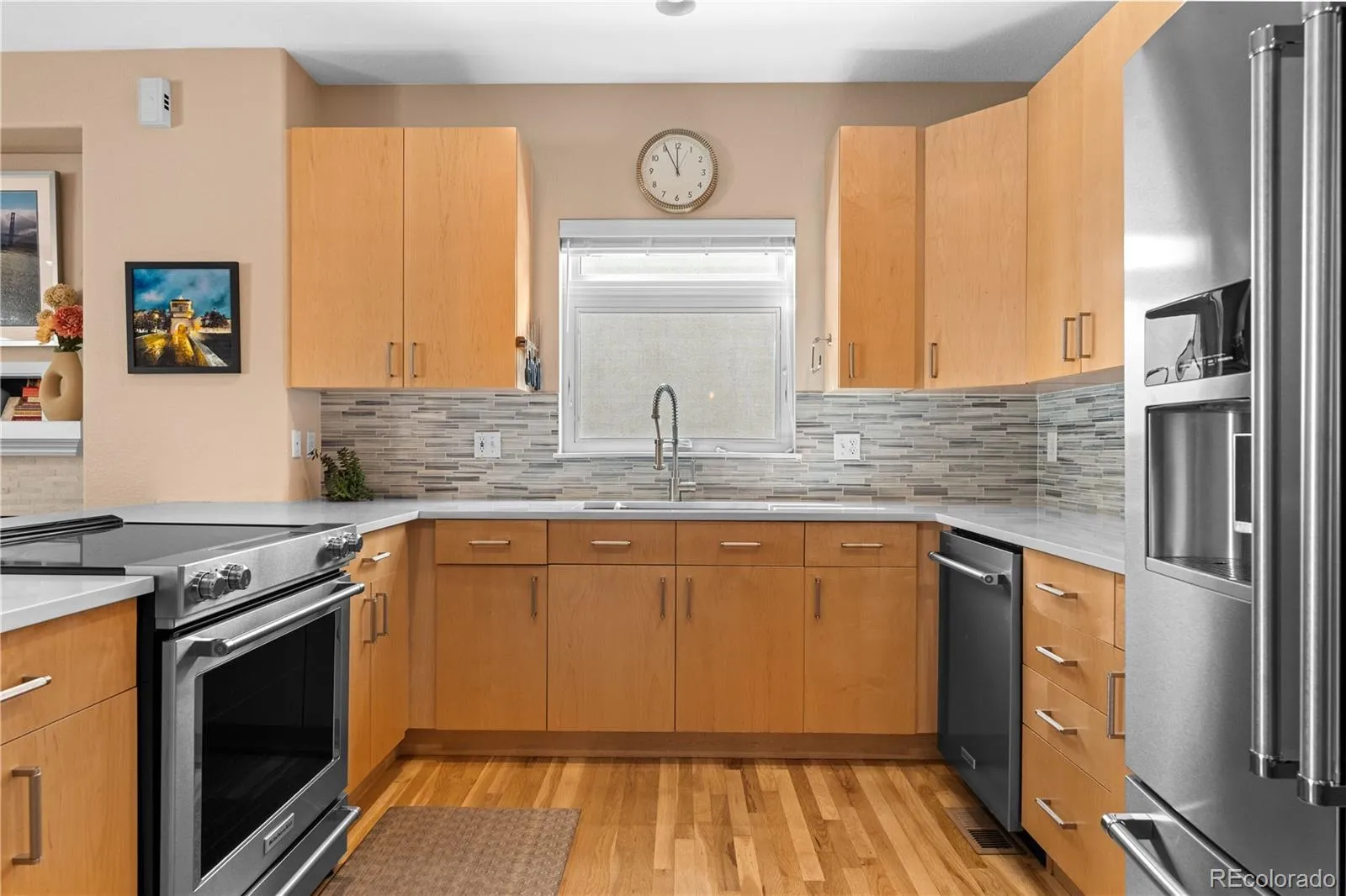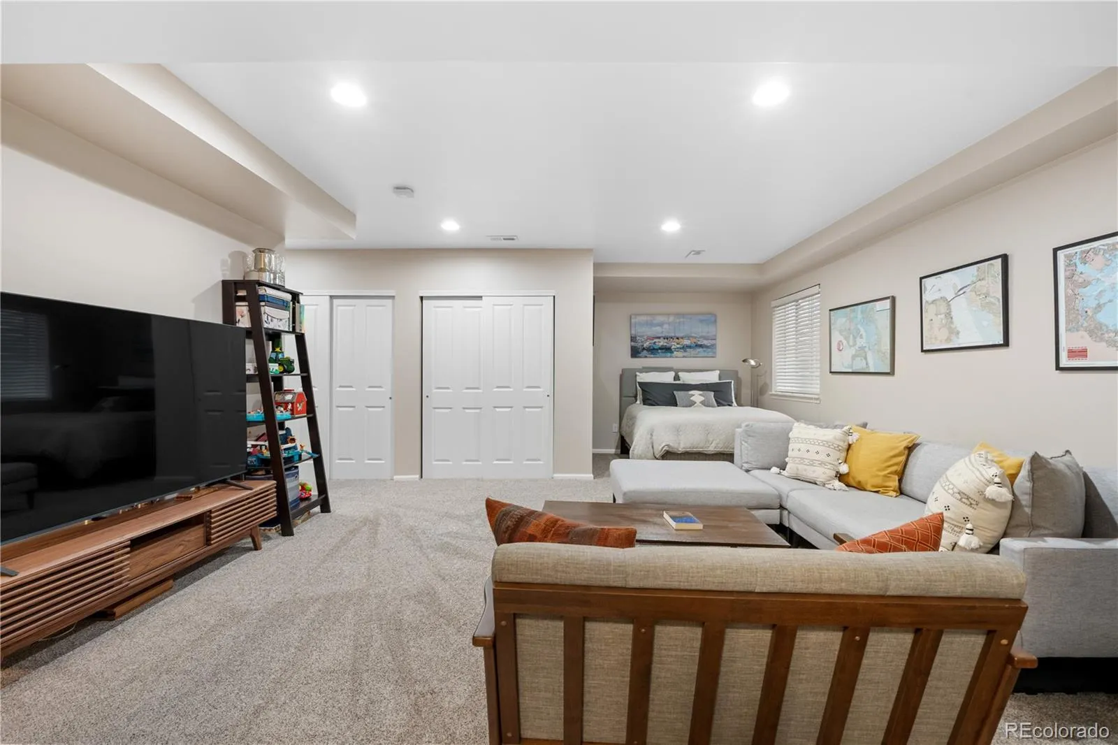 Buyers choice: $10K price reduction to $925K (=$60/m) or $935K + $10K credit to buy down your rate = $342/m saving. Just one block from Sloan’s Lake, this 4-bedroom, 3.5-bath half duplex built in 2003 provides open-concept living and a functional bedroom layout set between a fenced front yard and an attached two-car garage. Through the white picket fence, you’ll walk the new sidewalk along the lush green yard with a sprinkler system, over the new paver patio, up a few steps on the covered Trex deck to the new front door. As you enter, you’ll notice the wide open layout with 9ft ceiling. The main level has updated hardwood flooring throughout, a cozy gas fireplace in the living room, and an open kitchen with counter seating adjacent to a pleasant dining room. The kitchen offers quartz counters, plentiful cabinetry, and new Kitchen Aid appliances. Up the beautiful wood staircase you’ll find three bedrooms and two full baths plus a laundry room — washer and dryer (2020) included. The spacious primary suite has a 5-piece bathroom with a huge vanity, soaking tub and water closet. Downstairs, the finished basement lives like a private suite, complete with a wall of closets, egress window, ¾ bath, and an office with French doors. This area is perfect as a fourth bedroom, office space, gym, or bonus space. Head out your front door to explore Sloan’s Lake, the Highlands, or LoHi nearby. With tree-lined streets, a vibrant neighborhood, and easy access to downtown Denver, this home is city living at its finest. New tankless water heater (2023) / Appliances (2023) / New furnace and AC (2020) / Roof and gutters (2017) / Anderson windows (2016).