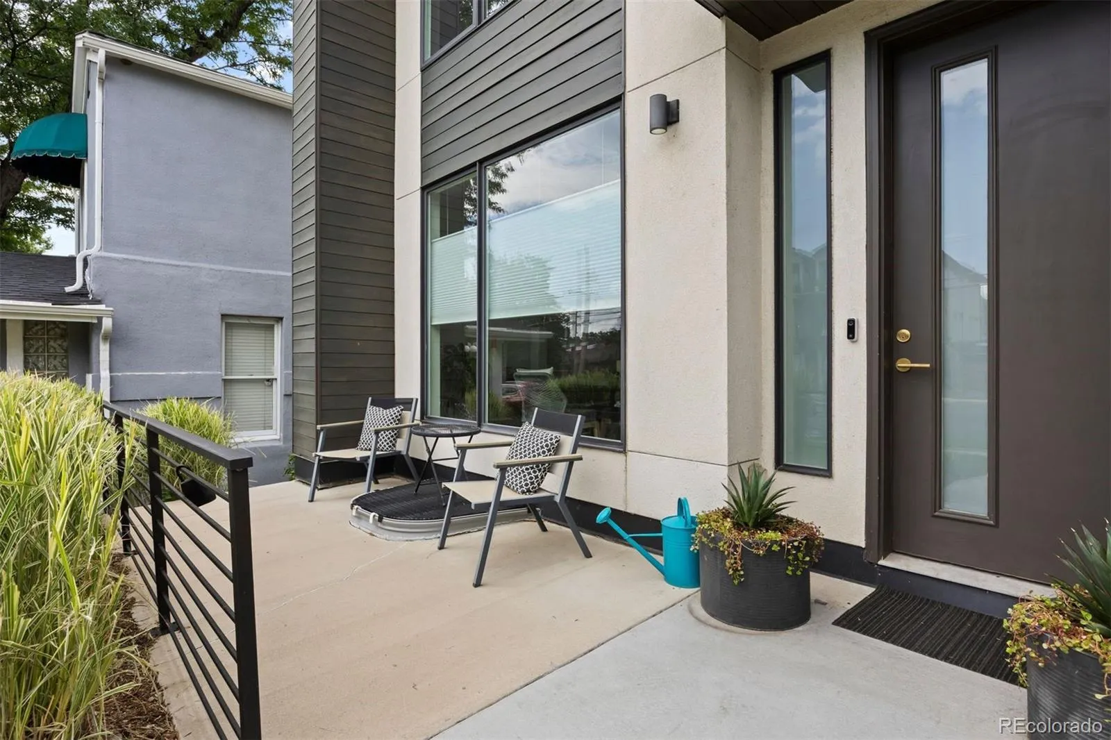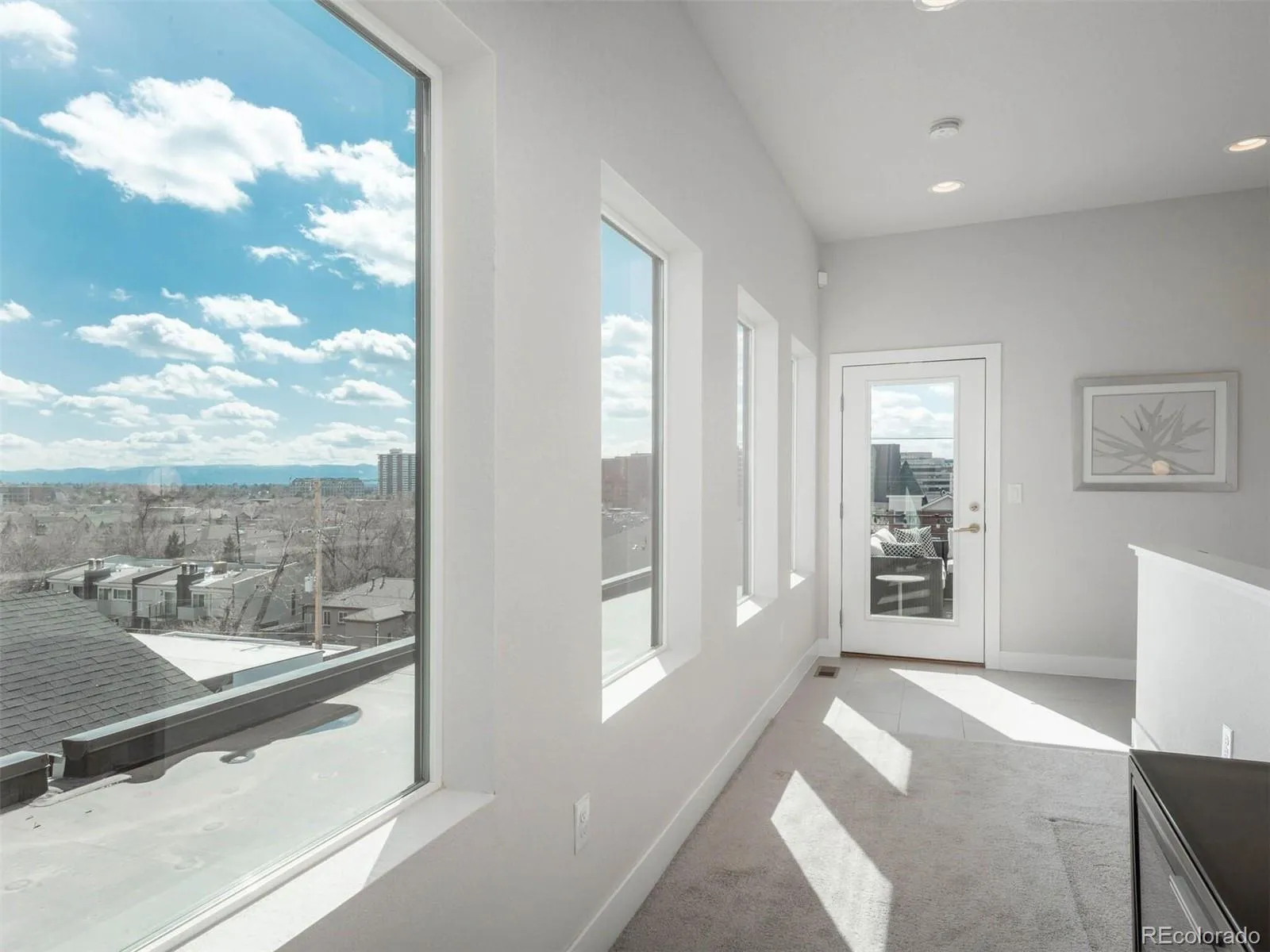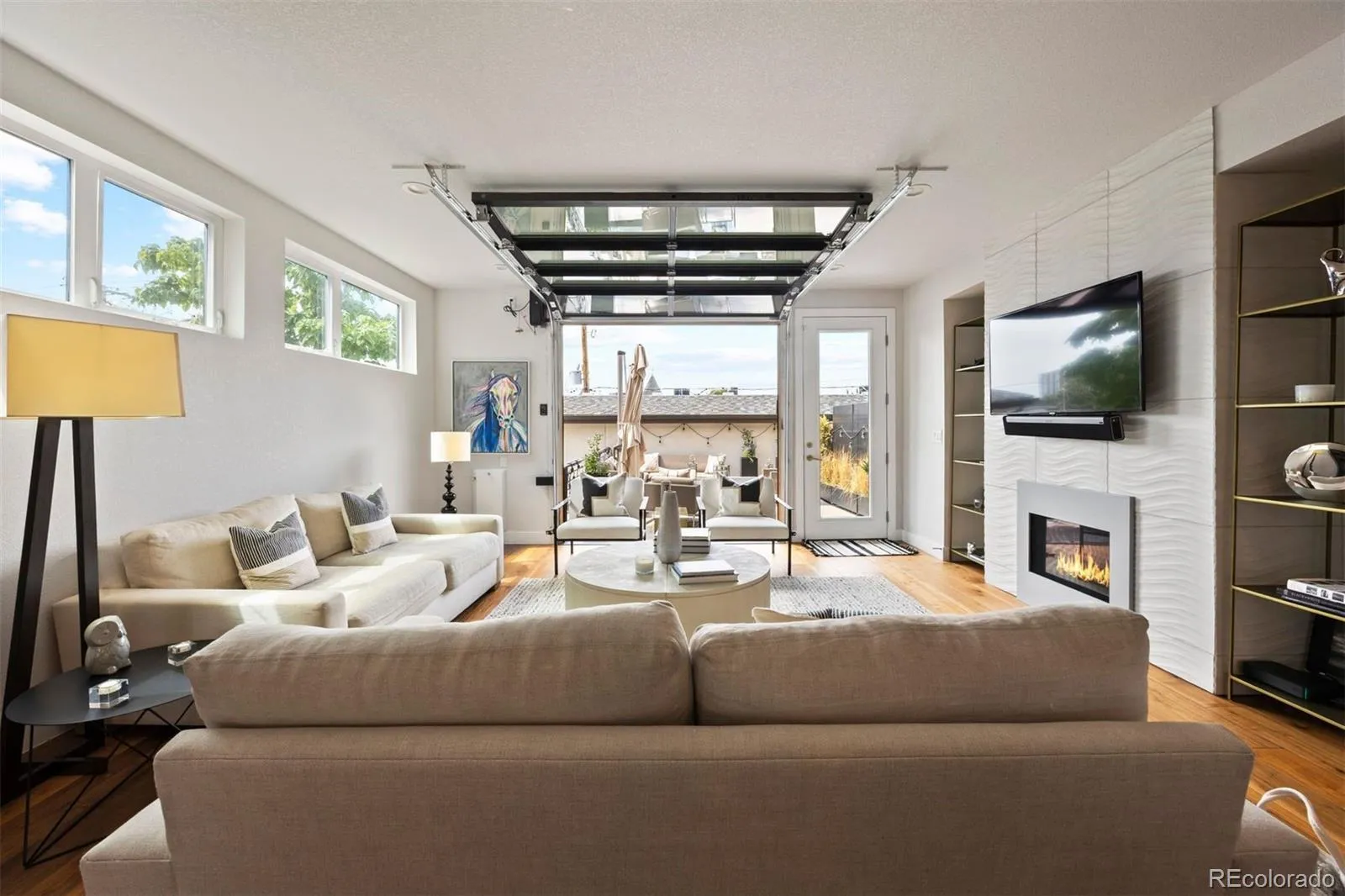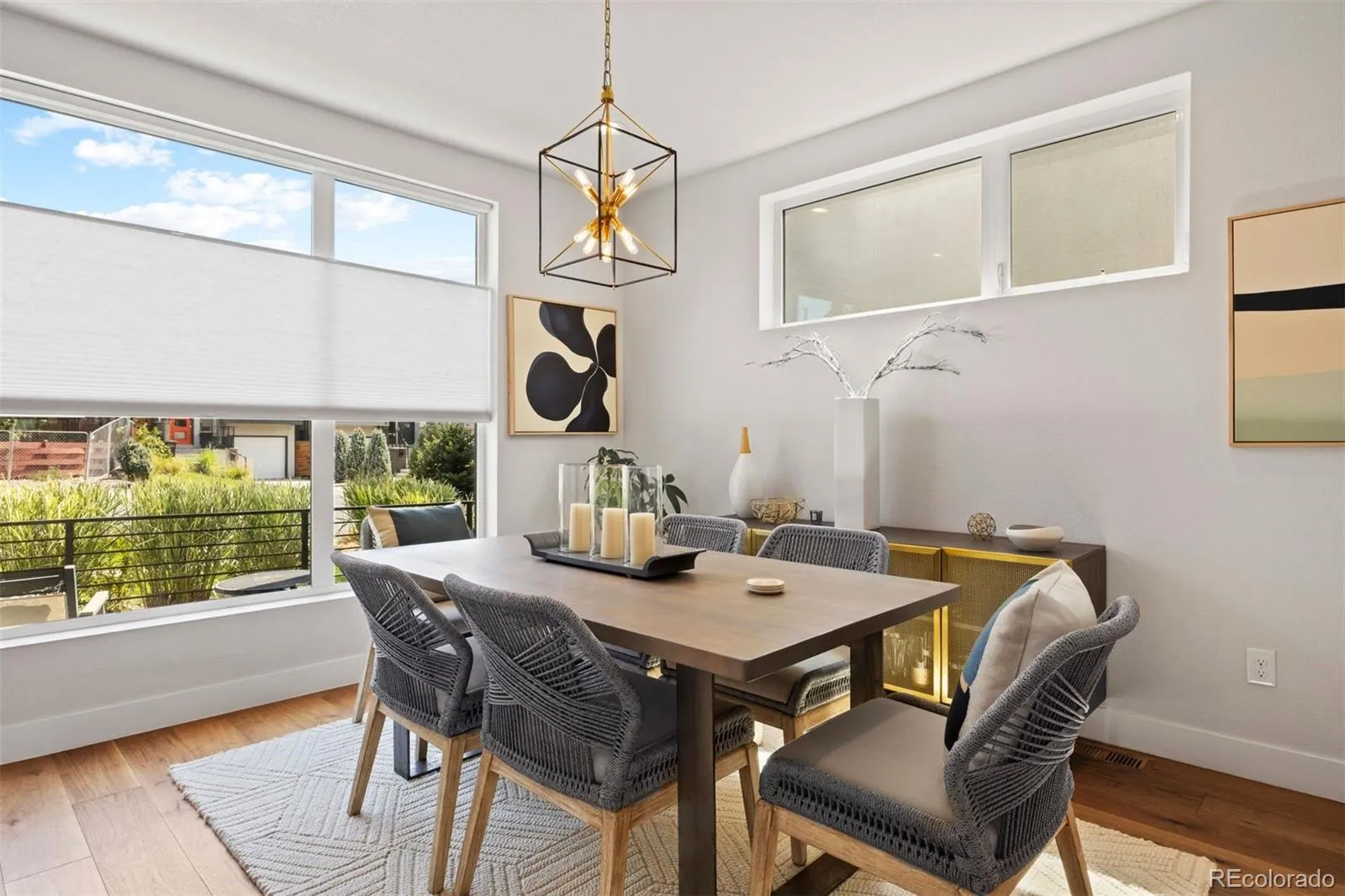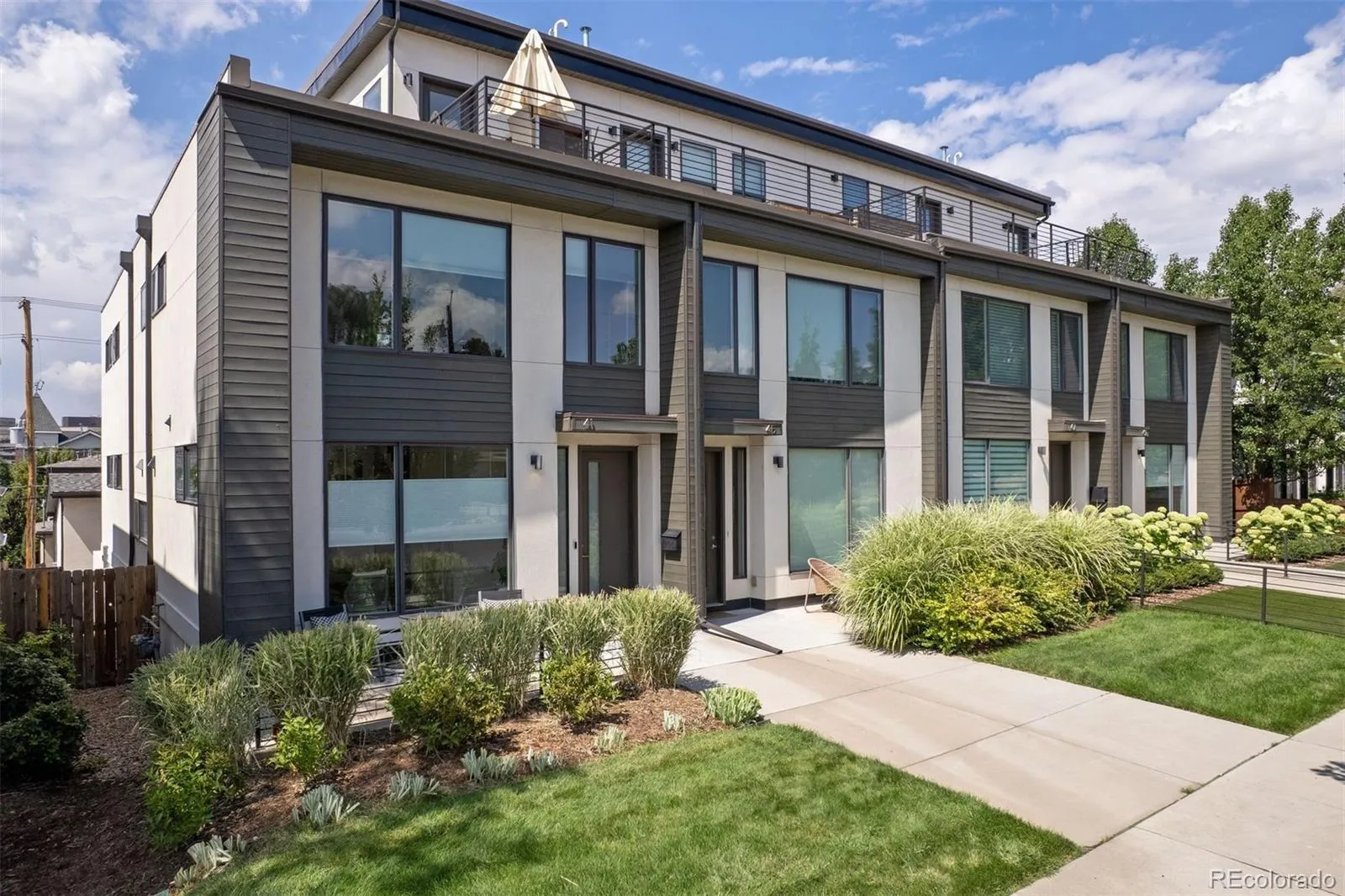 Experience luxury living in this stunning three-story townhome built in 2018 with three outdoor patios and custom features throughout. In 2019, after the original purchase, the kitchen was fully remodeled. It is a chef’s dream with modern white glossy custom soft-close cabinets, Geolux stone countertops, and a large spacious island with seating for 6. The kitchen also features Bosch appliances, a custom paneled Thermador fridge, a wine cooler and Calacatta Marble|Brass Polished Tile backsplash. The dining area features a spectacular chandelier. The family room is light-filled with a gas fireplace, brushed gold shelving, and a garage door that opens to a spacious main floor patio for indoor/outdoor entertaining. Enjoy movie nights with the pre-wired TV and surround sound system. New lighting throughout and custom bottom-up blinds were installed throughout the home to allow for privacy while enjoying all the natural light. The primary bedroom suite on the second floor is spacious with new flooring, fireplace, beautiful windows offering a mountain view, and a walk-in closet. The home is bright and airy with south-facing windows and a side yard for extra outdoor space. The third floor offers light into a gorgeous home office along with flex space and two patios with a hose bib and gas for grilling/heating, and amazing views of the mountains. The home has zoned heating and cooling from two 90% efficient GFA heat and high efficiency 15 seer air conditioning units. The second level features a second bedroom with new flooring, a bath and the laundry area which has a Samsung washer and dryer and cabinets for storage. The basement is finished with a bedroom, a bathroom, a TV area, and two flex spaces for a second home office or other use. The oversized 2-car garage has upgraded electrical and heat, high ceilings with installed rack storage, an insulated door, and a Genie 2028 proline GDO HomeLink and Car2u compatible. Don’t miss this opportunity to own this exquisite townhome