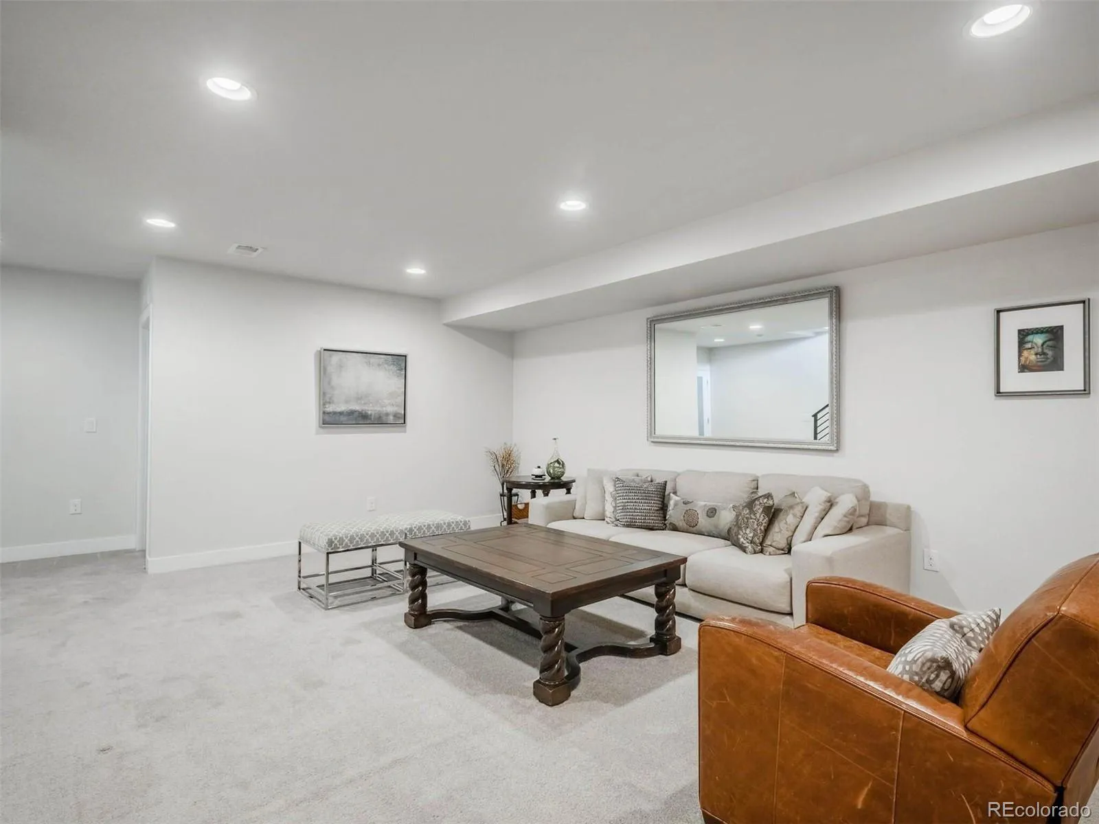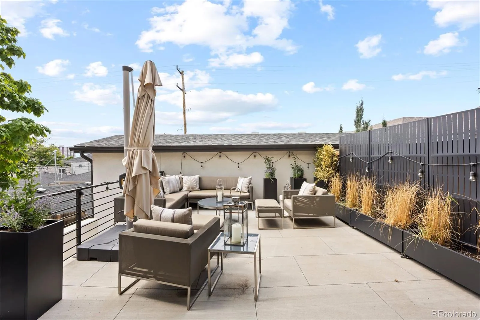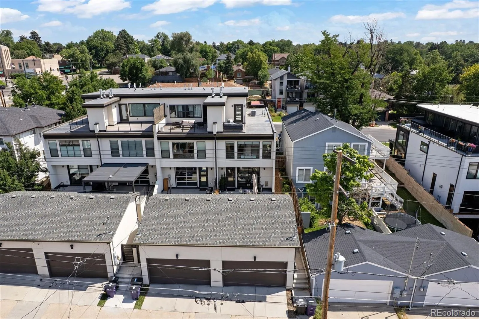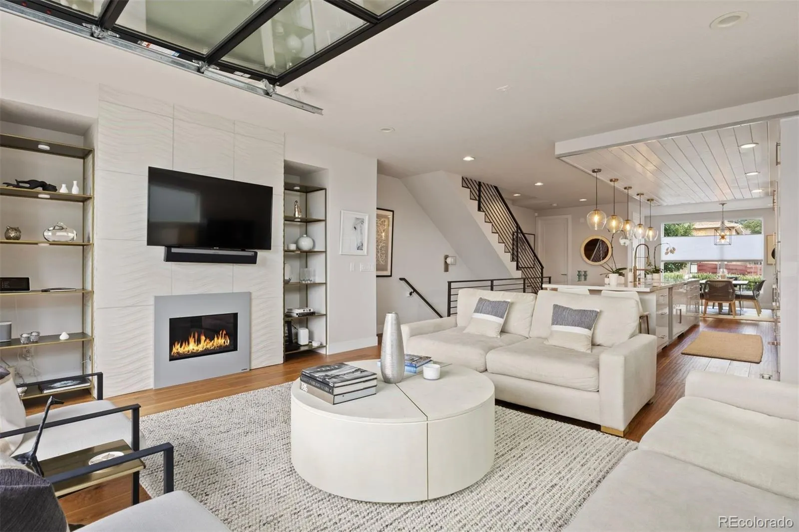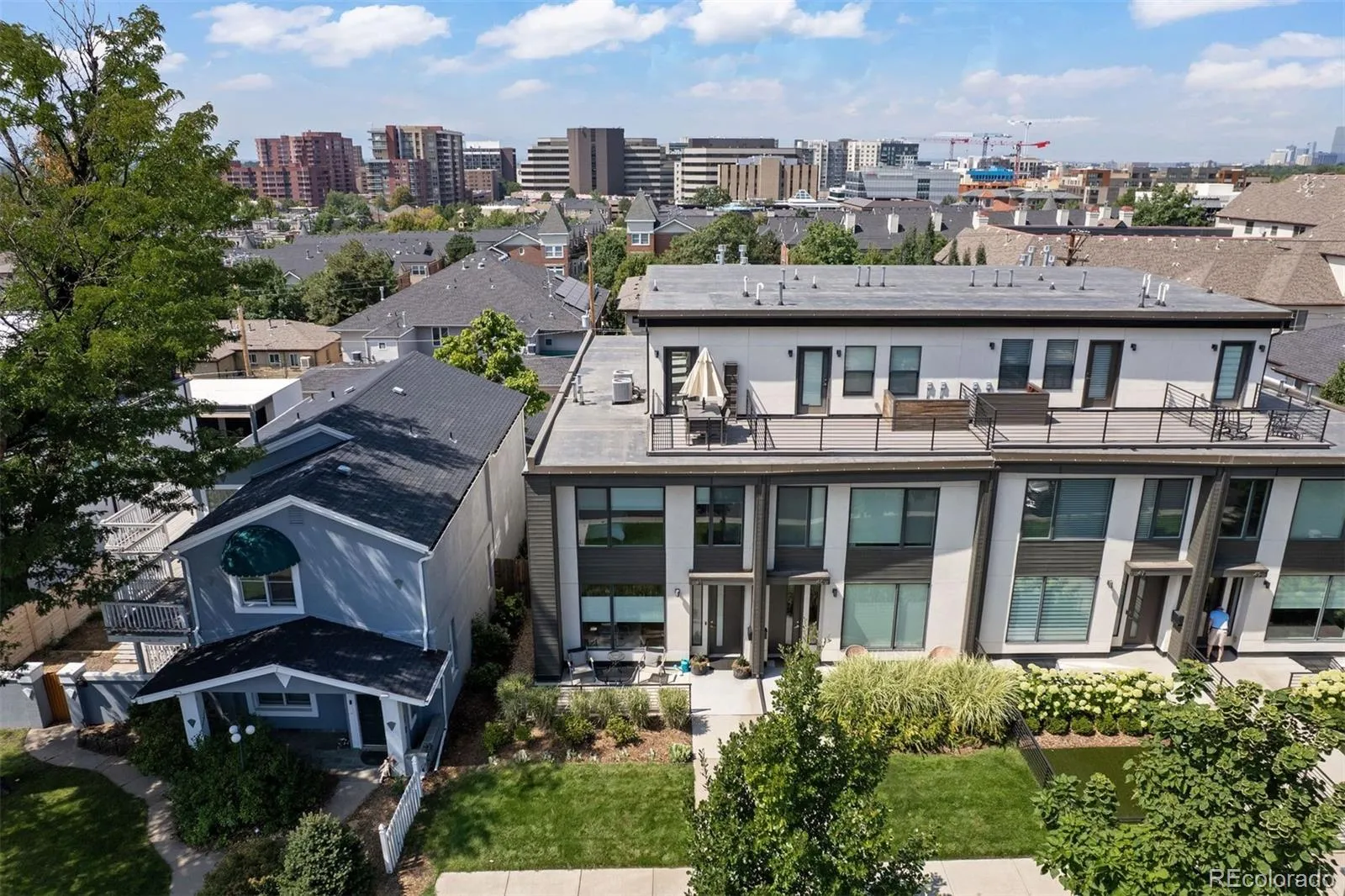 Experience luxury living in this stunning three-story townhome built in 2018 with three outdoor patios and custom features throughout. In 2019, after the original purchase, the kitchen was fully remodeled. It is a chef’s dream with modern white glossy custom soft-close cabinets, Geolux stone countertops, and a large spacious island with seating for 6. The kitchen also features Bosch appliances, a custom paneled Thermador fridge, a wine cooler and Calacatta Marble|Brass Polished Tile backsplash. The dining area features a spectacular chandelier. The family room is light-filled with a gas fireplace, brushed gold shelving, and a garage door that opens to a spacious main floor patio for indoor/outdoor entertaining. Enjoy movie nights with the pre-wired TV and surround sound system. New lighting throughout and custom bottom-up blinds were installed throughout the home to allow for privacy while enjoying all the natural light. The primary bedroom suite on the second floor is spacious with new flooring, fireplace, beautiful windows offering a mountain view, and a walk-in closet. The home is bright and airy with south-facing windows and a side yard for extra outdoor space. The third floor offers light into a gorgeous home office along with flex space and two patios with a hose bib and gas for grilling/heating, and amazing views of the mountains. The home has zoned heating and cooling from two 90% efficient GFA heat and high efficiency 15 seer air conditioning units. The second level features a second bedroom with new flooring, a bath and the laundry area which has a Samsung washer and dryer and cabinets for storage. The basement is finished with a bedroom, a bathroom, a TV area, and two flex spaces for a second home office or other use. The oversized 2-car garage has upgraded electrical and heat, high ceilings with installed rack storage, an insulated door, and a Genie 2028 proline GDO HomeLink and Car2u compatible. Don’t miss this opportunity to own this exquisite townhome