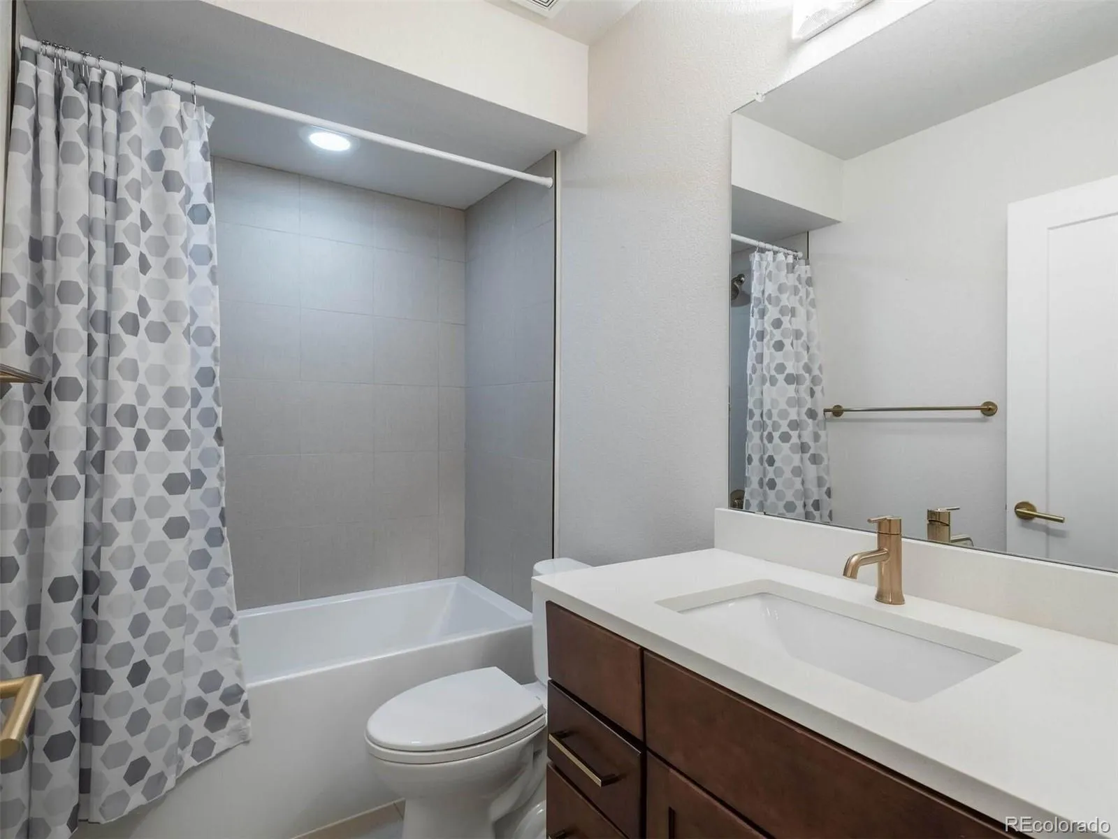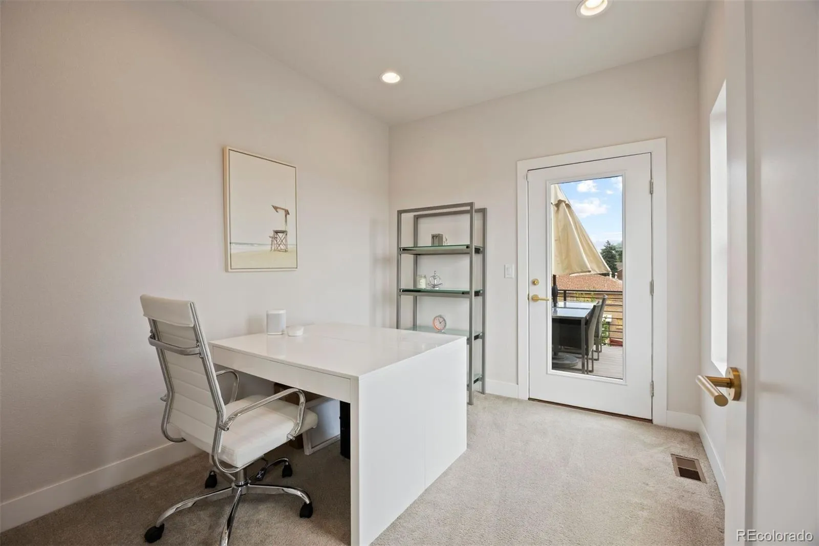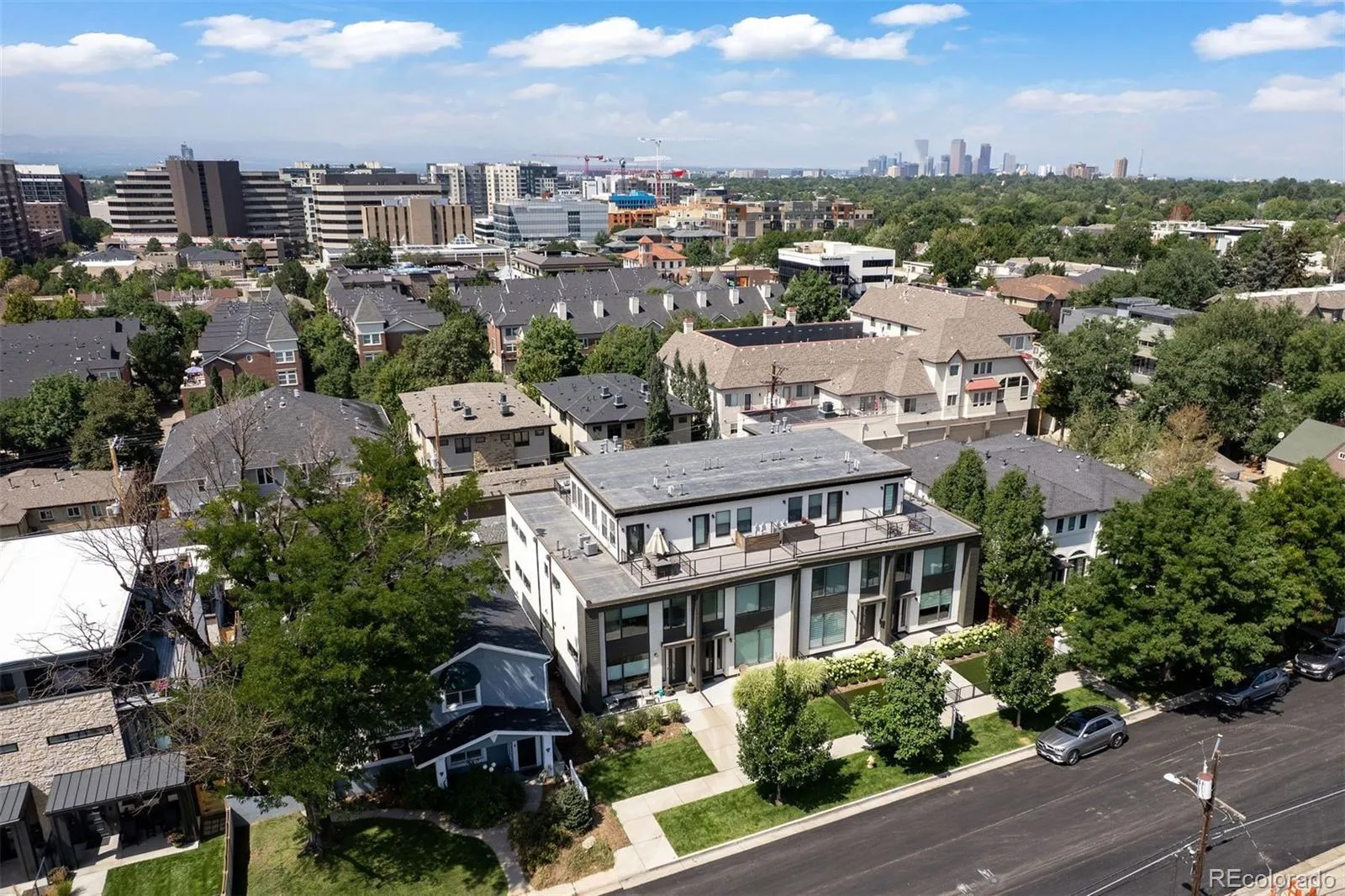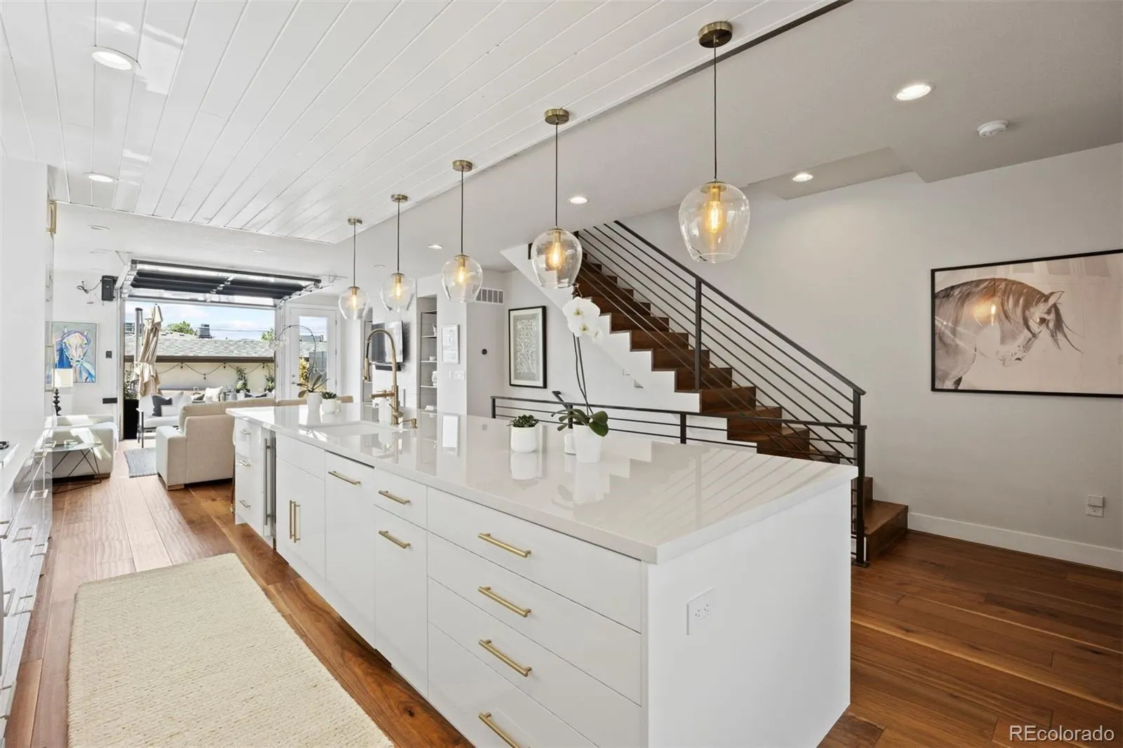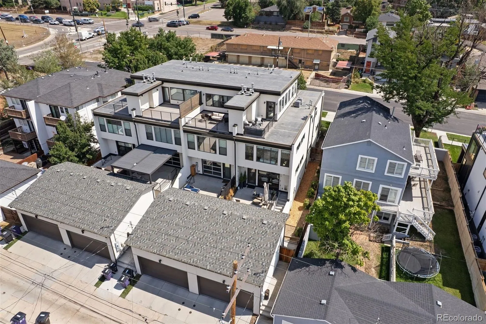 Experience luxury living in this stunning three-story townhome built in 2018 with three outdoor patios and custom features throughout. In 2019, after the original purchase, the kitchen was fully remodeled. It is a chef’s dream with modern white glossy custom soft-close cabinets, Geolux stone countertops, and a large spacious island with seating for 6. The kitchen also features Bosch appliances, a custom paneled Thermador fridge, a wine cooler and Calacatta Marble|Brass Polished Tile backsplash. The dining area features a spectacular chandelier. The family room is light-filled with a gas fireplace, brushed gold shelving, and a garage door that opens to a spacious main floor patio for indoor/outdoor entertaining. Enjoy movie nights with the pre-wired TV and surround sound system. New lighting throughout and custom bottom-up blinds were installed throughout the home to allow for privacy while enjoying all the natural light. The primary bedroom suite on the second floor is spacious with new flooring, fireplace, beautiful windows offering a mountain view, and a walk-in closet. The home is bright and airy with south-facing windows and a side yard for extra outdoor space. The third floor offers light into a gorgeous home office along with flex space and two patios with a hose bib and gas for grilling/heating, and amazing views of the mountains. The home has zoned heating and cooling from two 90% efficient GFA heat and high efficiency 15 seer air conditioning units. The second level features a second bedroom with new flooring, a bath and the laundry area which has a Samsung washer and dryer and cabinets for storage. The basement is finished with a bedroom, a bathroom, a TV area, and two flex spaces for a second home office or other use. The oversized 2-car garage has upgraded electrical and heat, high ceilings with installed rack storage, an insulated door, and a Genie 2028 proline GDO HomeLink and Car2u compatible. Don’t miss this opportunity to own this exquisite townhome