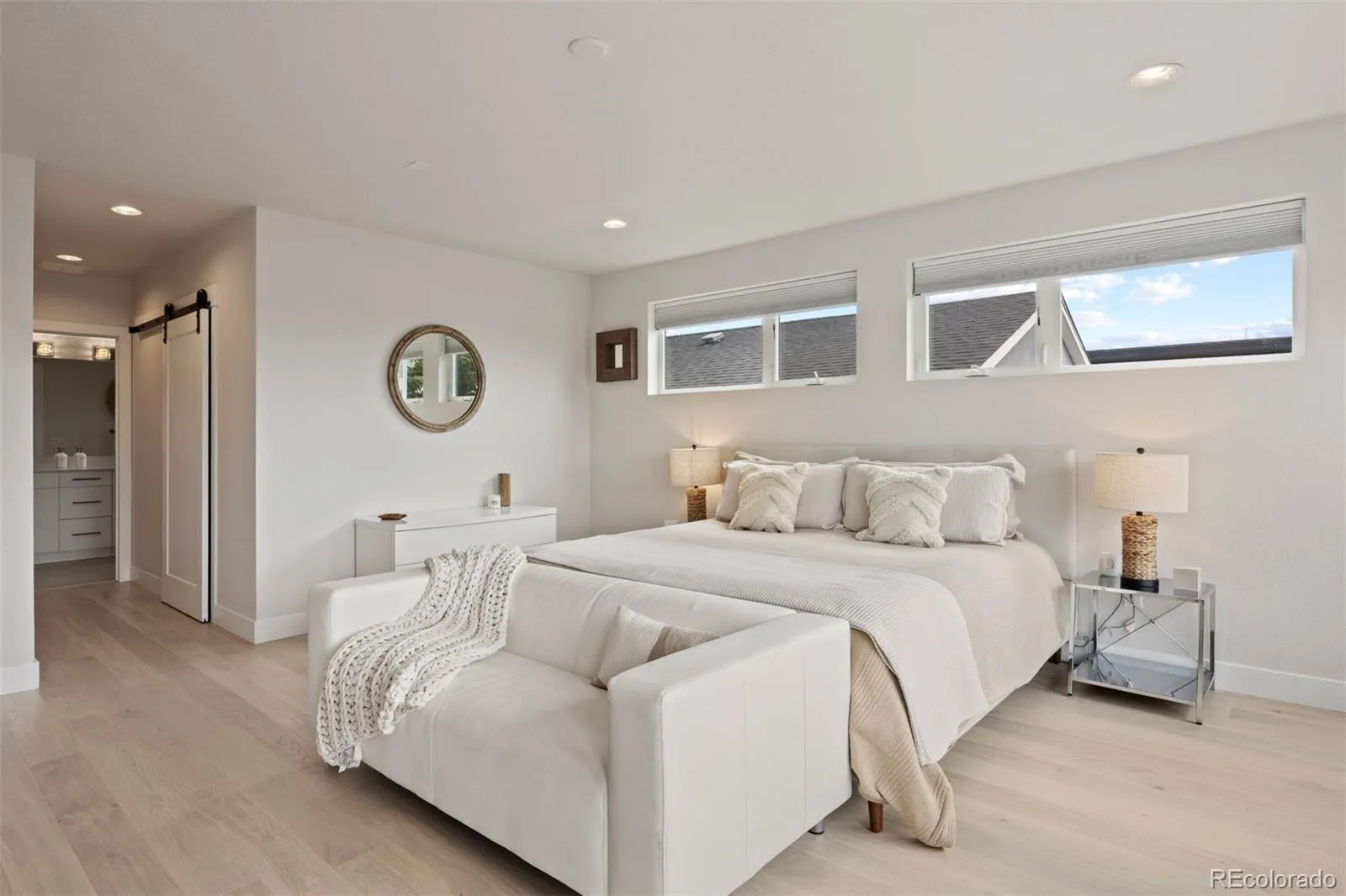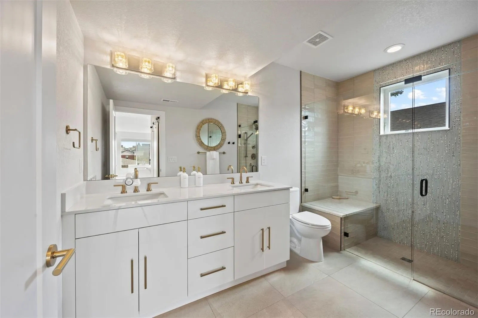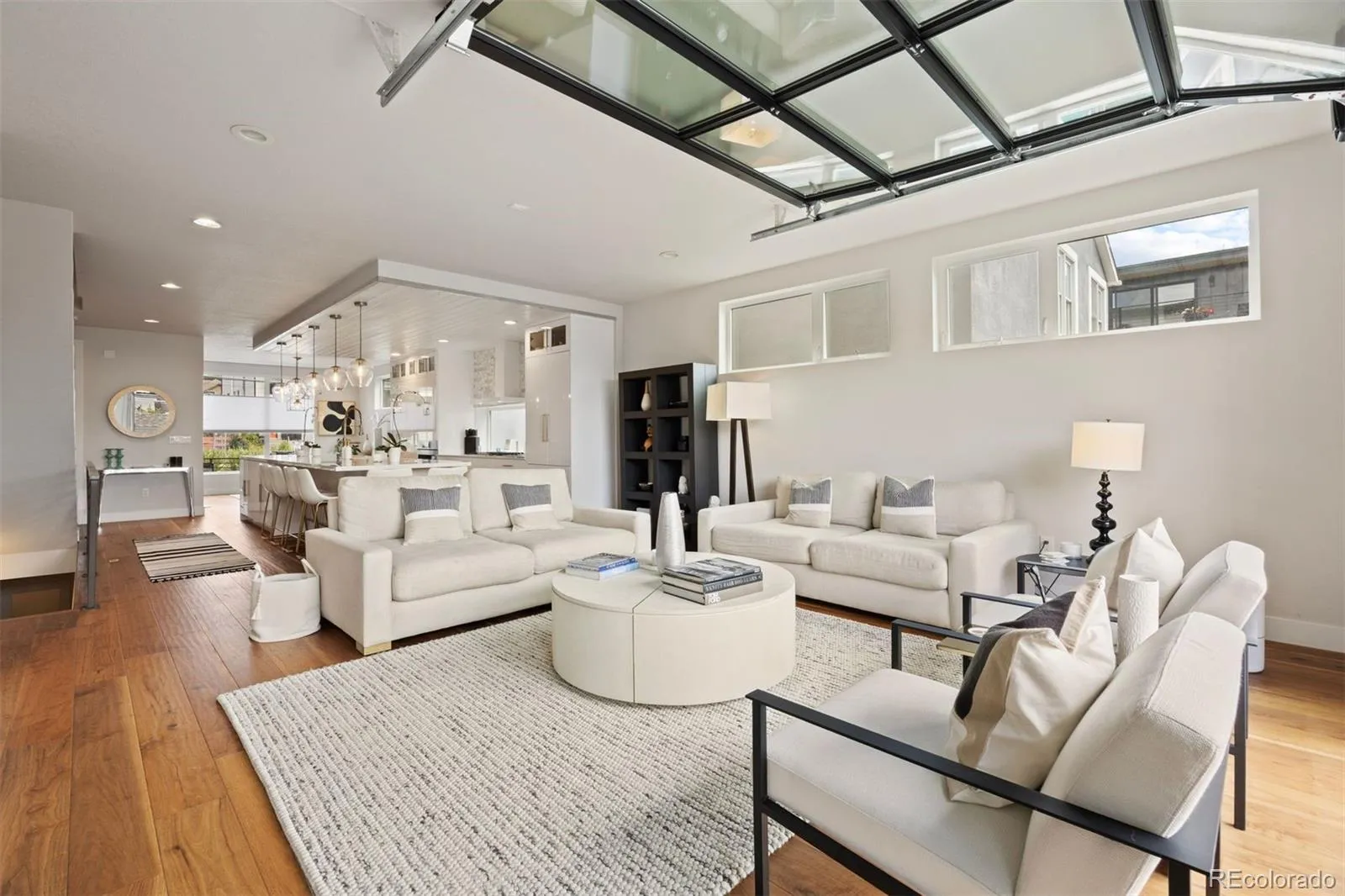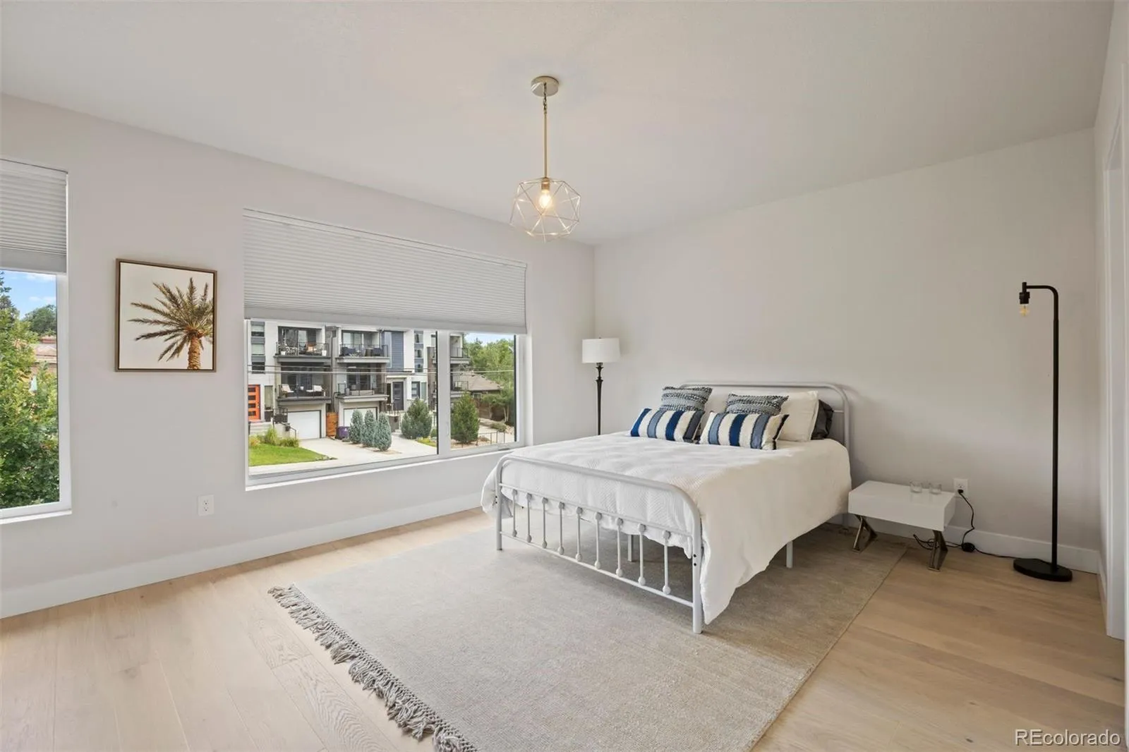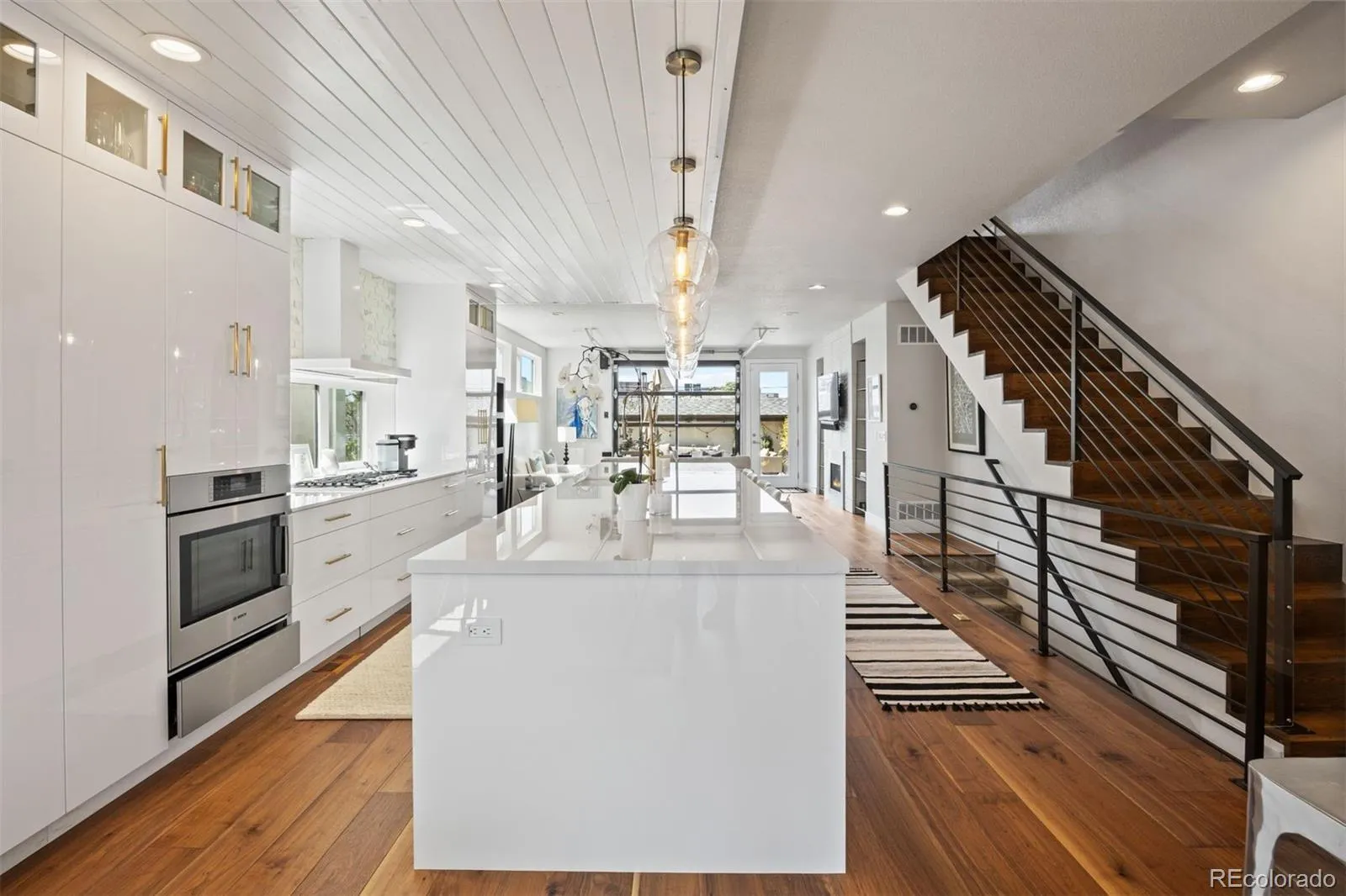 Experience luxury living in this stunning three-story townhome built in 2018 with three outdoor patios and custom features throughout. In 2019, after the original purchase, the kitchen was fully remodeled. It is a chef’s dream with modern white glossy custom soft-close cabinets, Geolux stone countertops, and a large spacious island with seating for 6. The kitchen also features Bosch appliances, a custom paneled Thermador fridge, a wine cooler and Calacatta Marble|Brass Polished Tile backsplash. The dining area features a spectacular chandelier. The family room is light-filled with a gas fireplace, brushed gold shelving, and a garage door that opens to a spacious main floor patio for indoor/outdoor entertaining. Enjoy movie nights with the pre-wired TV and surround sound system. New lighting throughout and custom bottom-up blinds were installed throughout the home to allow for privacy while enjoying all the natural light. The primary bedroom suite on the second floor is spacious with new flooring, fireplace, beautiful windows offering a mountain view, and a walk-in closet. The home is bright and airy with south-facing windows and a side yard for extra outdoor space. The third floor offers light into a gorgeous home office along with flex space and two patios with a hose bib and gas for grilling/heating, and amazing views of the mountains. The home has zoned heating and cooling from two 90% efficient GFA heat and high efficiency 15 seer air conditioning units. The second level features a second bedroom with new flooring, a bath and the laundry area which has a Samsung washer and dryer and cabinets for storage. The basement is finished with a bedroom, a bathroom, a TV area, and two flex spaces for a second home office or other use. The oversized 2-car garage has upgraded electrical and heat, high ceilings with installed rack storage, an insulated door, and a Genie 2028 proline GDO HomeLink and Car2u compatible. Don’t miss this opportunity to own this exquisite townhome