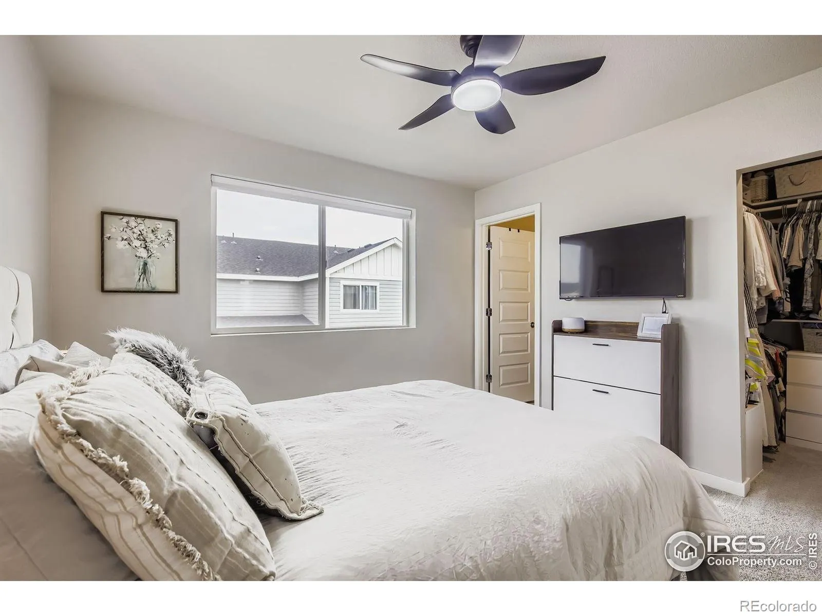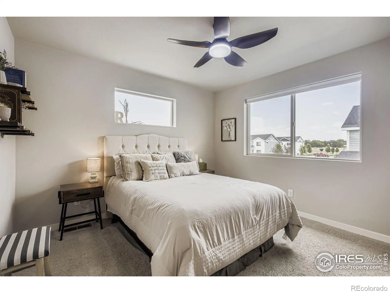 REDUCED PRICE!! LOW QTLY HOA. Nearly new! Modern, low-maintenance living, end unit townhome featuring a spacious 2-car garage, central A/C, and a private fenced courtyard, this home is perfect for those seeking comfort, convenience, and the Colorado lifestyle. With nearby parks, playgrounds, and mountain views, it’s an ideal primary residence or lock-and-leave getaway. Step inside to soaring 9′ ceilings on the main level, durable luxury vinyl plank flooring, and an open Great Room filled with natural light. The kitchen blends style and function with upgraded 42″ cabinets, stainless steel appliances, ample storage, a central island, and a breakfast bar-perfect for entertaining or everyday meals. A convenient half bath completes the main level. Upstairs, both bedrooms feature their own bathrooms, providing privacy and flexibility for guests, roommates, or a home office. The primary suite includes a cozy ensuite bath, while the laundry area is just steps away for added ease. Enjoy evenings on your front porch, ideal for relaxing or hosting friends. With a high-efficiency furnace, thoughtful design, and low-maintenance exterior, this move-in ready townhome is ready to welcome its next owner.