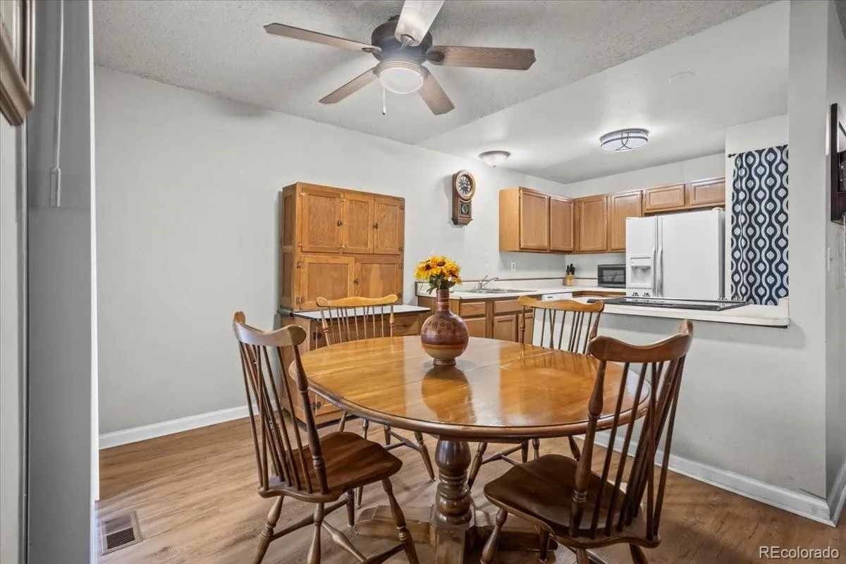 No stairs! Enjoy main floor living in this end unit condo with lots of natural light and great curb appeal. Move in ready! This 1 bed, 1 bath is spacious and has newer laminate flooring throughout that brightens up the open floor plan. Gas fireplace in living. South facing bedroom has plenty of closet of space. The kitchen includes all appliances and has lots of cabinet space for all your kitchen ware. The eat-in kitchen includes a separate dining area, and the slider from the dining room leads out to a large warm facing covered front patio with room for table, chairs and grill, and enjoying your coffee and quite time. Updated bath with walk-in shower, and newer windows. Attached 1-car garage and in-unit full washer and dryer. Low HOA, no metro tax. Central Lafayette location and easy access to Hwy 287, enjoy the convenience and location this condo provides. Close to Waneka Lake, shops and more. Property sold AS-IS.