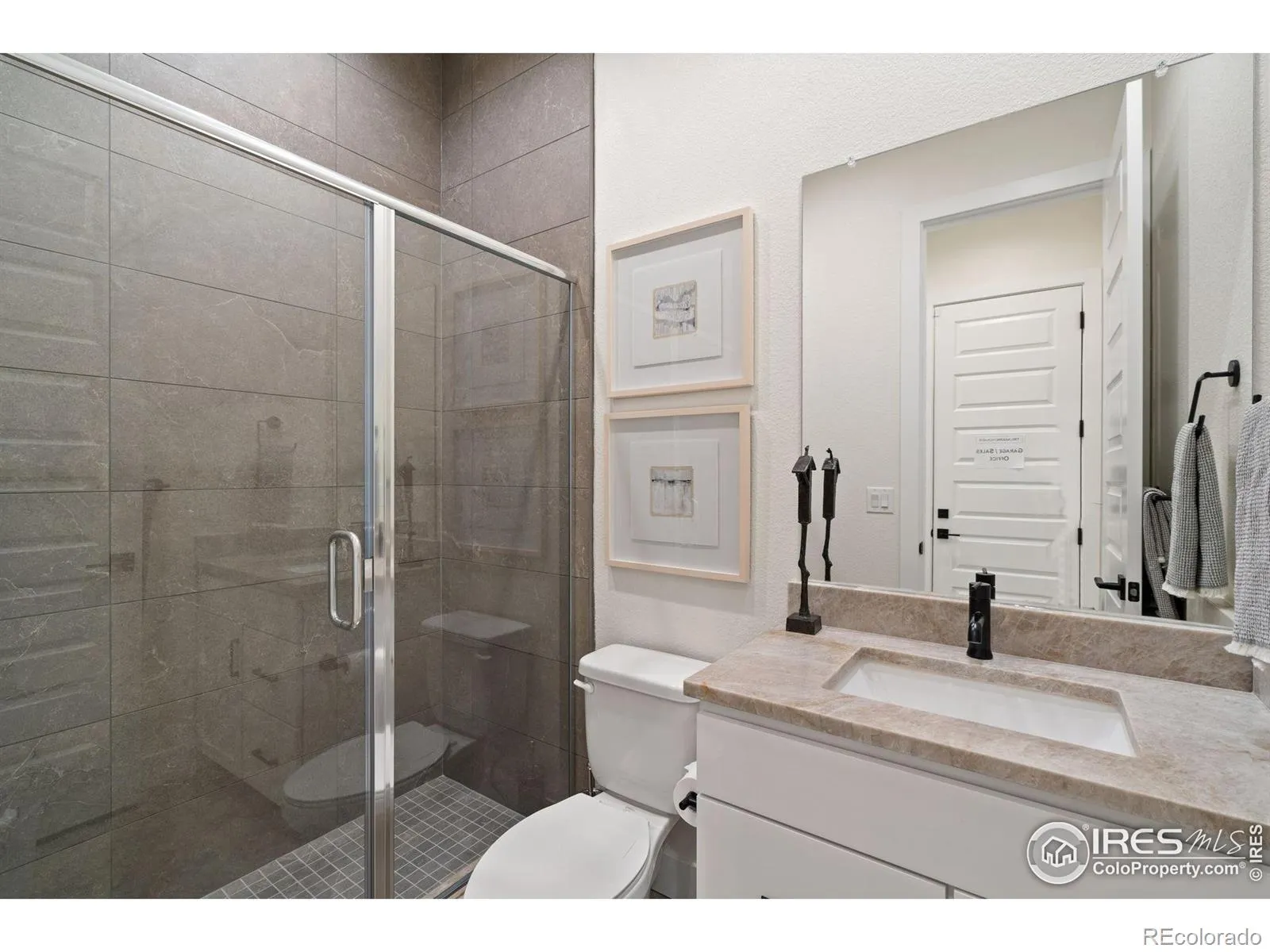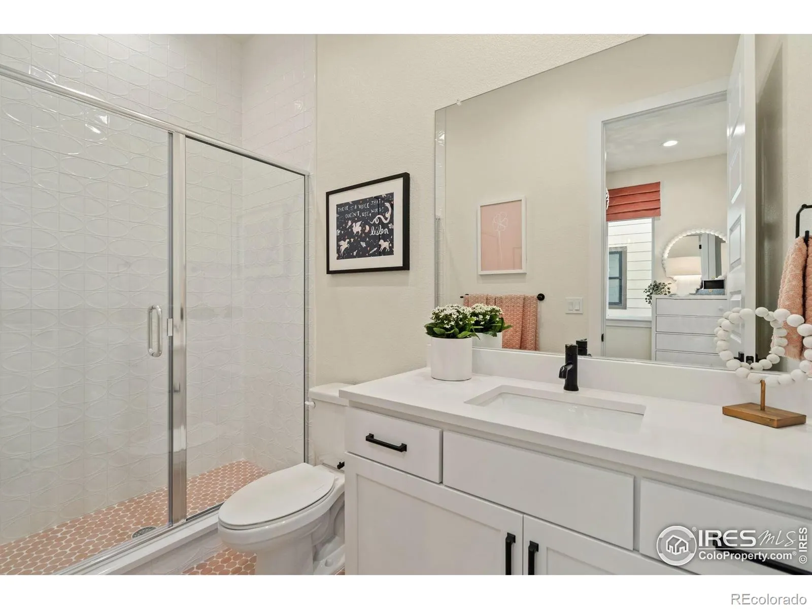 Spectacular former ranch model at Sugar Hills in Raindance featuring four bedrooms each with its own bath and designer details throughout! Upon entering the home, you will find two ensuite bedrooms that share a private and spacious family room separate from the main living spaces, great privacy, and a feeling of separate living quarters. Entertain in a luxurious kitchen complete with stunning maple Shaker style cabinets with White and Sage finishes, honed quartzite countertops, walk in pantry and stainless-steel appliance package. The kitchen flows to the dining and great room both opening to an oversized covered outdoor room with two 8′ sliding glass doors, making this spacious area perfect for entertaining! Spacious 10-foot ceilings, white 8-foot six panel interior doors and 5″” trim, stunning black iron handrail details, modern linear gas fireplace and black exterior windows. Retreat to the private grand suite after a busy day and soak in the freestanding tub. An oversized walk-in shower with poured pan and floor to ceiling tile, separate vanities and two separate custom closets complete this beautiful spa like space. Private office space and main floor laundry are conveniently located off the great room. The split 3-car garage makes for the perfect golf cart storage or even a dedicated workshop. A partial finished basement with bed, bath rec room and beautiful wet bar is perfect for all your entertaining needs. Neighborhood amenities of community trails, parks, orchards, and trash, are included in your metro district fees, plus optional access to all of the award-winning RainDance National community amenities. *Former model home has never been occupied. Shown by appointment only – visit the sales office at 1554 Winter Glow – open daily. Neighborhood amenities:15 miles of trails, orchards, trash/recycling are included in master HOA dues of $300/yr. Membership to the Raindance pool is optional and currently $510/year.