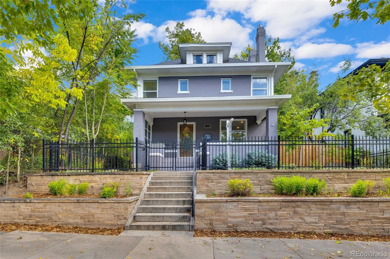 In the coveted 7th Avenue Historic District, where century-old trees line the streets and history lingers in brick and stone, a rare gem awaits. Built in 1907 and restored for modern living, this stunning Denver Square seamlessly blends timeless craftsmanship with refined designer detail. Set along one of Denver’s most iconic streets, the home welcomes you with lush landscaping and a gracious front porch. Inside, a parlor fireplace wrapped in Ann Sacks tile sets a warm, sophisticated tone, while the formal dining room glows alongside an original curved glass bay window. The gourmet kitchen, remodeled with cherry cabinetry and Bosch appliances, flows into a spacious family room that opens through French doors to a remarkable outdoor oasis. Entertain or unwind on the 400 sq. ft. patio beneath a pergola and bistro lighting, surrounded by a Hügelkultur garden, rose beds, and the original carriage house (turned garage) framed by a historic masonry wall.