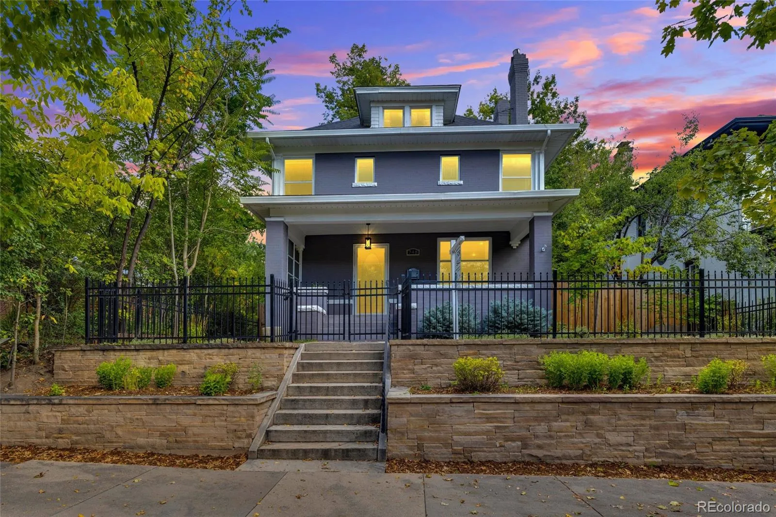 In the coveted 7th Avenue Historic District, where century-old trees line the streets and history lingers in brick and stone, a rare gem awaits. Built in 1907 and restored for modern living, this stunning Denver Square seamlessly blends timeless craftsmanship with refined designer detail. Set along one of Denver’s most iconic streets, the home welcomes you with lush landscaping and a gracious front porch. Inside, a parlor fireplace wrapped in Ann Sacks tile sets a warm, sophisticated tone, while the formal dining room glows alongside an original curved glass bay window. The gourmet kitchen, remodeled with cherry cabinetry and Bosch appliances, flows into a spacious family room that opens through French doors to a remarkable outdoor oasis. Entertain or unwind on the 400 sq. ft. patio beneath a pergola and bistro lighting, surrounded by a Hügelkultur garden, rose beds, and the original carriage house (turned garage) framed by a historic masonry wall.