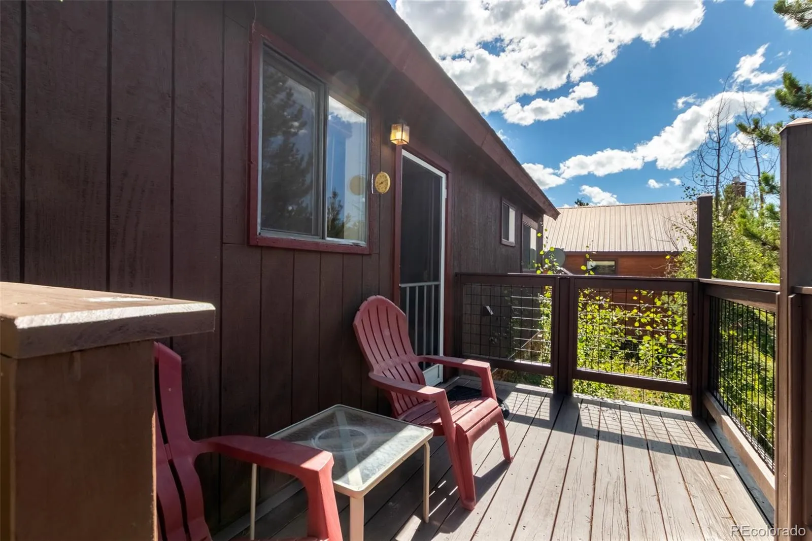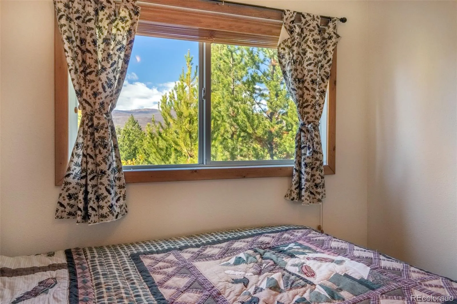 Relax in this 2 bedroom 1 bath cabin secluded in a peaceful treed setting about 2 blocks from the Columbine Lake clubhouse. 864 square feet, well maintained, with newer appliances in a dine-in kitchen. Enjoy the morning sun on your front porch and evening mountain views out back. Laundry room with lots of storage.