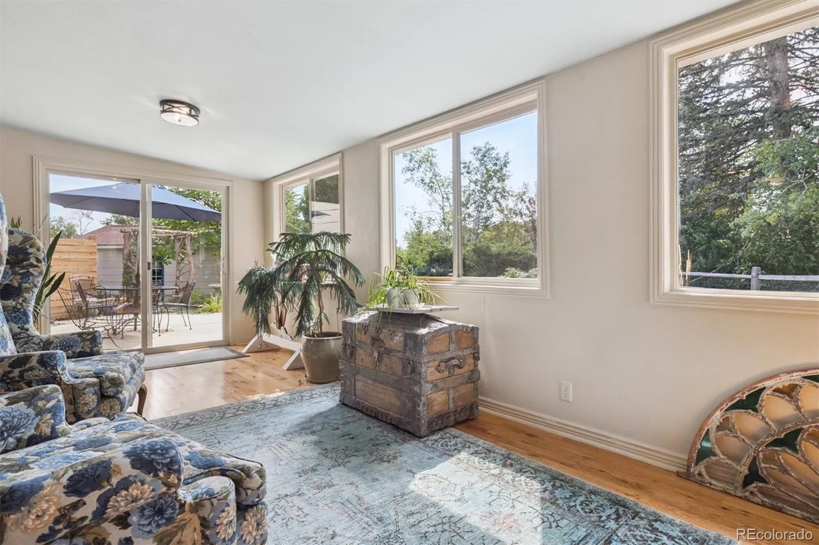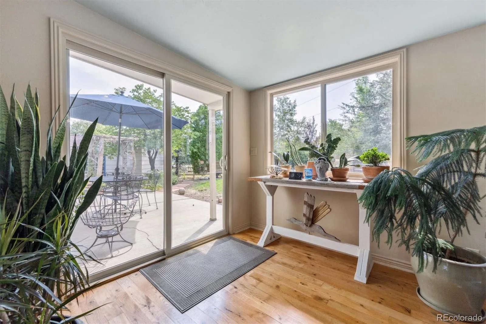 Thoughtfully updated with custom cabinets, genuine granite, hardwood, Corian countertops, updated double pane windows, sprinkler system, Breezair cooling system, and dynamic vaulted ceiling. The fenced yard backs to open space and is perfect for pets and includes mature trees and perennial garden which contribute to a peaceful setting. The patio and sunroom are nestled off the kitchen just a few steps away from the patio retreat, perfect for relaxing, sunning or extended entertaining! The 220 SF Sun Room is your extended/bonus living area and is perfect for your morning coffee. Enjoy the views and your plants will love it too! The two-car garage plus the bonus third car detached garage, provide plenty of parking options. A charming she – he shed is awaiting your be your special secret hideaway.