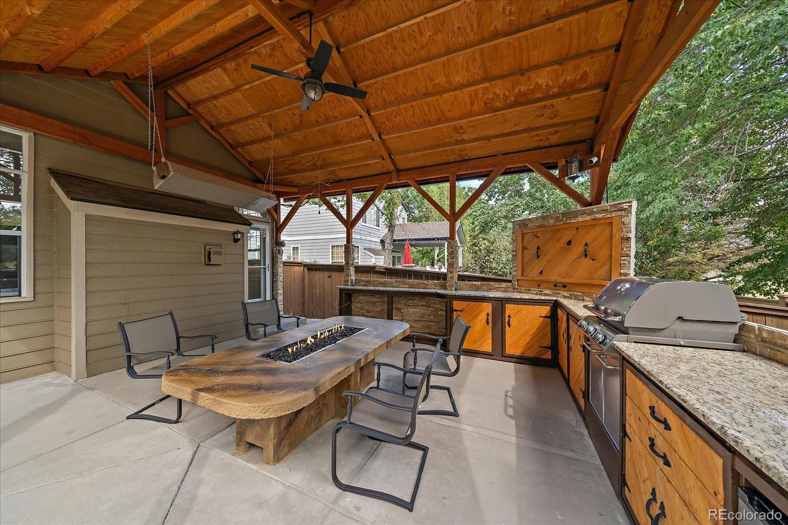 Step outside to the private, covered Colorado Room—an entertainer’s dream with two built-in gas fire pits, a full outdoor kitchen and entertainment center, plus a heater for year-round enjoyment.