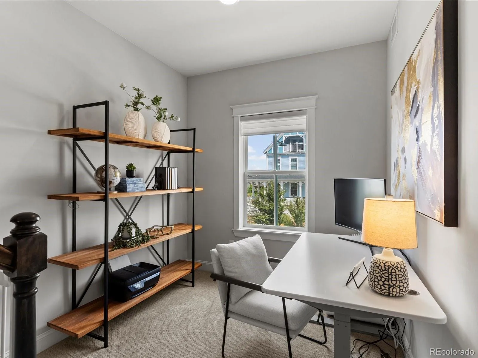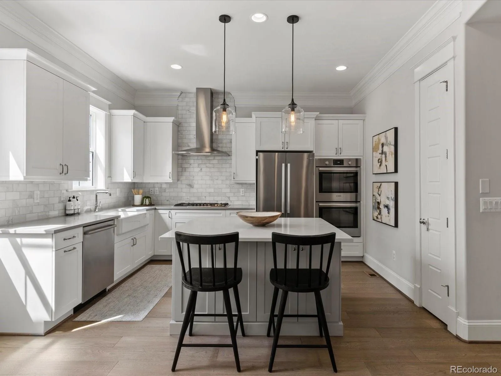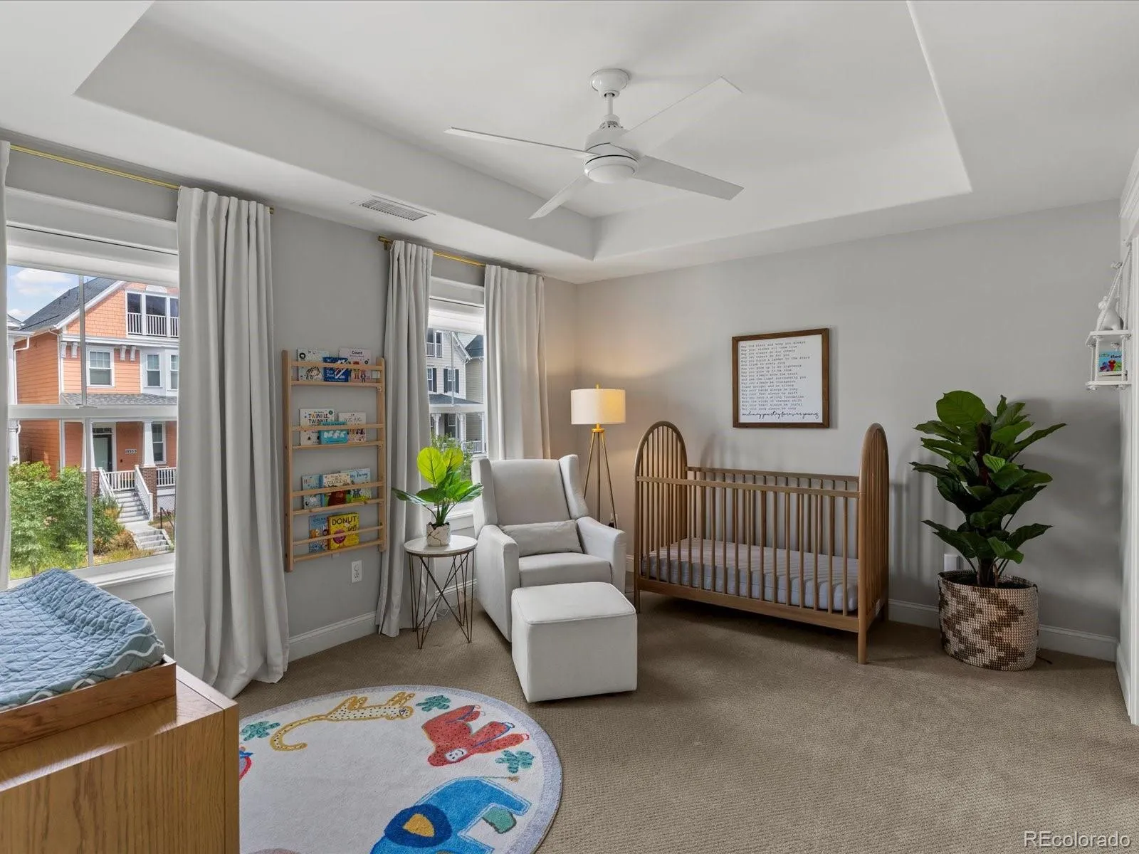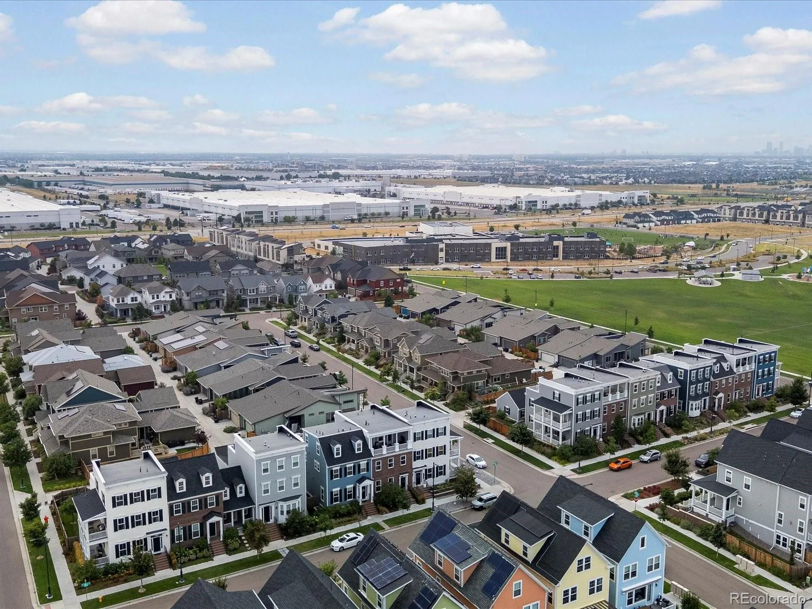 Discover refined elegance in this beautifully designed 4 bedroom, 4.5 bath Parkwood “Brookline” townhome, ideally located in Central Park’s sought-after North End. Just blocks from Splash Landing Pool, North Sports Fields, and nearby pickleball courts, this home offers the perfect blend of sophistication, comfort, and convenience. Inside, exquisite Parkwood millwork, rich wide-plank hardwood floors, and soaring 10-foot ceilings create a sense of grandeur throughout. The open-concept main level is anchored by a striking white-mantled gas fireplace in the living room, seamlessly flowing into a charming dining area with elegant wainscoting. The chef’s kitchen is a showpiece, featuring gleaming white-marble quartz counters, a central eat-up island, BOSCH stainless steel appliances, soft-close cabinetry, and a marble tile backsplash. From here, a spacious mudroom transitions effortlessly to the finished 2-car garage and a private patio complete with a low-maintenance turf dog run. The second level offers flexibility and function with a generous loft, perfect for a home office or playroom, two large secondary bedrooms each with stylish en-suite baths, and a convenient laundry room with cabinetry and a utility sink. On the third floor, retreat to the luxurious primary suite with dual walk-in closets, a spa-like 5-piece en-suite bath, and access to the expansive covered rooftop balcony, ideal for morning coffee or evenings entertaining. The finished basement extends the living space with a spacious bedroom, a bath with frameless glass shower, and a family/media room complete with a dry bar and beverage fridge. With a new roof (2024) for peace of mind, NO SUB-HOA, and quick access to Anschutz Medical Campus, Downtown Denver, and DIA, this property delivers luxury, lifestyle, and location in one exceptional home.