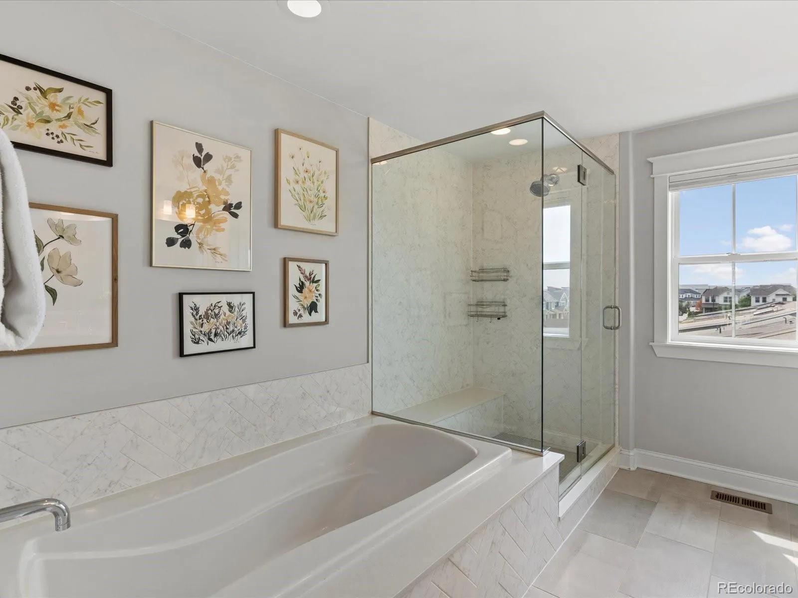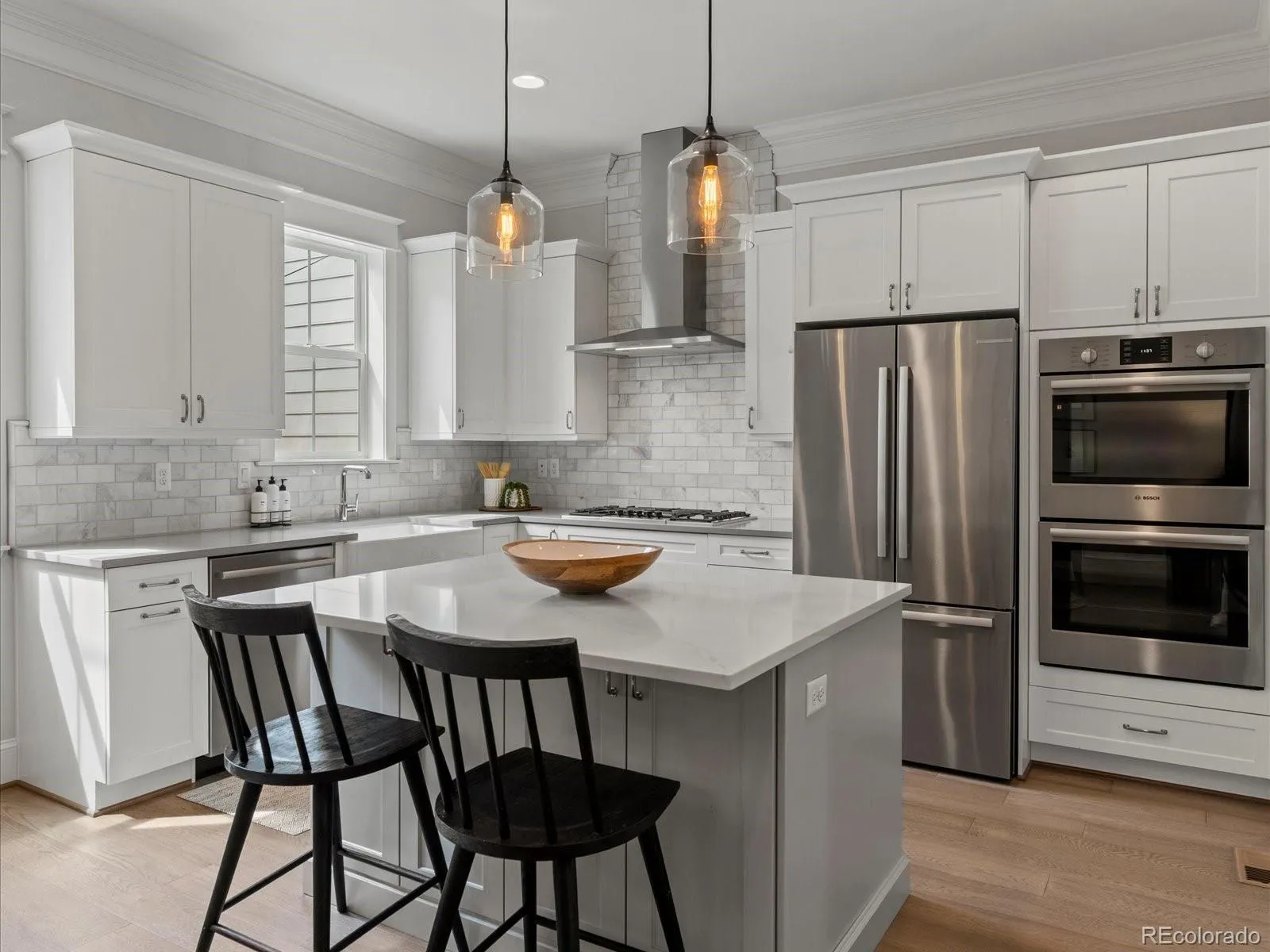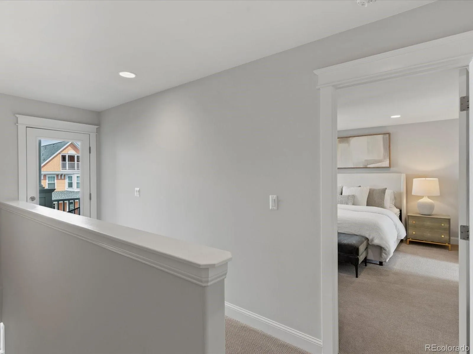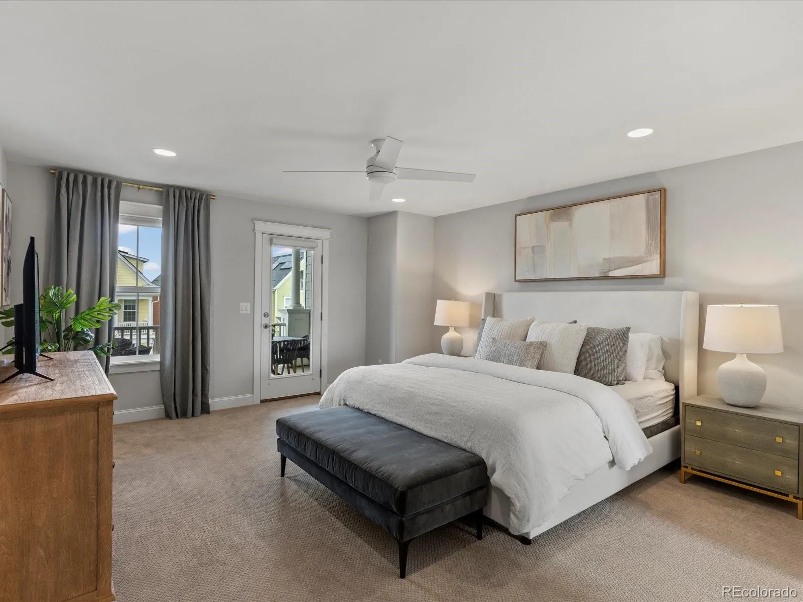 Discover refined elegance in this beautifully designed 4 bedroom, 4.5 bath Parkwood “Brookline” townhome, ideally located in Central Park’s sought-after North End. Just blocks from Splash Landing Pool, North Sports Fields, and nearby pickleball courts, this home offers the perfect blend of sophistication, comfort, and convenience. Inside, exquisite Parkwood millwork, rich wide-plank hardwood floors, and soaring 10-foot ceilings create a sense of grandeur throughout. The open-concept main level is anchored by a striking white-mantled gas fireplace in the living room, seamlessly flowing into a charming dining area with elegant wainscoting. The chef’s kitchen is a showpiece, featuring gleaming white-marble quartz counters, a central eat-up island, BOSCH stainless steel appliances, soft-close cabinetry, and a marble tile backsplash. From here, a spacious mudroom transitions effortlessly to the finished 2-car garage and a private patio complete with a low-maintenance turf dog run. The second level offers flexibility and function with a generous loft, perfect for a home office or playroom, two large secondary bedrooms each with stylish en-suite baths, and a convenient laundry room with cabinetry and a utility sink. On the third floor, retreat to the luxurious primary suite with dual walk-in closets, a spa-like 5-piece en-suite bath, and access to the expansive covered rooftop balcony, ideal for morning coffee or evenings entertaining. The finished basement extends the living space with a spacious bedroom, a bath with frameless glass shower, and a family/media room complete with a dry bar and beverage fridge. With a new roof (2024) for peace of mind, NO SUB-HOA, and quick access to Anschutz Medical Campus, Downtown Denver, and DIA, this property delivers luxury, lifestyle, and location in one exceptional home.