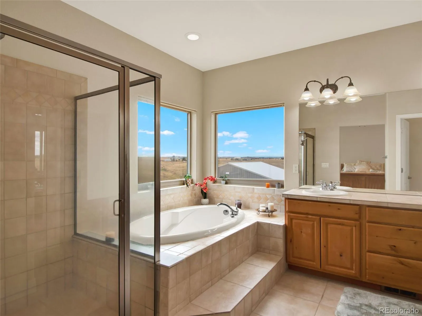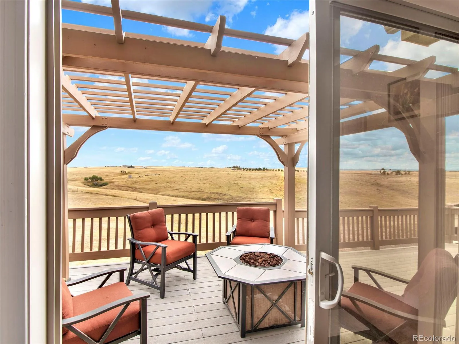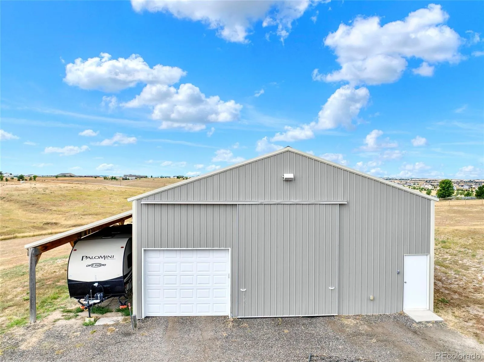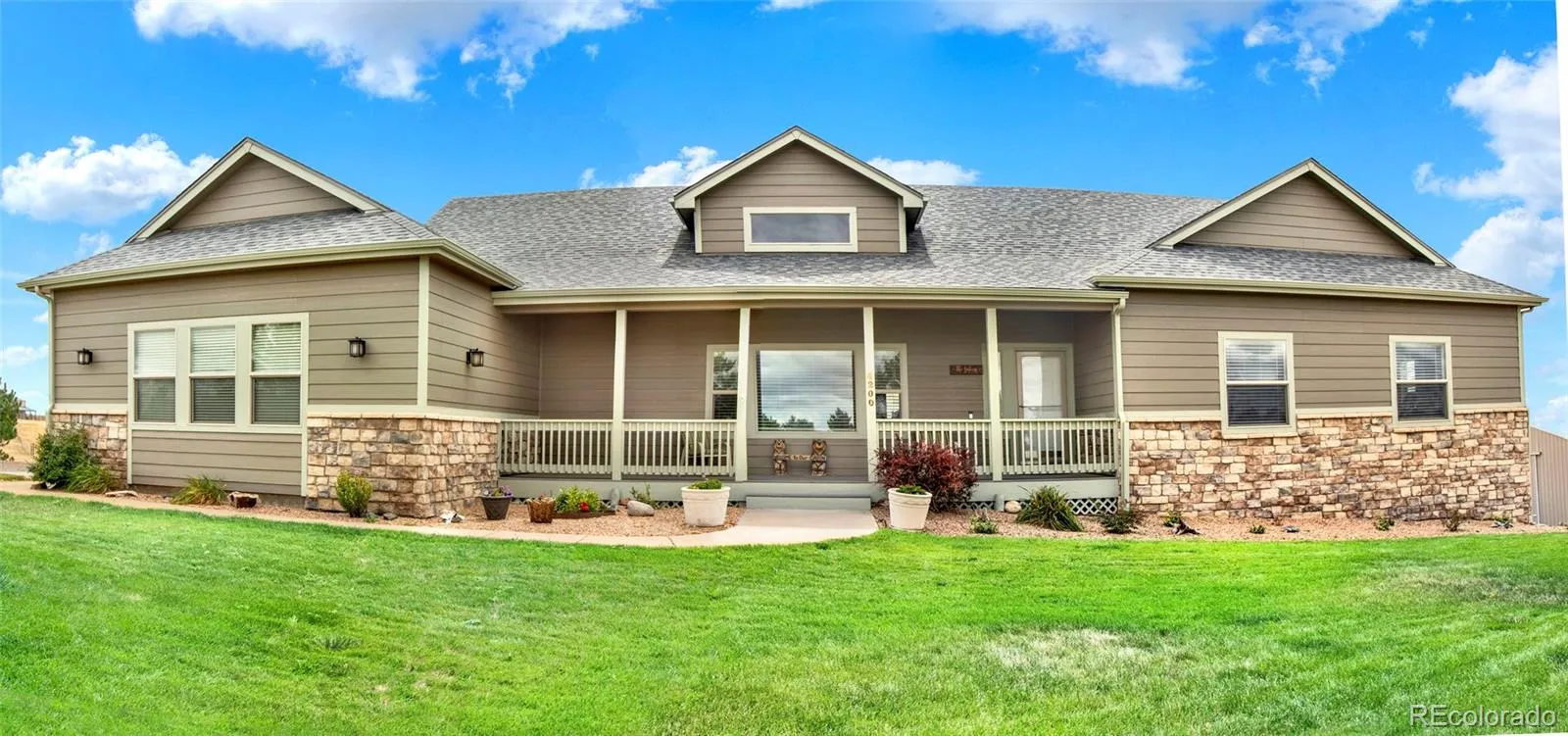 Plenty of room to roam—inside & out! This well-maintained 7-acre property is beautifully landscaped & showcases breathtaking mountain views. Enjoy the serenity of country living while staying close to the city—just 15 mins to Parker & 10 mins to Southlands Mall. The 4-bedroom, 4-bath home offers 4,526 sq. ft. of living space across two levels. On the main floor (2,279 sq. ft.), you’ll find vaulted ceilings, a cozy gas fireplace, hardwood floors throughout the kitchen, dining, & hallway, plus 3 spacious bedrooms. The primary suite opens directly to the back deck & features a luxurious 5-piece bath with dual sinks, soaking tub, & separate shower. The kitchen is complete with a large island, knotty alder cabinets, & all appliances included—refrigerator, range/oven, dishwasher, & microwave. Convenient main-level laundry makes everyday living simple. The walkout basement (2,247 sq. ft., 1,550 sq. ft. finished) offers endless versatility w/ its own private entrance. It includes a large family room, additional bedroom, full bath with sauna, & a dedicated office, which includes a desk, shelves, & cabinets, all of which will remain with the house. You’ll also find abundant storage & a large utility room housing the systems that keep the home running efficiently. Outside, an attached 3-car garage provides ample parking, while a 36’x48’ outbuilding adds even more functionality. The outbuilding includes a carport for RV parking, electricity, & a garage door opener. Both the home & outbuilding were updated w/ new Class 4 roofs & gutters just 1.5 years ago. The house was freshly painted at the same time. Additional features include a tankless water heater, water softener, radon mitigation system, 1,250-gallon septic tank, & a 1,000-gallon propane tank (owned outright & staying w/ property). The yard is irrigated w/ 9 watering zones for effortless upkeep—using free water! Best of all—no HOA restrictions. This property offers the freedom, space, & lifestyle you’ve been waiting for!