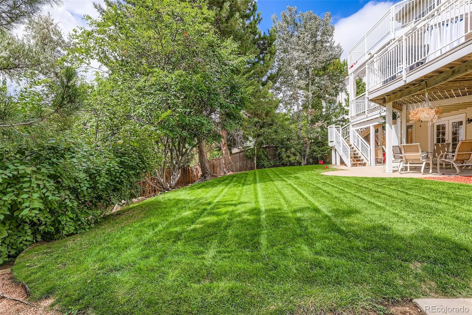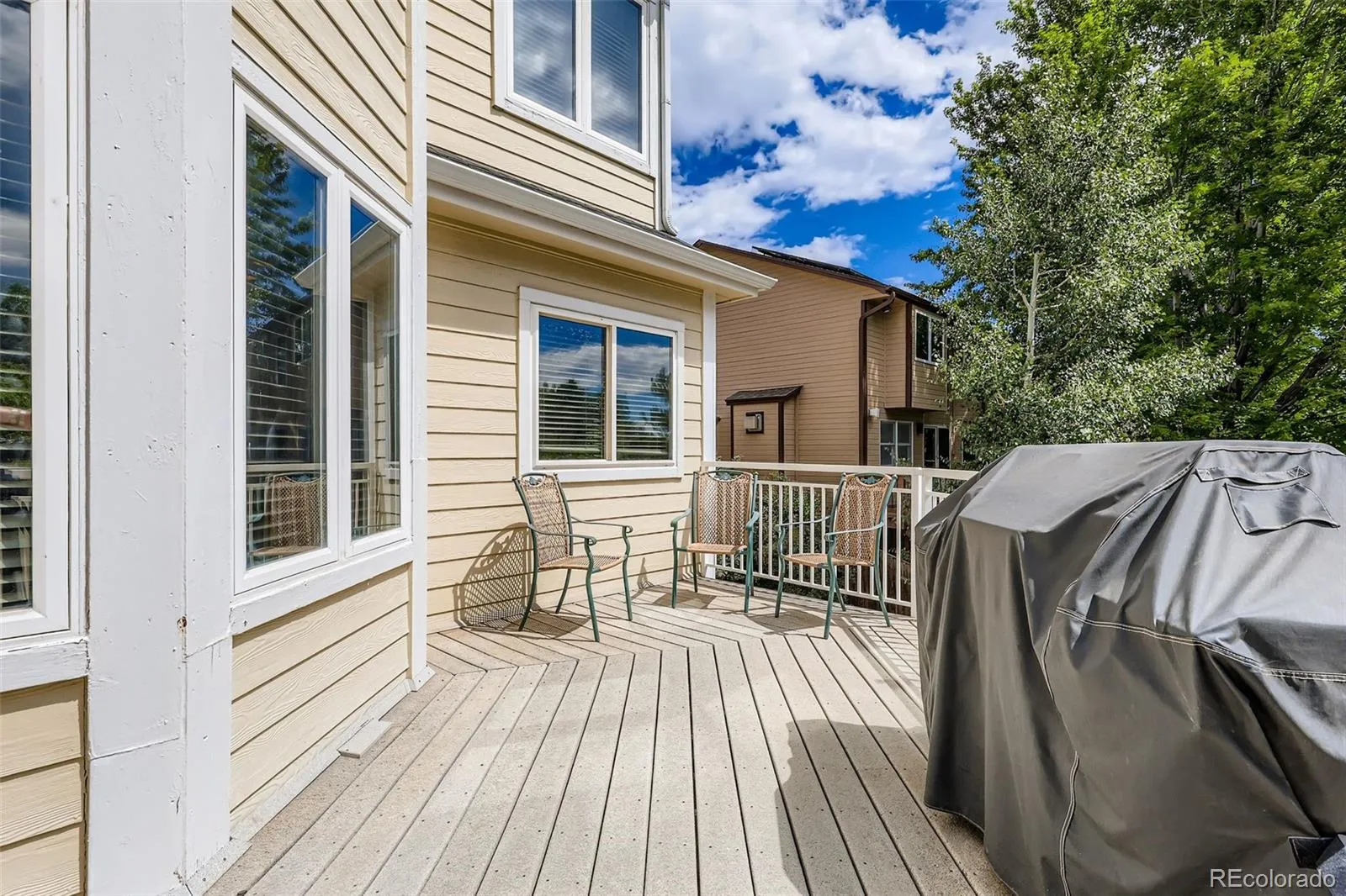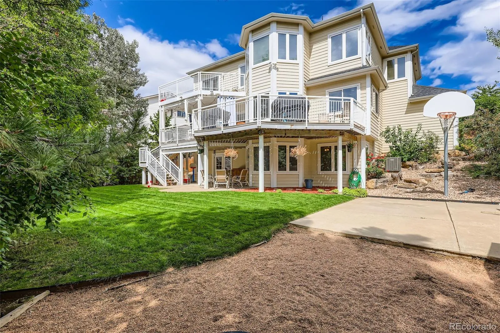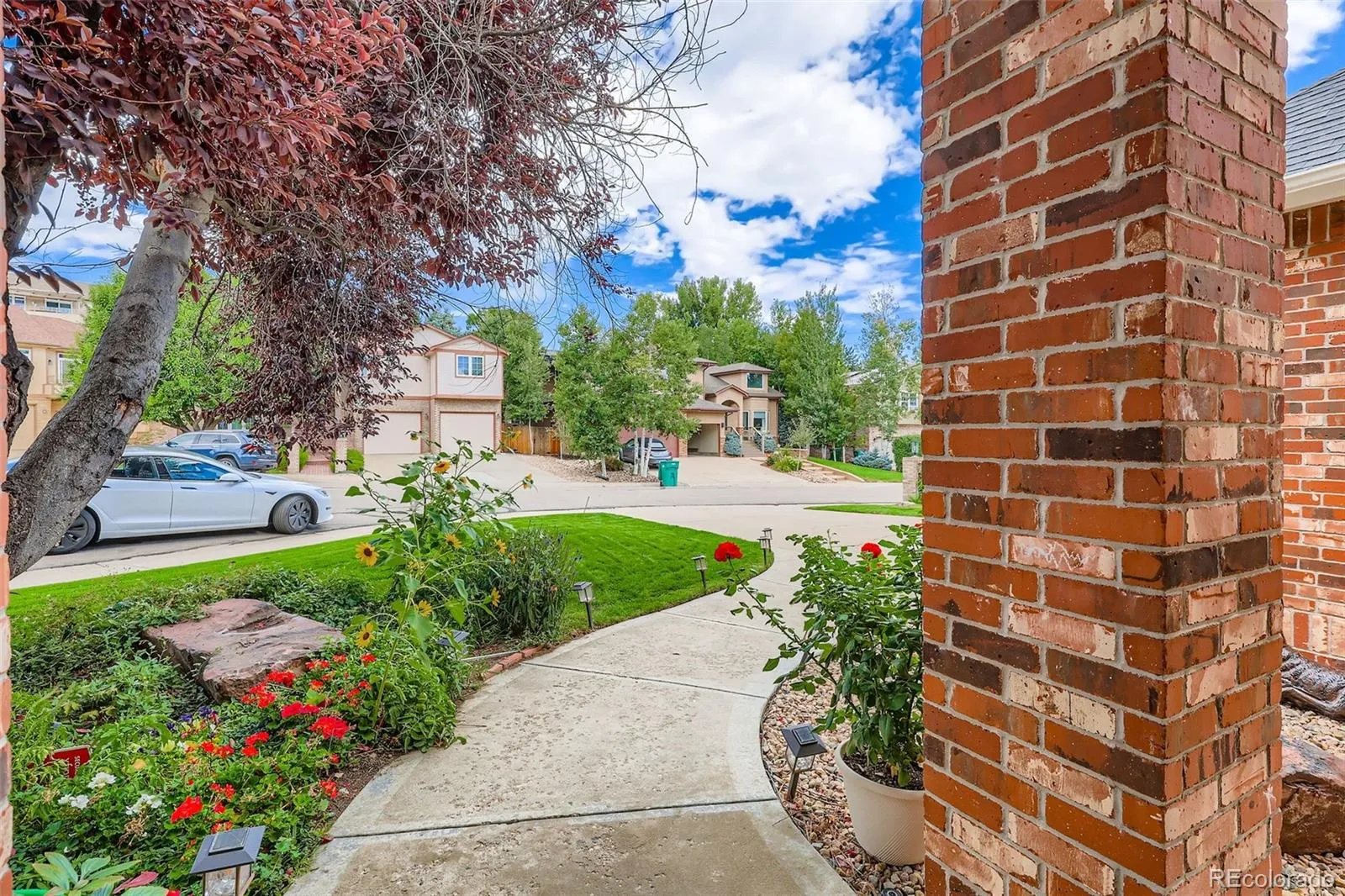 Tucked away on a quiet cul-de-sac in the exclusive Chateau Ridge Estates, this stunning semi custom home has it all. Step inside to a dramatic entryway with soaring ceilings, hardwood floors, and formal living and dining rooms complete with a convenient butler’s pantry. The open floor plan is designed for entertaining, with a bright, spacious kitchen featuring a large island, pantry, cabinet pull-outs, and breakfast nook. A double-sided gas fireplace connects the kitchen and family room, where custom built-ins add warmth and character. Enjoy seamless indoor-outdoor living on the oversized deck overlooking a private backyard—perfect for relaxing or hosting gatherings. A large mudroom/laundry room with access to the tandem 3-car garage completes the main level. Upstairs, a private office with French doors sits off the landing, while the primary suite offers a true retreat with a 5-piece bath, jetted soaking tub, walk-in closet, and a private Trex balcony with a rain drainage system. Down the hall, you’ll find a guest suite with full bath and two additional spacious bedrooms with another full bath. The fully finished walkout basement is ideal for multi-generational living, featuring a full kitchen with granite breakfast bar, dining area, expansive family room, a fifth bedroom, and ¾ bath. Ample storage is available with built-in shelving, multiple storage rooms, and a separate laundry hookup. Conveniently located near grocery stores, dining, and schools, with easy access to Red Rock Amphitheater, Denver, highways, and the mountains, this home offers the perfect blend of luxury, comfort, and location.