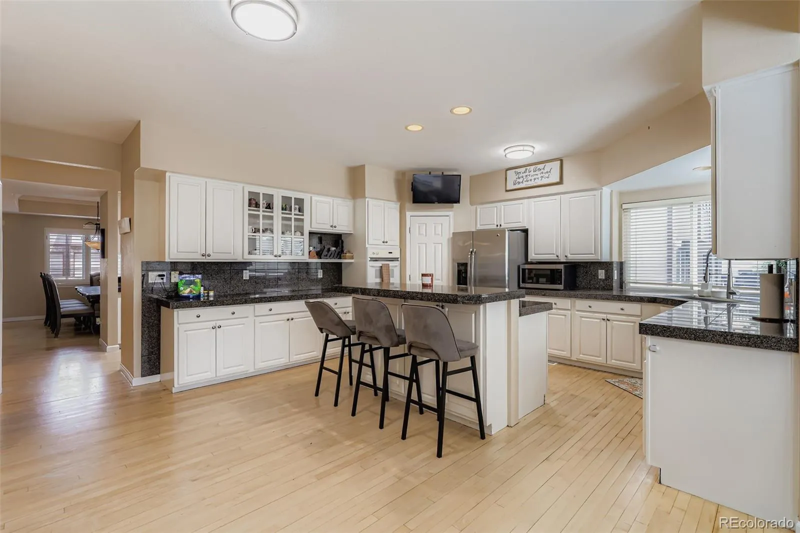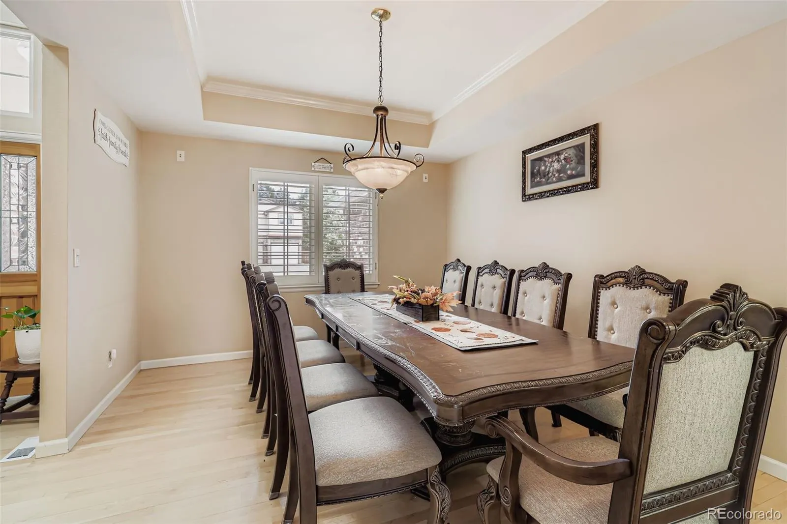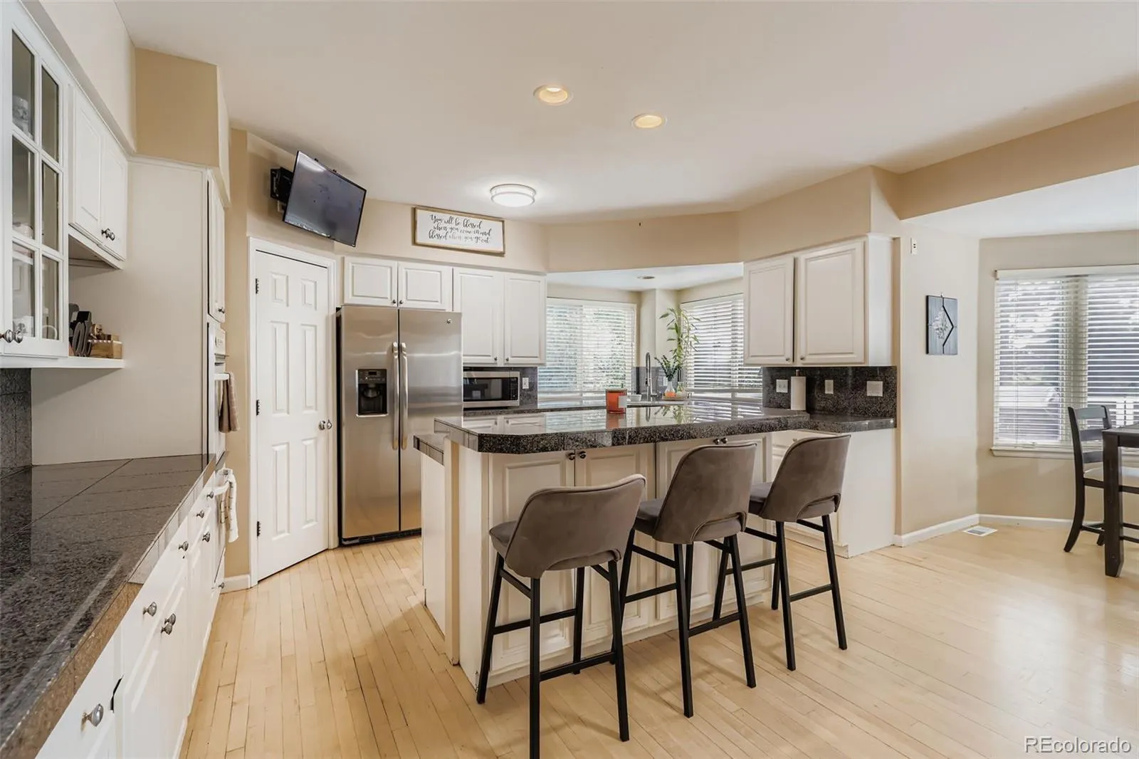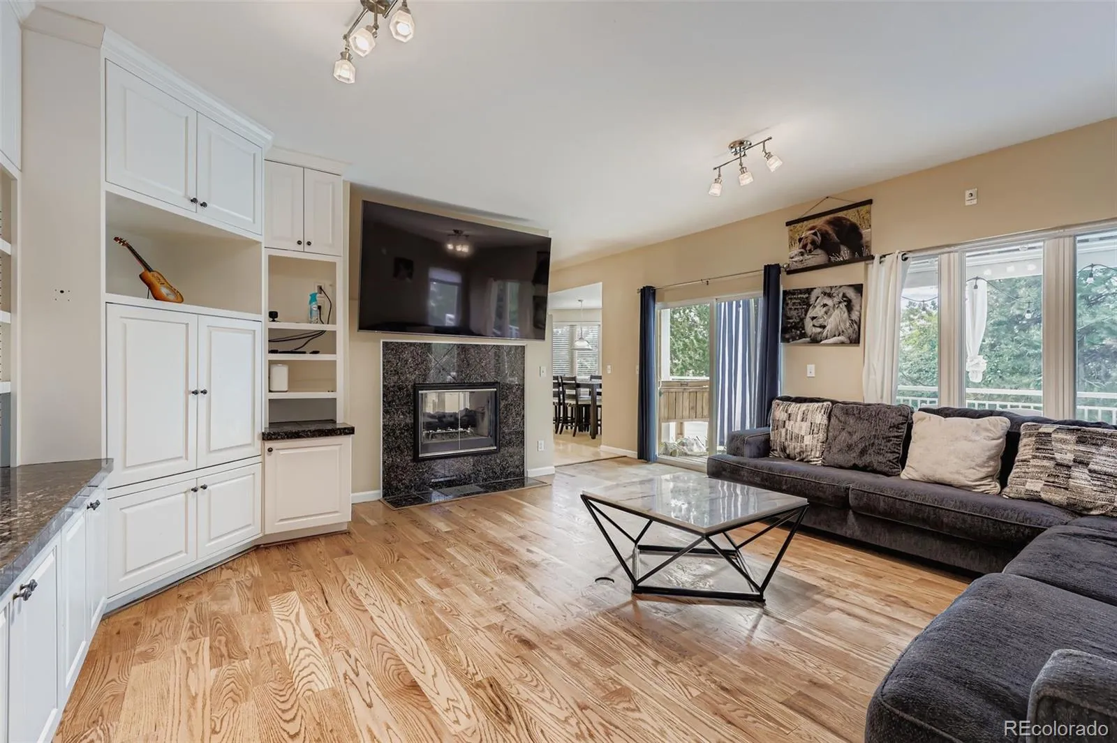 Tucked away on a quiet cul-de-sac in the exclusive Chateau Ridge Estates, this stunning semi custom home has it all. Step inside to a dramatic entryway with soaring ceilings, hardwood floors, and formal living and dining rooms complete with a convenient butler’s pantry. The open floor plan is designed for entertaining, with a bright, spacious kitchen featuring a large island, pantry, cabinet pull-outs, and breakfast nook. A double-sided gas fireplace connects the kitchen and family room, where custom built-ins add warmth and character. Enjoy seamless indoor-outdoor living on the oversized deck overlooking a private backyard—perfect for relaxing or hosting gatherings. A large mudroom/laundry room with access to the tandem 3-car garage completes the main level. Upstairs, a private office with French doors sits off the landing, while the primary suite offers a true retreat with a 5-piece bath, jetted soaking tub, walk-in closet, and a private Trex balcony with a rain drainage system. Down the hall, you’ll find a guest suite with full bath and two additional spacious bedrooms with another full bath. The fully finished walkout basement is ideal for multi-generational living, featuring a full kitchen with granite breakfast bar, dining area, expansive family room, a fifth bedroom, and ¾ bath. Ample storage is available with built-in shelving, multiple storage rooms, and a separate laundry hookup. Conveniently located near grocery stores, dining, and schools, with easy access to Red Rock Amphitheater, Denver, highways, and the mountains, this home offers the perfect blend of luxury, comfort, and location.