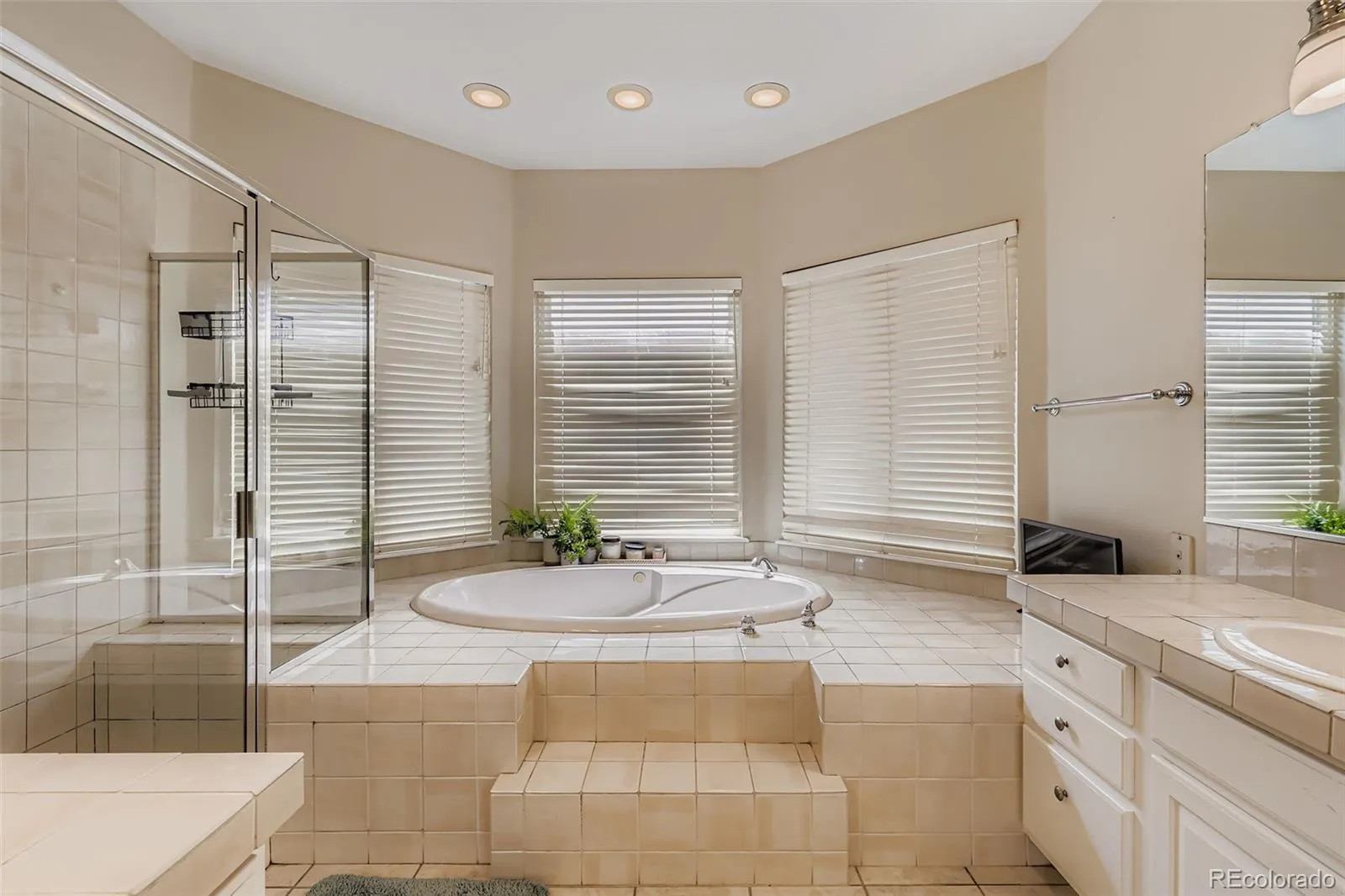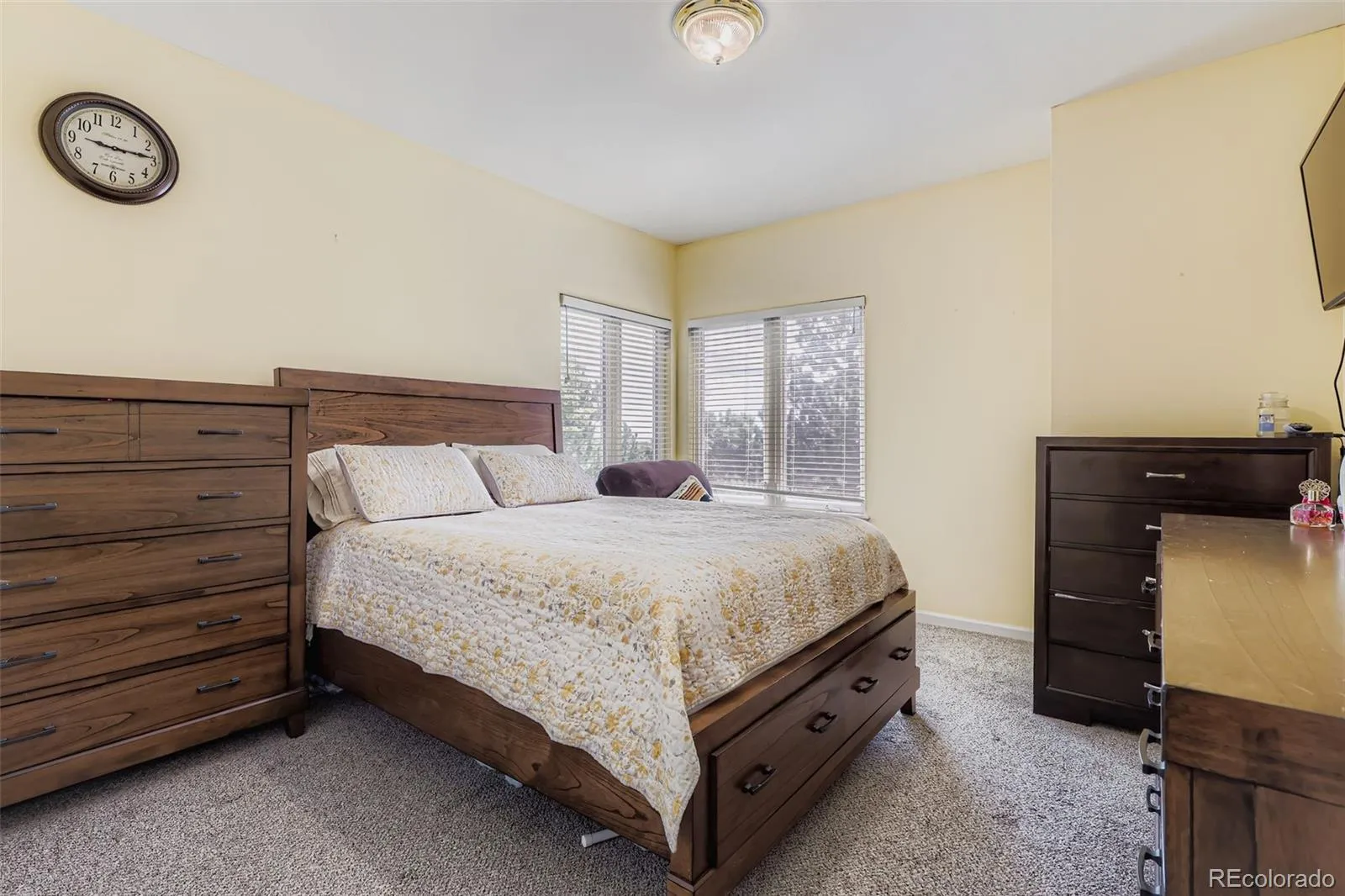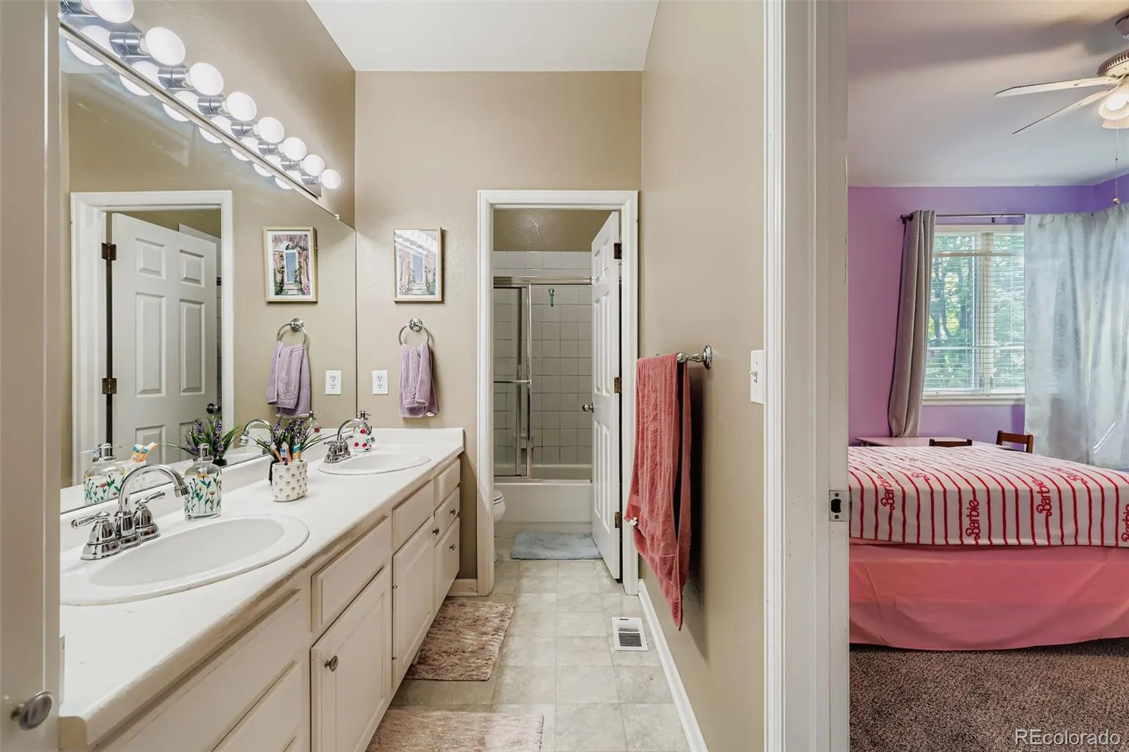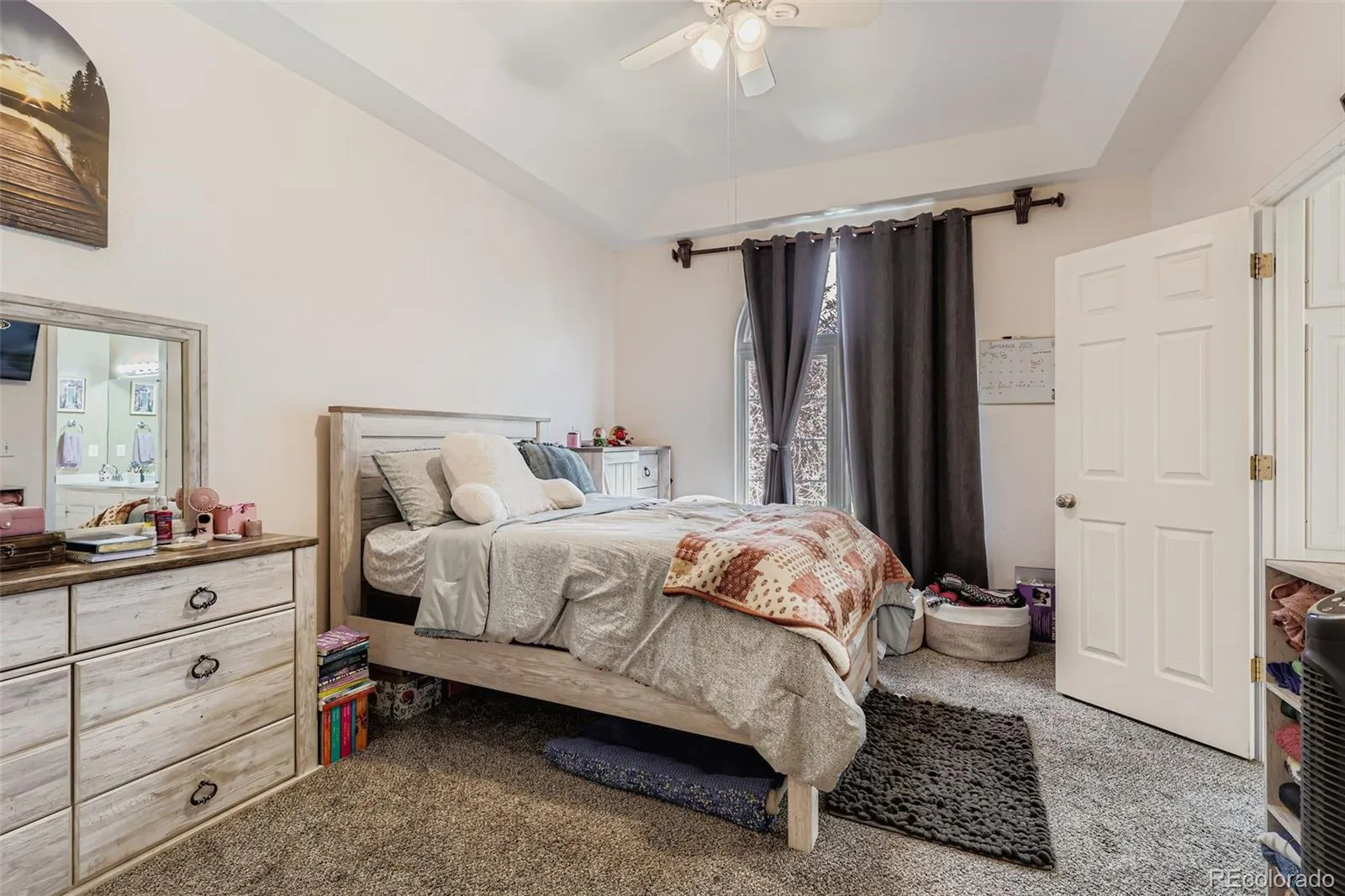 Tucked away on a quiet cul-de-sac in the exclusive Chateau Ridge Estates, this stunning semi custom home has it all. Step inside to a dramatic entryway with soaring ceilings, hardwood floors, and formal living and dining rooms complete with a convenient butler’s pantry. The open floor plan is designed for entertaining, with a bright, spacious kitchen featuring a large island, pantry, cabinet pull-outs, and breakfast nook. A double-sided gas fireplace connects the kitchen and family room, where custom built-ins add warmth and character. Enjoy seamless indoor-outdoor living on the oversized deck overlooking a private backyard—perfect for relaxing or hosting gatherings. A large mudroom/laundry room with access to the tandem 3-car garage completes the main level. Upstairs, a private office with French doors sits off the landing, while the primary suite offers a true retreat with a 5-piece bath, jetted soaking tub, walk-in closet, and a private Trex balcony with a rain drainage system. Down the hall, you’ll find a guest suite with full bath and two additional spacious bedrooms with another full bath. The fully finished walkout basement is ideal for multi-generational living, featuring a full kitchen with granite breakfast bar, dining area, expansive family room, a fifth bedroom, and ¾ bath. Ample storage is available with built-in shelving, multiple storage rooms, and a separate laundry hookup. Conveniently located near grocery stores, dining, and schools, with easy access to Red Rock Amphitheater, Denver, highways, and the mountains, this home offers the perfect blend of luxury, comfort, and location.