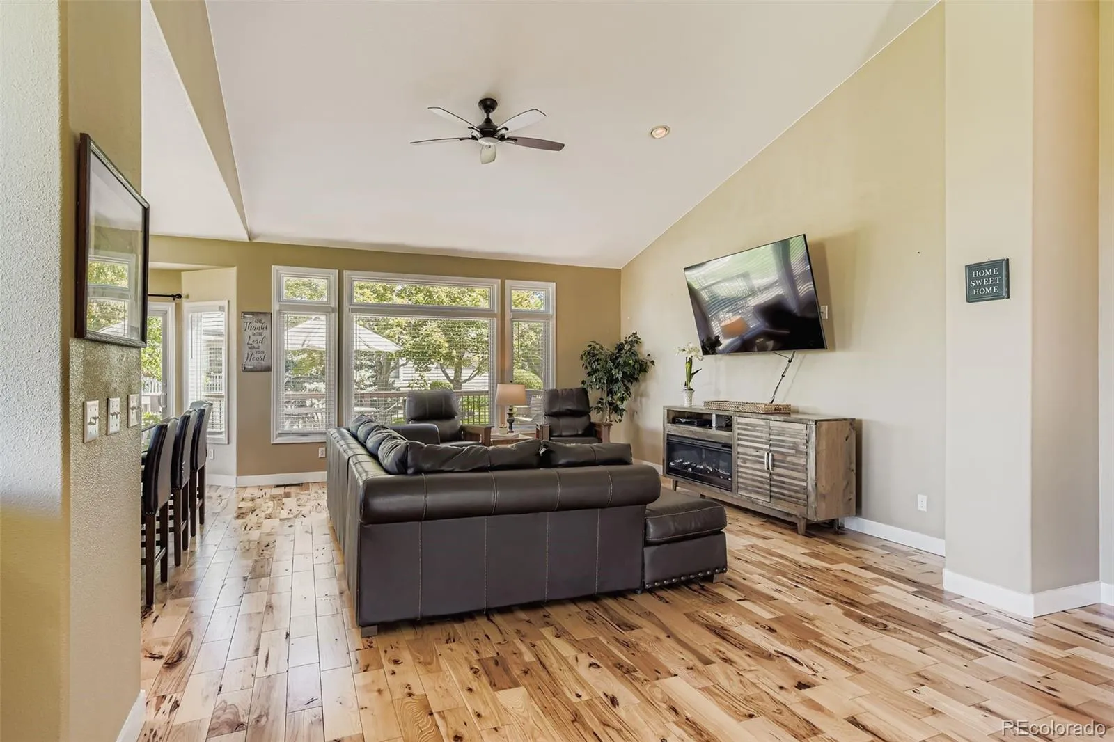This updated 4-bedroom, 3-bathroom home showcases both mountain and golf course views from its uniquely private lot in Gleneagle Village. Recent updates include the removal of dated living room niches and a remodeled kitchen that enhances flow, creating a bright, open space ideal for entertaining and everyday living. The thoughtful floor plan features continuous wood flooring, spacious bedrooms, and functional living areas as well as a luxurious fully remodeled primary bathroom featuring a spa-like shower and heated tile floors. Step outside to enjoy outdoor living designed around the stunning backdrop of mountain and golf course views, complete with a hot tub perfectly positioned to overlook the fairway. Offering a rare blend of privacy, style, and scenery, this property is one of only a few homes in the neighborhood with mountain views.