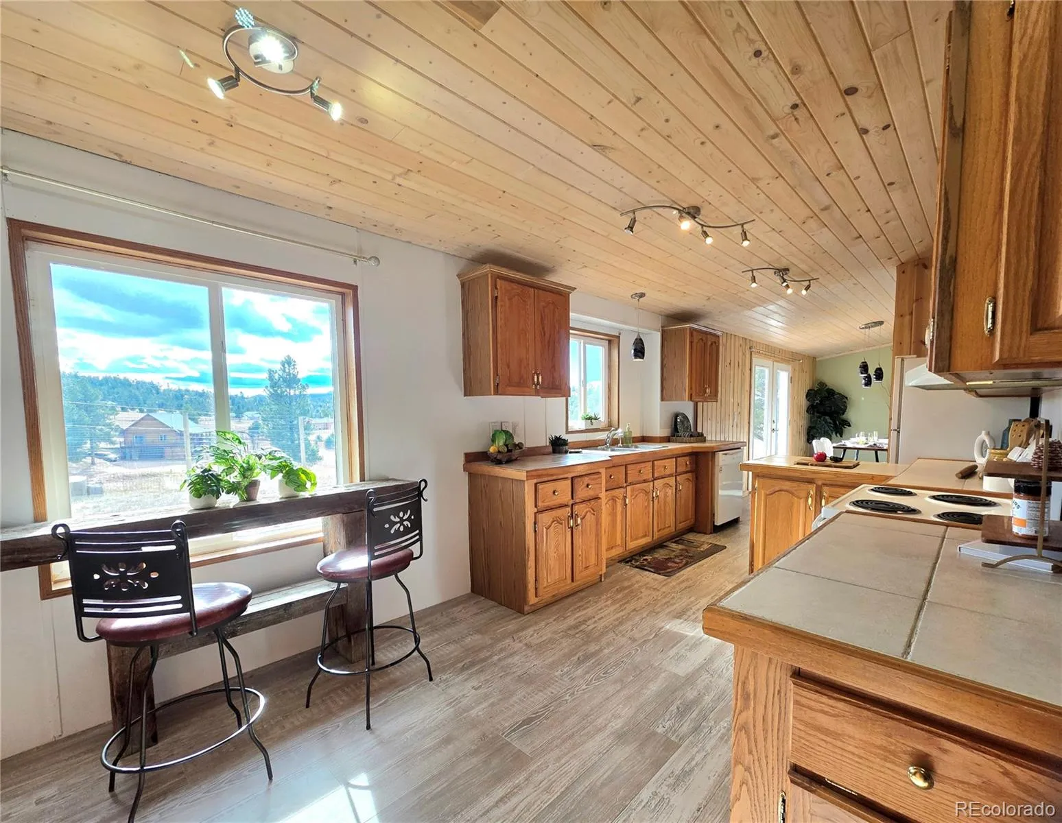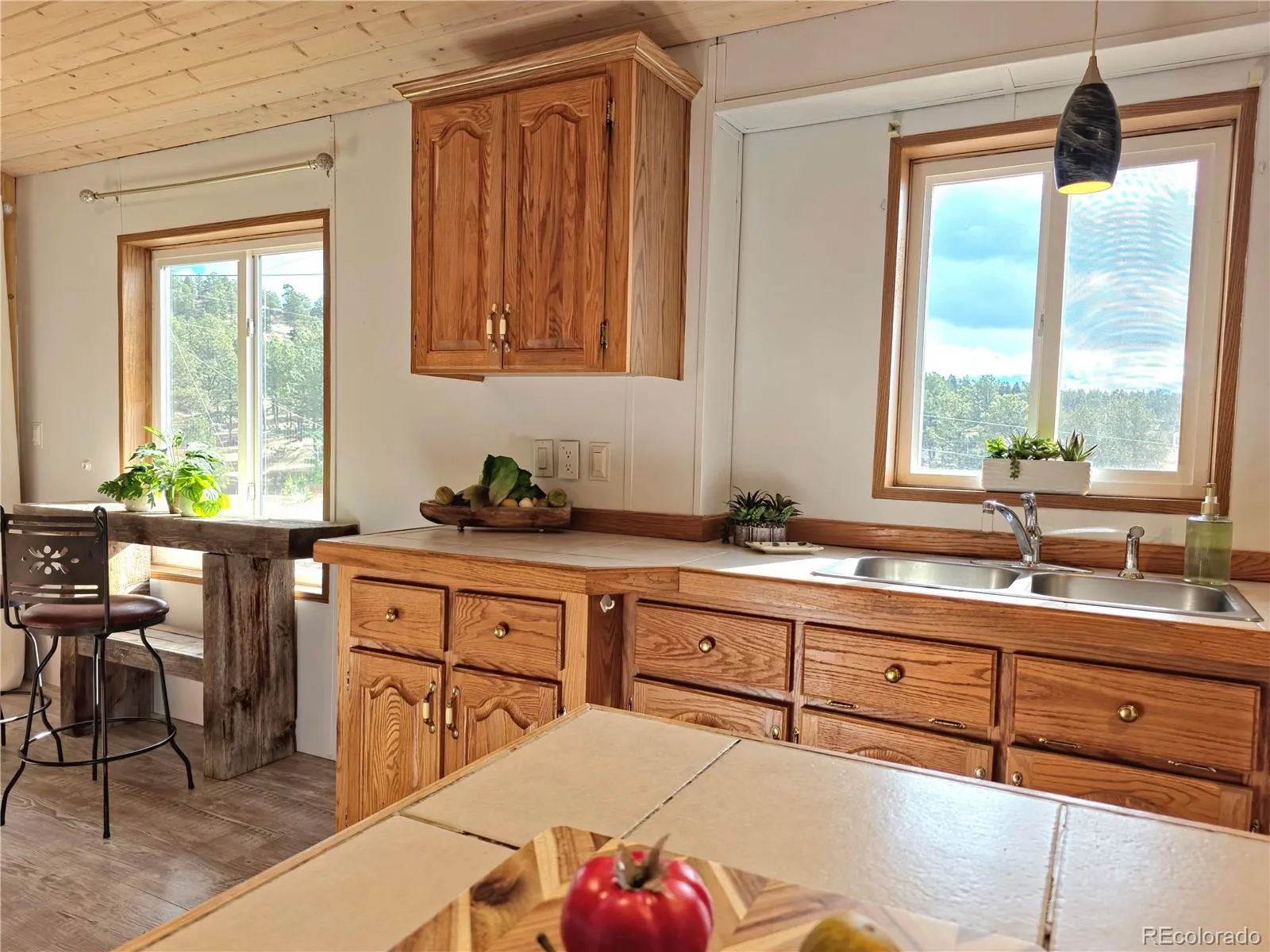 You’ll love calling this fabulous property home! Remodeled mountain gem on 2+ acre corner lot, has all new windows & doors. In CME w/3 car garage, this very homey abode w/ Natural Gas is a must see! Upon entering you’ll notice warm tongue & groove pine wood ceilings & walls, the double sided free standing woodburning fireplace, perfectly situated between the LR & DR, for all around enjoyment. The DR boasts new French doors for access to the level back yard and new stone patio. All will enjoy the large, spacious kitchen with eat in nook, plentiful cabinetry & storage pantry. The laundry room has storage too, with updated and cozy T&G wood, + exterior door to RV parking area. 2nd bed is spacious with wonderful natural lighting your plants will love, features 2 storage closets; 1 walk-in, 1 large w/shelving for all storage needs. Walk down the beautiful newly tongue and grooved hallway back to the main living areas, towards the primary suite on the opposite end of the home. The primary offers a wonderful, spacious walk in closet, a large attached bath through French doors with a soaking tub, dual sinks, free standing shower, plentiful storage and a recessed linen closet. Last but not least, walk out to your private deck to the backyard with large overhead pine tree for shade, equipped with it’s very own sweetly singing birds. The homes spacious back yard is fenced, has a storage shed, a new stone patio and matching stone stairs. You’ll also enjoy the covered front porch for evening sunsets or your morning coffee, with it’s West facing mountain and meadow views all around. The detached 3 car garage is spacious, has a new picture window for plenty of natural light to enjoy your views while working, an overhead heater, as well as a ramp from the home to the garage for accessible access. Home is wired for a generator! Whether you’re looking for a vacation home or everyday mountain living, pride of ownership shows in this lovingly updated, inviting home to call your own!