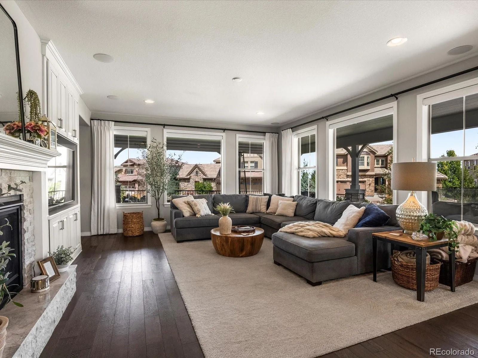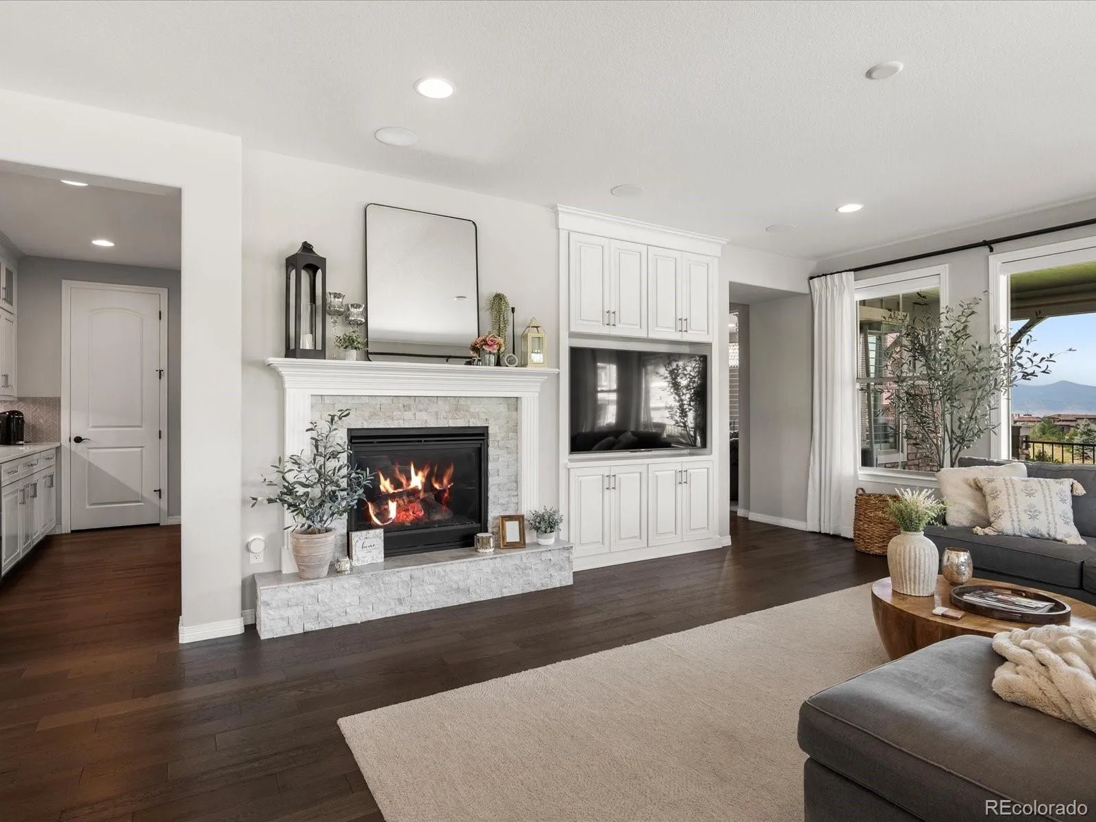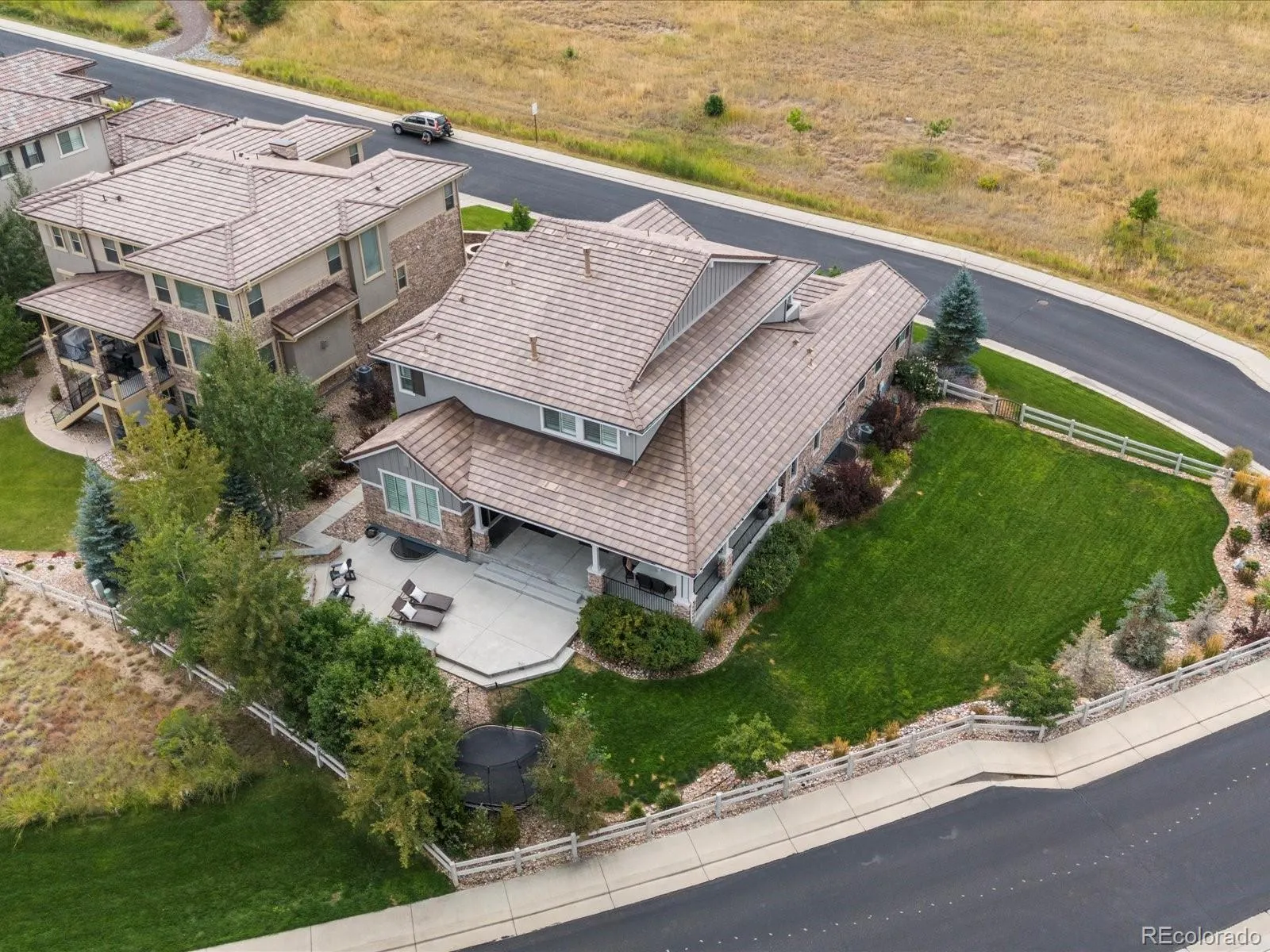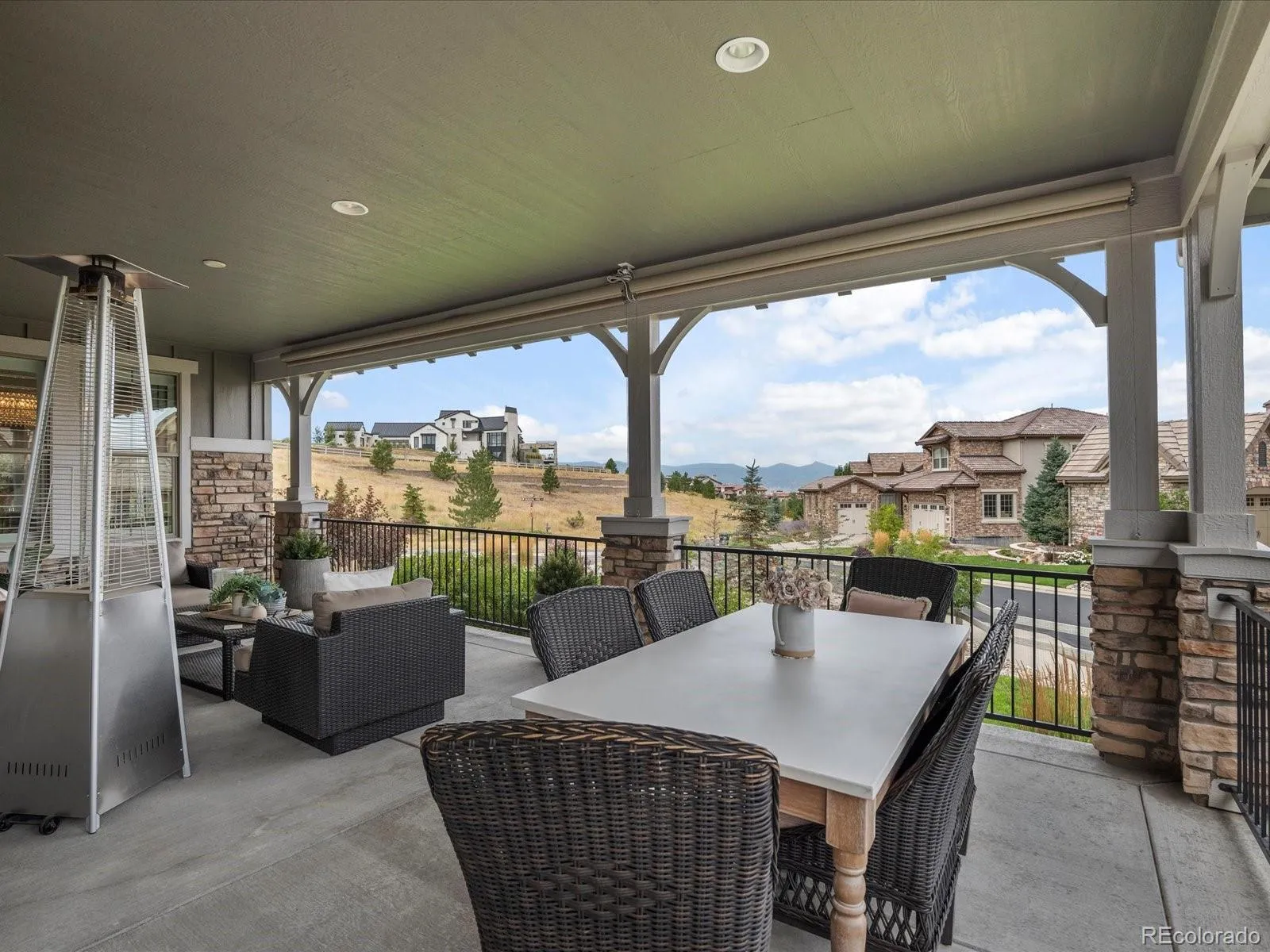 Welcome to this stunning 6-bedroom, 6-bathroom home in the highly sought-after Backcountry neighborhood of Highlands Ranch, where breathtaking sunsets and mountain views can be enjoyed from the expansive wraparound back patio. The professionally landscaped yard is perfect for entertaining, offering space to play, lounge by the gas fire pit, or dine under the Colorado sky. Inside, the main floor showcases a massive chef’s kitchen with butler’s space, two pantries, a huge island with new quartz countertops and farmhouse sink, a spacious living room wrapped in windows with remote-controlled treatments and a cozy fireplace, a formal dining room, a private office, a bedroom with en-suite bath, plus a half bath and laundry room. Upstairs features four additional bedrooms and three full bathrooms, including a luxurious primary suite with fireplace and spa-like 5-piece en-suite. The finished basement boasts a large rec room with surround sound for movie nights, a guest bedroom with full bath, and over 1,190 sq ft of unfinished space ready for your vision. With three garage spaces, designer finishes, and resort-style community amenities, this Backcountry beauty is the perfect blend of luxury and comfort.