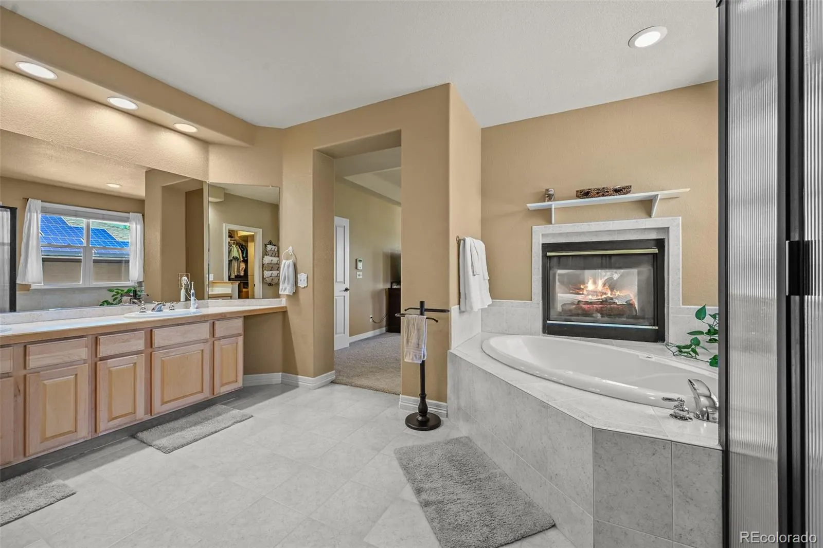 The primary suite is a true sanctuary, with a dual-sided fireplace, luxurious jetted tub, spa-like glass shower & a spacious walk-in closet. Three additional bedrooms -one with an ensuite bath- provide ample space for all.