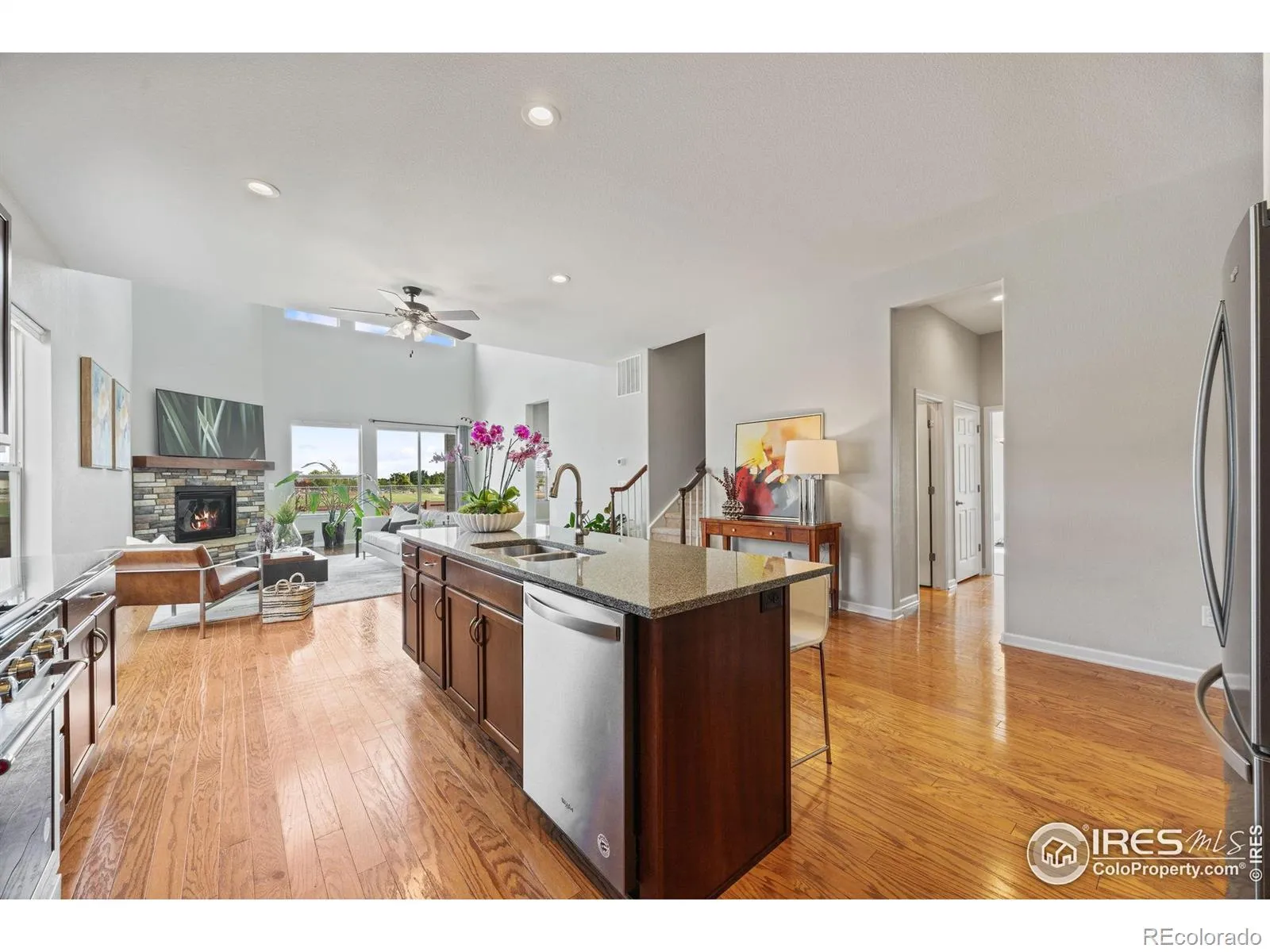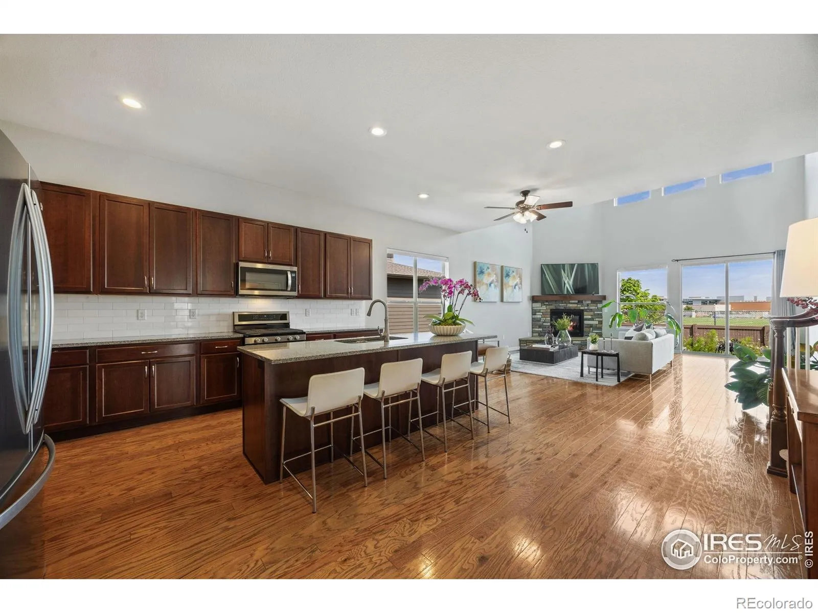 This beautifully designed home offers 5,180 sq. ft. of living space plus a three-car garage, blending generous proportions with everyday comfort and style. From the moment you step into the soaring two-story entry, you’ll feel the sense of light and openness that carries throughout the home.The main floor primary suite creates a private retreat, while a dedicated main floor study makes working from home effortless. At the heart of the home, the kitchen, breakfast nook, and great room connect in a seamless open plan-highlighted by warm wood floors and a cozy gas fireplace. The kitchen is a chef’s delight with abundant cabinetry, expansive granite counters, a large central island, walk-in pantry, stainless steel appliances, and a gas range. A formal dining room adds versatility, perfect for elegant gatherings or as a second office.Upstairs, you’ll find three spacious bedrooms (each with a walk-in closet), two full baths, a large loft that works beautifully as a second living room, playroom, or media space, plus a dedicated storage room. Comfort is enhanced by a second furnace for efficient climate control. For even more possibilities, the unfinished basement offers plenty of room to design the space you’ve always imagined.Step outside and enjoy Colorado living at its best in the fully fenced, landscaped backyard with both a covered patio and an extended patio-ideal for grilling, entertaining, or simply relaxing in the fresh air.Built in 2018 and backing to Kinard Core Knowledge Middle School, this home is also close to top-rated schools, shopping, dining, recreation, and all the amenities Fort Collins has to offer. Thoughtful design, a main floor primary suite, modern finishes, dual furnaces, and abundant storage make it truly move-in ready. Better than new-and ready for you today!