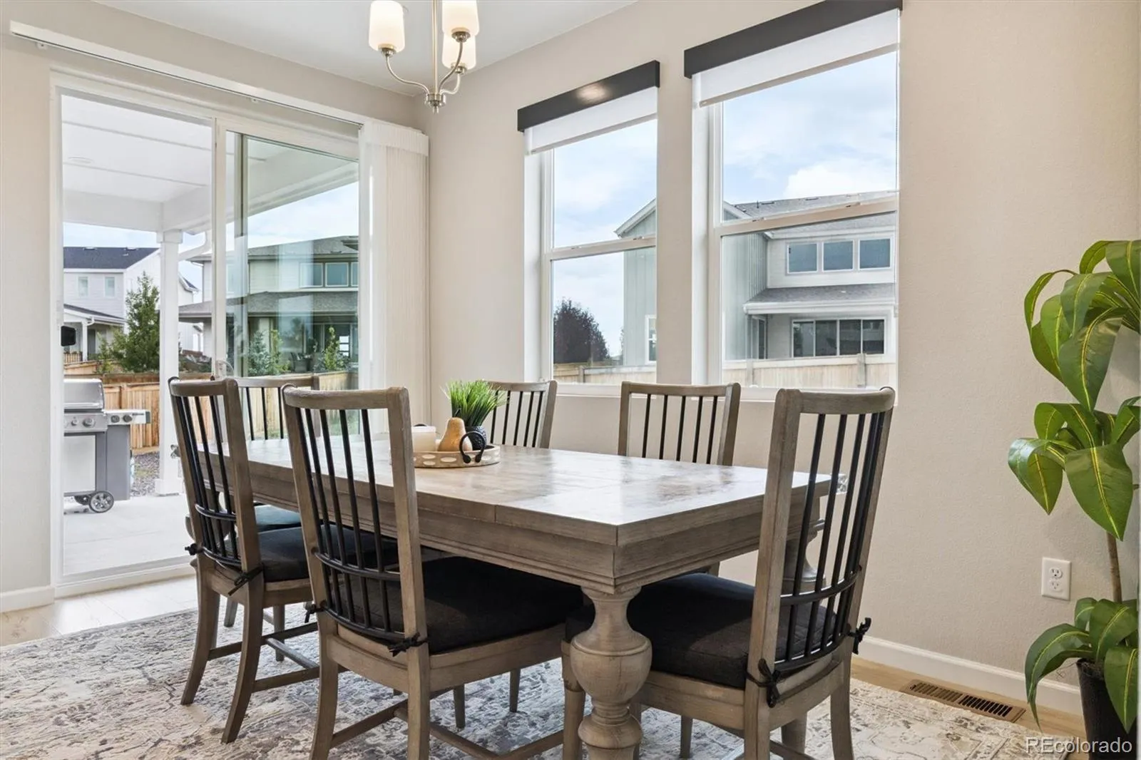 EXCEPTIONAL 2023 CASTLE PINES HOME – MOVE-IN READY. Built in 2023 with meticulous attention to detail, this exceptional Castle Pines residence offers modern luxury and timeless elegance in one of Colorado’s most sought-after communities. Step inside to soaring vaulted ceilings and an open-concept floor plan that creates an immediate sense of grandeur. The main level flows beautifully with a dedicated home office, sun-drenched sunroom, and convenient children’s playroom—all enhanced with custom blackout shades. The gourmet kitchen opens to vast living areas perfect for entertaining. Dual HVAC systems and a whole-house humidifier ensure optimal comfort and air quality year-round. The primary suite is a private sanctuary featuring a massive walk-in shower with multiple showerheads, including a luxurious rainfall option, plus two generous walk-in closets. Every secondary bedroom is spacious enough for king-size beds with full-size closets—a rare find. The finished basement offers a large recreation area, full bathroom, comfortable bedroom, and dedicated home gym, creating the perfect retreat space. Outside, your private oasis awaits in the spacious, fully-fenced backyard with stunning panoramic mountain views, including iconic Pikes Peak. The tranquil setting provides frequent wildlife sightings—deer, eagles, and grazing cattle in the open space beyond. This impeccably maintained home has been finished to the highest standards and is completely move-in ready. No projects, no waiting—just unparalleled Colorado living from day one.