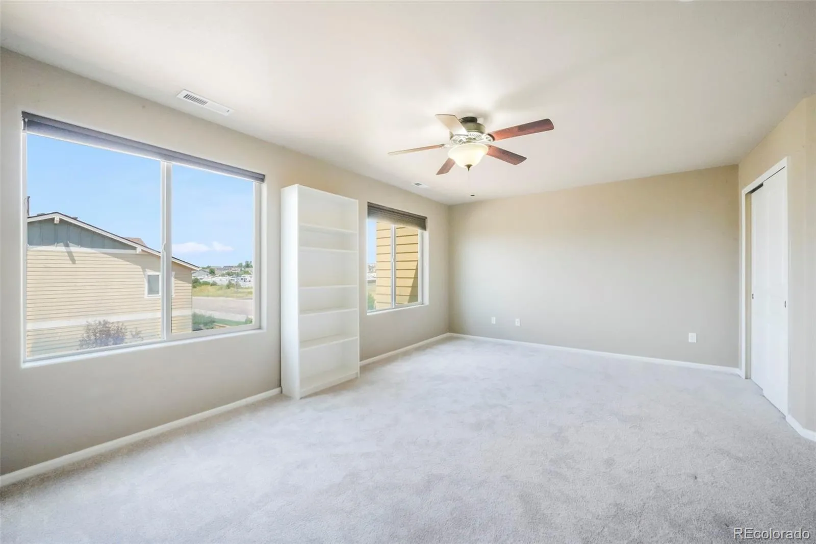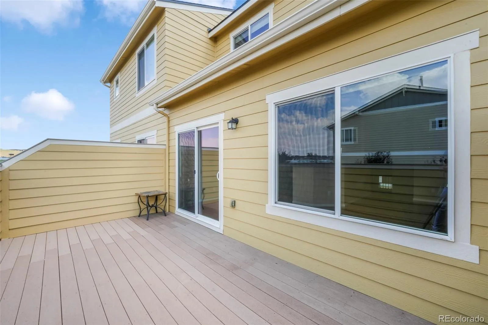This bright and inviting townhome offers two bedrooms, three bathrooms, and an attached two-car garage in a prime Northeast Colorado Springs location. The main level features new carpet, an open-concept kitchen and dining area with hardwood floors, black and stainless-steel appliances including a gas range and refrigerator, and direct access to a spacious 10×20 deck with views. A soaring ceiling enhances the airy feel, while a separate living room with a gas fireplace and half bath provides a welcoming guest entry area. Upstairs, the primary suite includes an en-suite bathroom and walk-in closet, while the oversized second bedroom offers dual closets and access to an additional full bathroom. Laundry facilities are also conveniently located on this level. Step out onto the private second-level balcony to enjoy breathtaking mountain views, or take advantage of the grassy community areas perfect for walking your pet. Additional highlights include wrought iron balusters, brushed nickel fixtures, and central air conditioning. Situated just west of the Powers shopping and dining corridor with quick access to Peterson AFB, Colorado Springs Airport, I-25, and Woodmen Road, this move-in-ready townhome offers comfort, convenience, and scenic living.
