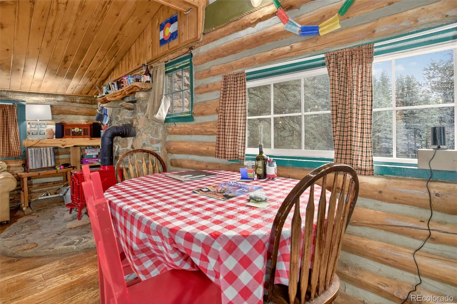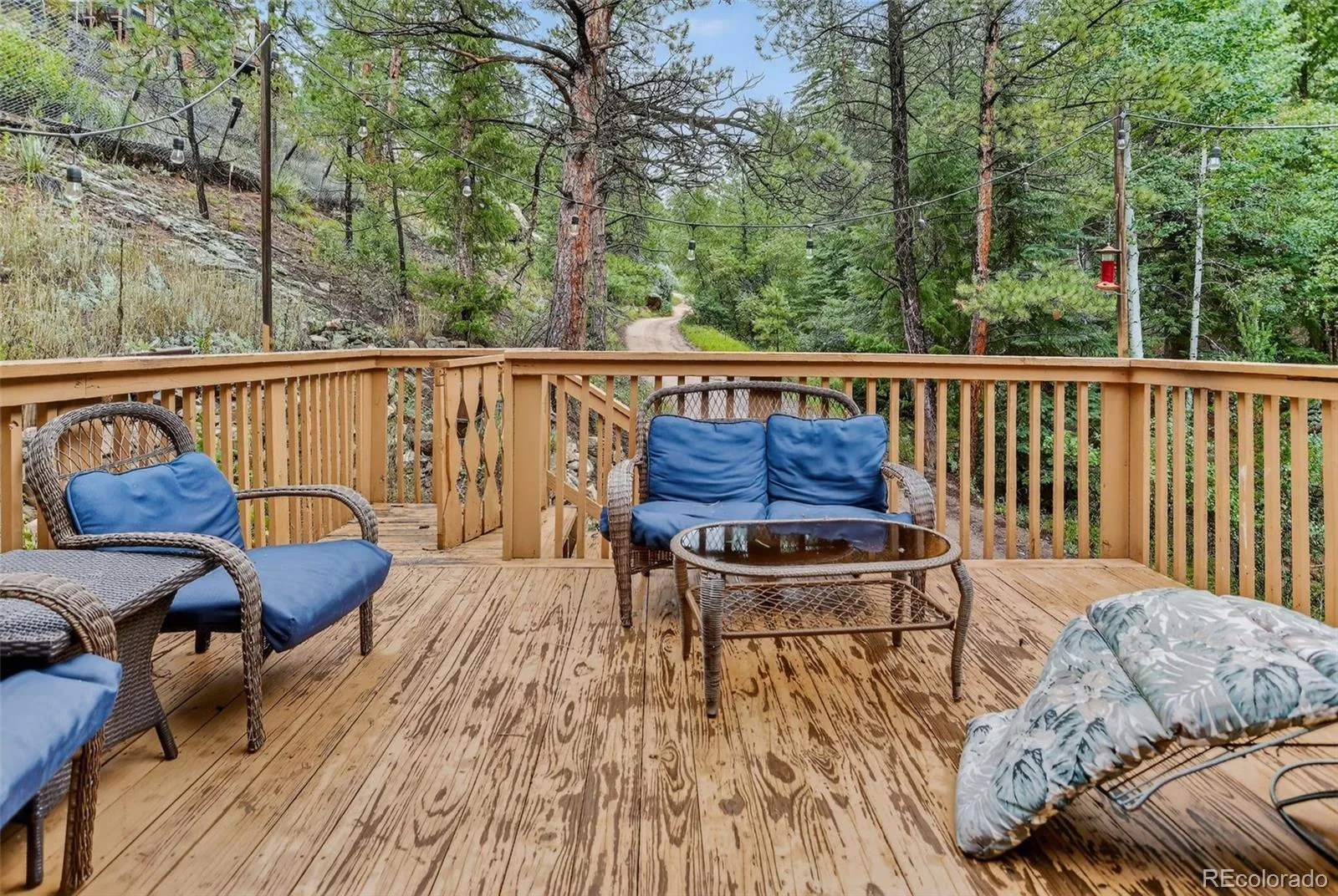 PRICE IMPROVEMENT – PREFERRED LENDER IS OFFERING A 1% NO CHARGE INTEREST RATE RATE BUY DOWN. Remodeled Kitchen and bathrooms. Fully Paid For and Included Solar Panels. ALL HARD WOOD FLOORS! NO CARPETS. Historic Sphinx Park Cabin with Updated Comforts. Nestled among towering pines and dramatic rock outcroppings of Buffalo Creek, this enchanting 1905 log cabin—originally the Buffalo Creek carriage house— offers the perfect Colorado mountain retreat. Blending historic character with thoughtful updates, the home provides a warm, inviting escape just minutes from Highway 285 and the charm of Buffalo Creek. Inside, you’ll find classic log walls, wood floors, and cozy living spaces accented by stonework and a wood-burning stove. The updated kitchen balances rustic decor with modern function, featuring a vintage-inspired range, butcher block counters, and open shelving. The open dining and living areas invite connection, with multiple windows framing the surrounding forest. Upstairs, the loft-style primary suite boasts vaulted ceilings, a private deck, and an abundance of natural light. An additional bedroom with a charming built-in platform bed offers flexibility for guests, a home office, or rental use. Bathrooms include both a custom soaking tub and a classic clawfoot tub, adding to the home’s historic charm. Step outside to one of the multiple decks where you can sip morning coffee, entertain family and friends, or stargaze beneath Colorado’s dark skies. Solar panels, a durable metal roof, and storage areas beneath the home provide both efficiency and practicality. Adventure is always close by—hike, bike, or climb in the nearby trails, fish the South Platte River, take a spontaneous dip at the Chutes, or enjoy live music at the Bucksnort Saloon. Fully furnished and move-in ready, this historic cabin is ideal as a year-round residence, weekend escape, or Airbnb investment.