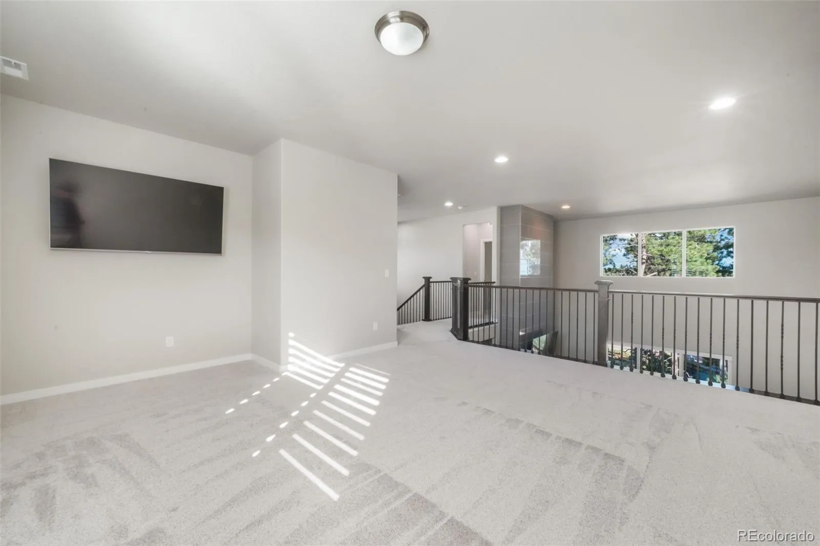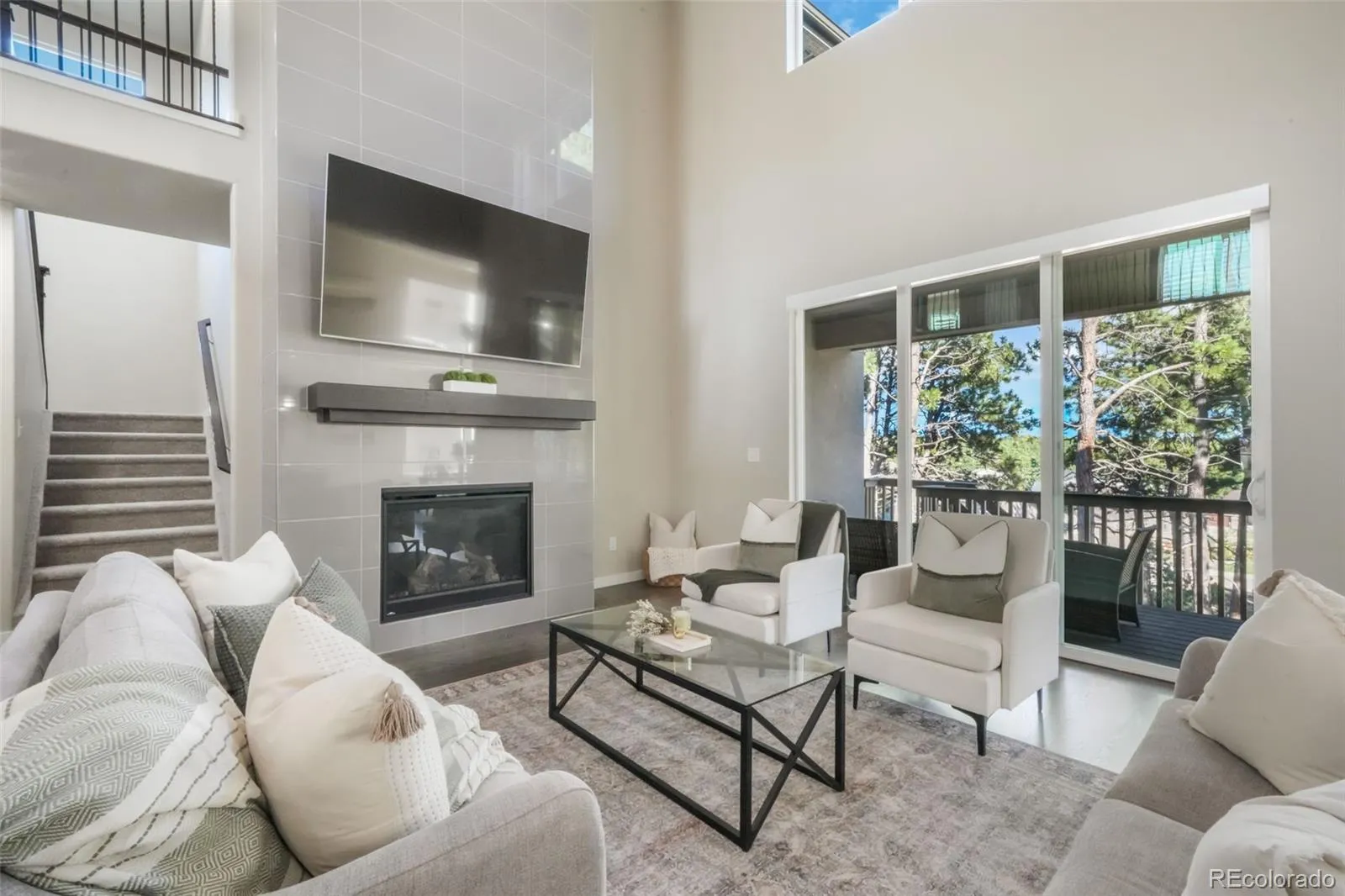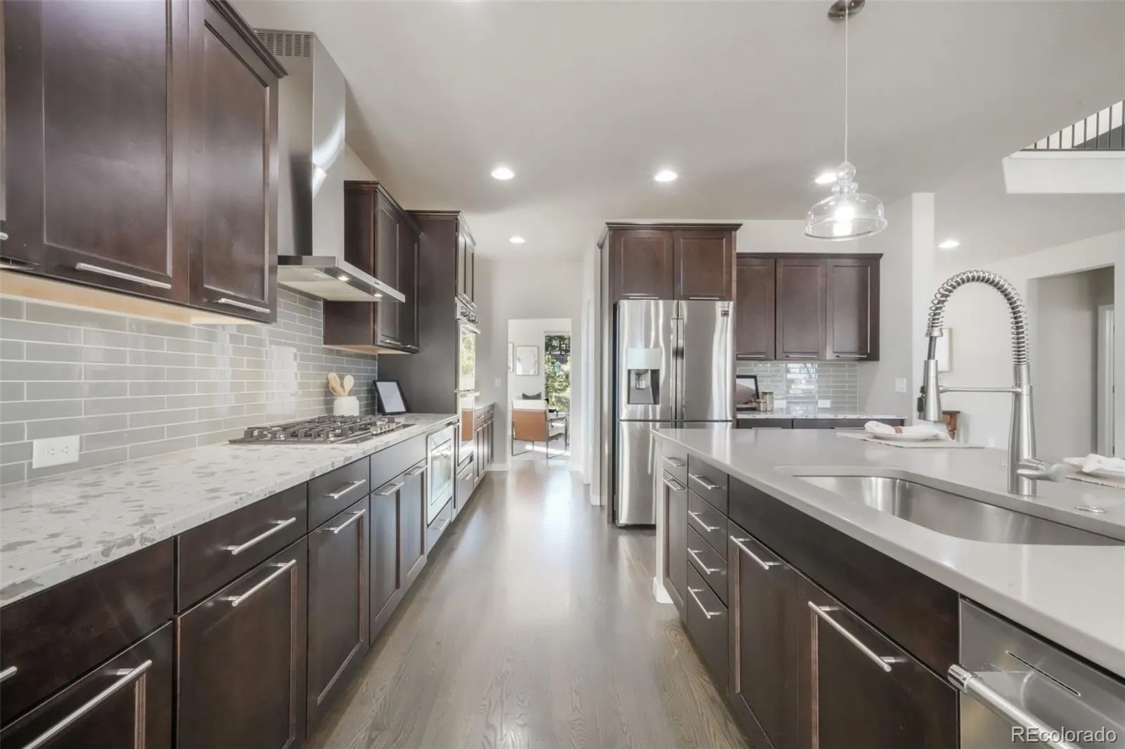 Welcome to this stunning 2 story Vantage home in Sanctuary Pointe with a finished walkout basement, thoughtfully designed to combine comfort, functionality, and elegance. Step inside to a bright main level where natural hardwood floors flow throughout the living areas. The gourmet kitchen has stainless steel appliances including double ovens and a brand new Bosch gas range, an expansive island with single basin sink, walk-in pantry, and abundant cabinetry and counter space. The living room impresses with a gas fireplace tiled to the soaring second story ceiling and an oversized sliding glass door opening to a wonderfully private covered composite deck. A dining room, office with French doors, mudroom, powder bath, and a main level junior suite with walk-in closet complete this level. Upstairs, there is a spacious loft, along with a second junior suite with walk-in closet, an additional bedroom with walk-in closet, a full hall bath, and the luxurious primary suite. Here, you’ll find a 5 piece bathroom and massive walk-in closet.The upper level laundry has a sink and can be accessed from the primary closet and the hallway. The walkout basement extends your living space with a generous family room including a second gas fireplace, a wet bar with dishwasher, fridge, and microwave, plus a rec room, all with durable LVP floors. The basement also offers a third junior suite, sixth bedroom, and full hall bath. There’s even hookups for a second laundry area in the storage space. Outdoor living is a delight with a covered composite deck, expansive patio, landscaped yard with turf pet area, natural scape and a covered front porch. The oversized 4 car garage has 1 tandem bay for long vehicles, a boat, or a workshop. With brand-new carpet throughout, AC, a garage fridge and an upright freezer, this home is turn key and move in ready! Welcome Home!