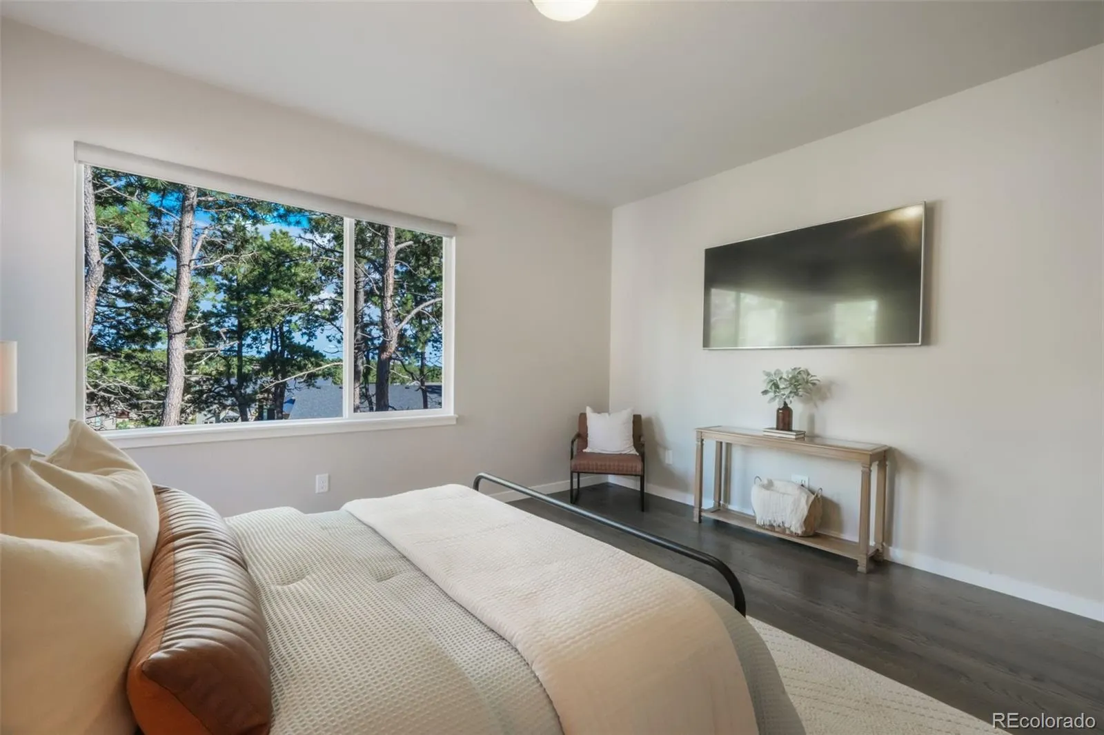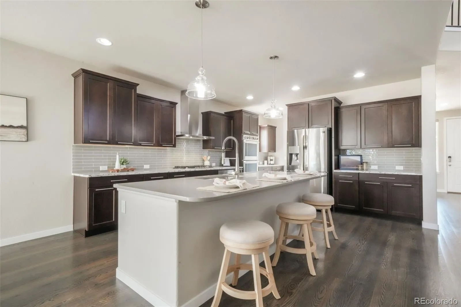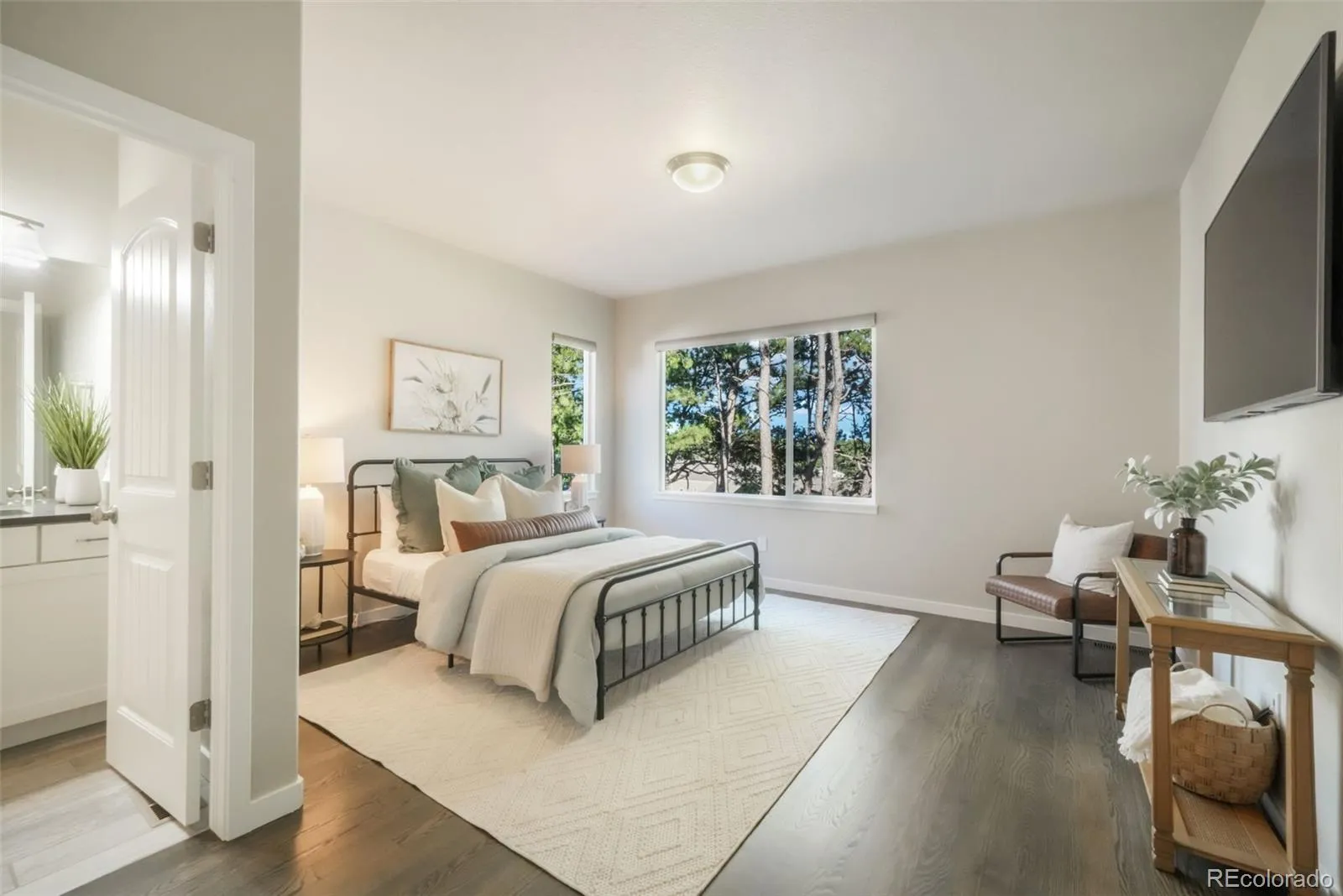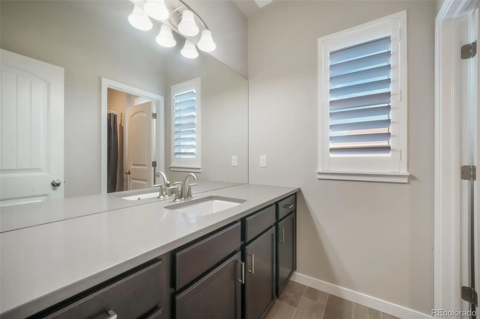 Welcome to this stunning 2 story Vantage home in Sanctuary Pointe with a finished walkout basement, thoughtfully designed to combine comfort, functionality, and elegance. Step inside to a bright main level where natural hardwood floors flow throughout the living areas. The gourmet kitchen has stainless steel appliances including double ovens and a brand new Bosch gas range, an expansive island with single basin sink, walk-in pantry, and abundant cabinetry and counter space. The living room impresses with a gas fireplace tiled to the soaring second story ceiling and an oversized sliding glass door opening to a wonderfully private covered composite deck. A dining room, office with French doors, mudroom, powder bath, and a main level junior suite with walk-in closet complete this level. Upstairs, there is a spacious loft, along with a second junior suite with walk-in closet, an additional bedroom with walk-in closet, a full hall bath, and the luxurious primary suite. Here, you’ll find a 5 piece bathroom and massive walk-in closet.The upper level laundry has a sink and can be accessed from the primary closet and the hallway. The walkout basement extends your living space with a generous family room including a second gas fireplace, a wet bar with dishwasher, fridge, and microwave, plus a rec room, all with durable LVP floors. The basement also offers a third junior suite, sixth bedroom, and full hall bath. There’s even hookups for a second laundry area in the storage space. Outdoor living is a delight with a covered composite deck, expansive patio, landscaped yard with turf pet area, natural scape and a covered front porch. The oversized 4 car garage has 1 tandem bay for long vehicles, a boat, or a workshop. With brand-new carpet throughout, AC, a garage fridge and an upright freezer, this home is turn key and move in ready! Welcome Home!