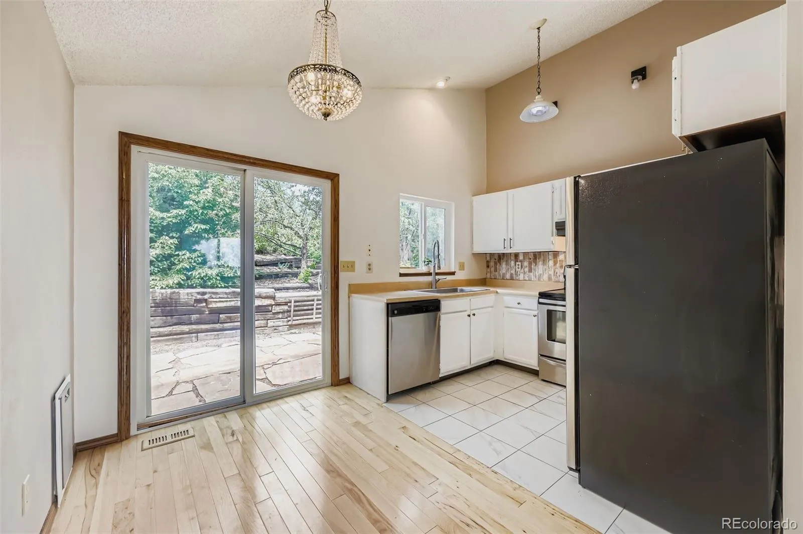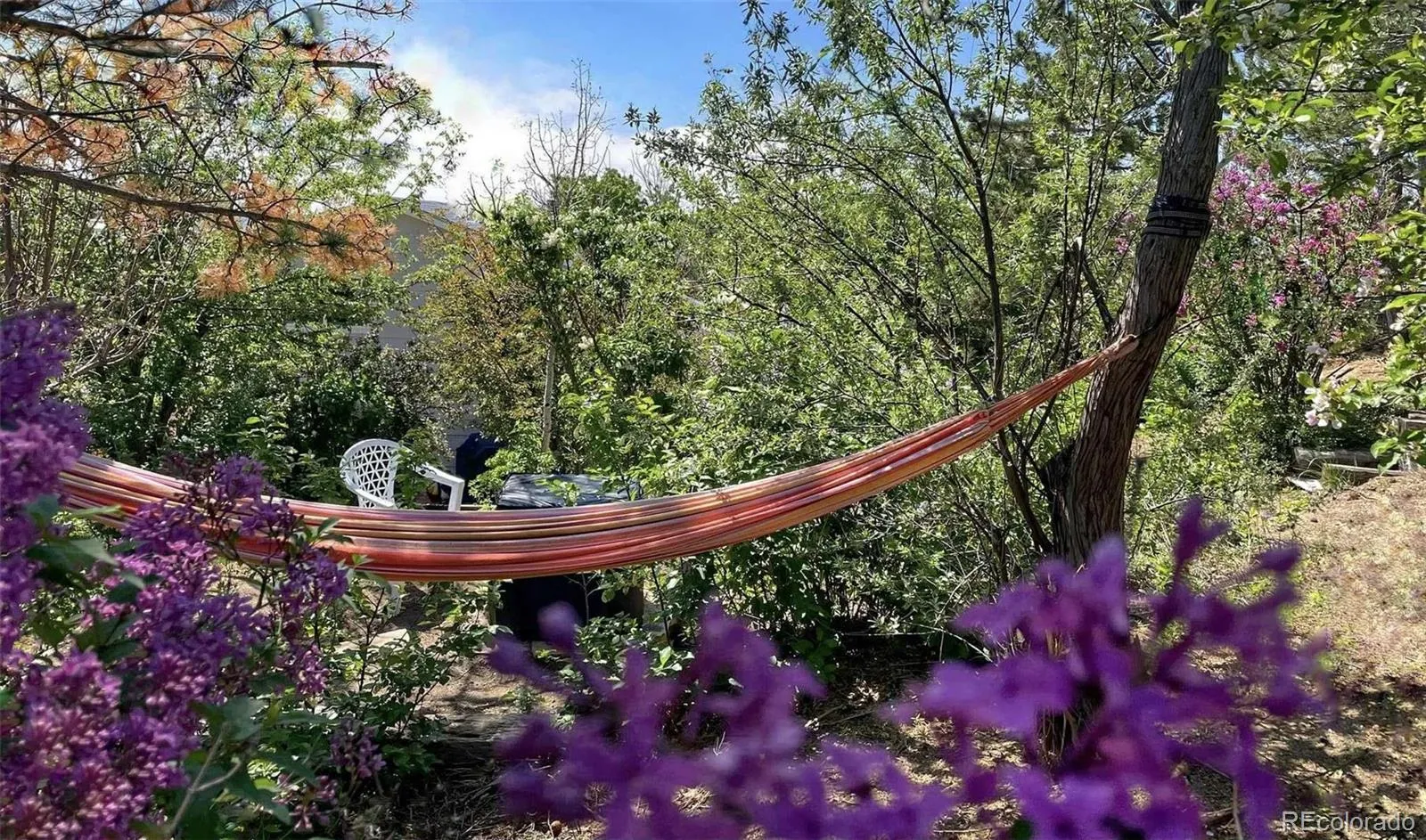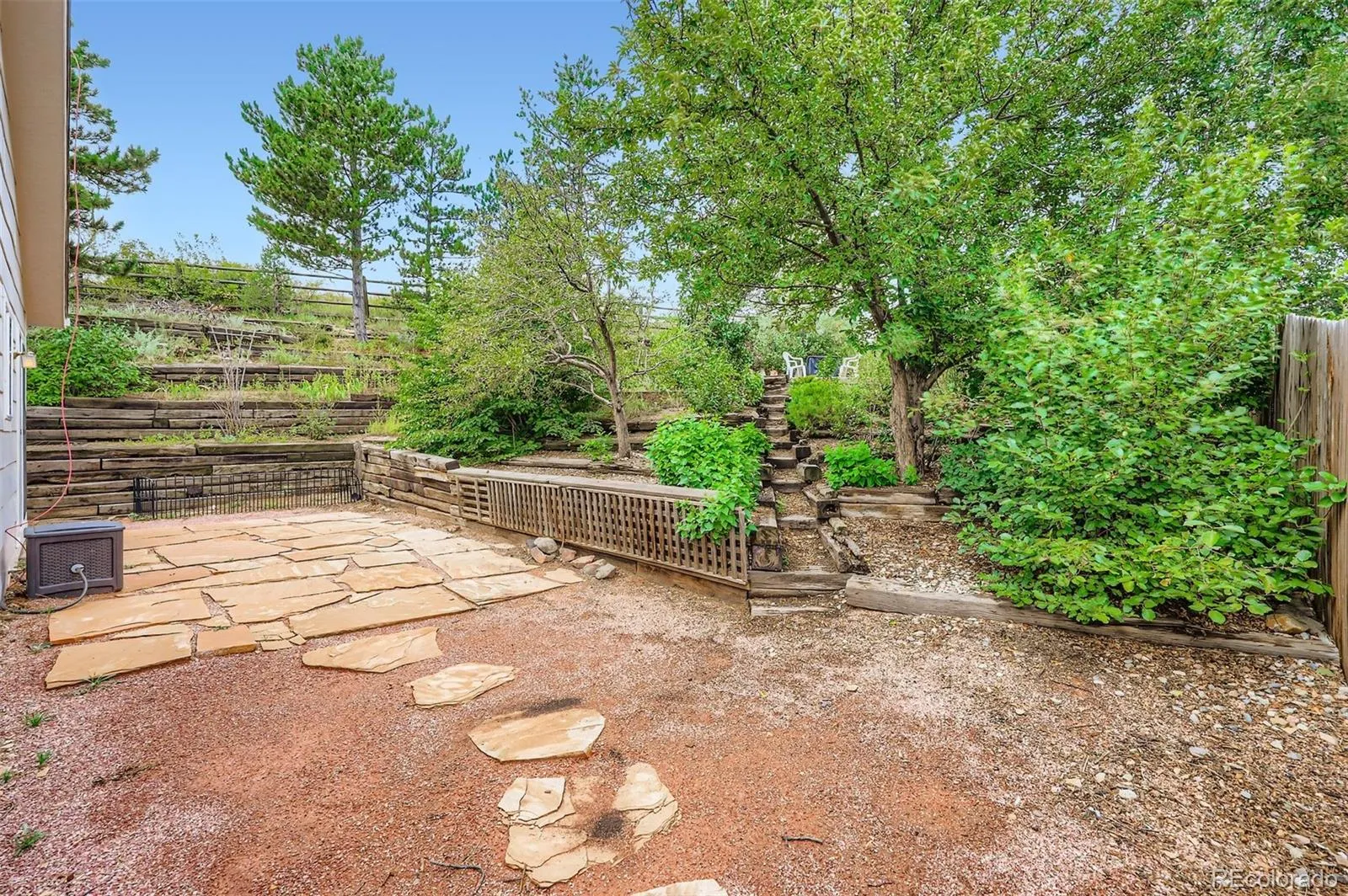 Privacy is key here… placed perfectly in the heart of the cul-de-sac and backing to open space and the Homestead Trail! Incredible home for the peaceful outdoor enthusiasts. Mountain Bike, Hike, Walk in nature just out your back door! Quiet with expansive views and gorgeous sunsets. Fruit trees and pines fill the nearly quarter acre lot… plum, cherry, apple, crab apple… lilacs, wildflowers, roses, fire pit area, stone patio… spacious and private yard to enjoy daily and to impress your friends and family during your cookouts. The terraced yard adds such character and beauty… uniquely appointed. Many plantings envelope this magical retreat. Sparkling city views! Open and newly updated kitchen with large stainless sink. New tub, tile surround and hardware… clean and pretty. Generous sized bedrooms with walk-in closets, gleaming hardwood flooring throughout; laundry is conveniently located upstairs with the washer/dryer included. Warm sunshine envelopes this amazing layout; no carpet; wood burning stove located in the surprisingly warm family room, an added bonus for those chilly Colorado evenings. This family room is very flexible and could be appointed as an amazing den, office, music room, truly anything you wish… even a third bedroom! There is a clean one car garage attached and good parking space on the driveway for campers, RV’s, extra vehicles, toys, etc… Close to award winning schools, parks, shopping, movies, quiet and easy living in the beautiful home. Easy to the Powers Corridor, Peterson AFB, NORAD, Fort Carson Army Post, and so much more. Ideal ability to own a gorgeous home and never pay rent again!