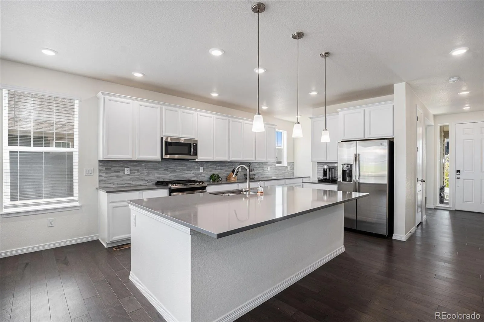 Amazing newer Palisade Park home backing to the park and ready for your move in today! The home is full of upgrades and has barely been lived in! With fantastic access to I-25 to Denver and Loveland/Fort Collins and quick drive to Boulder this home has it all. Enjoy everything this exploding area has to offer, with Top Golf, restaurants, shopping, all kinds of new development, and tons of things to do close by. As you pull up the home you will enjoy the south facing driveway. Upon entry you have a front living room area or study. The open floor plan leads into the kitchen with breakfast bar and formal dining space. The kitchen has all white cabinets, grey quartz countertops, pantry space, and stainless appliances. The warm living room has tons of natural light and a gas fireplace. There are a total of 4 large bedrooms, 3 bathrooms, a large upper-level loft, and huge basement area. The large basement and 3 car garage provide unlimited potential for game room, work out space, storage, crafting, workshop or whatever your specific needs are. The covered back patio looks over the beautiful park and fenced yard with amazing sunsets. This home is extremely energy efficient and has a full solar system to keep your monthly expenses extremely low. This amazing newer home is ready for quick move in.