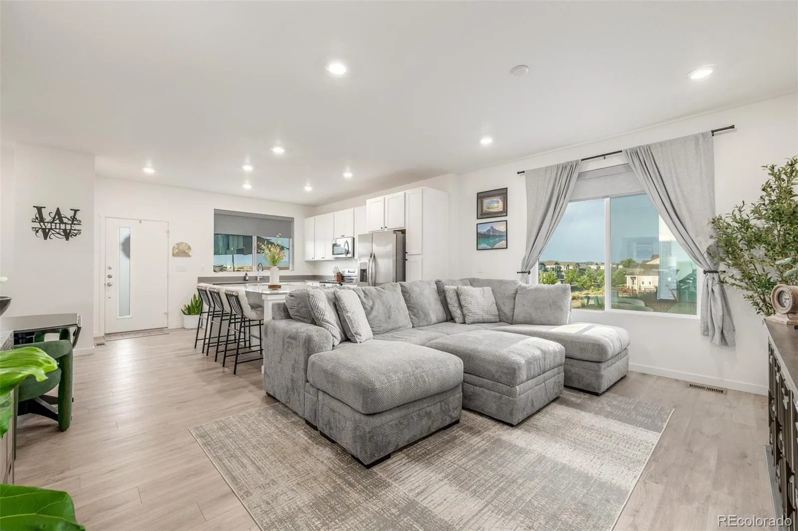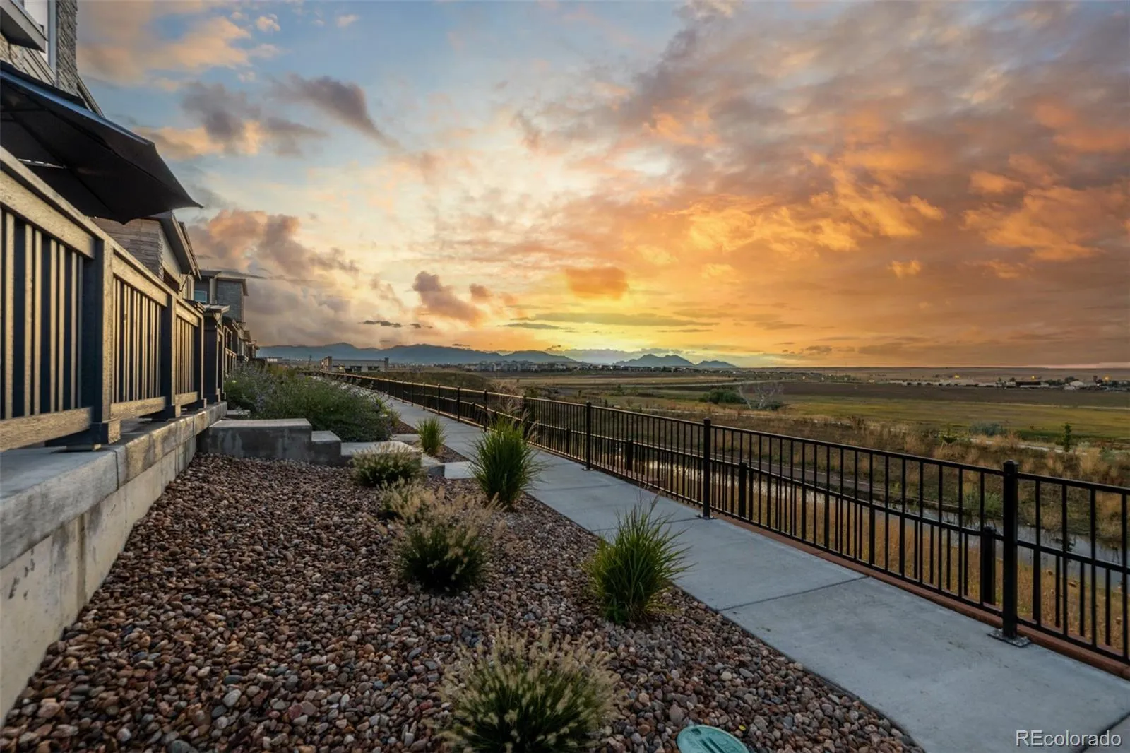 Enjoy peaceful strolls on nearby community walking trails or relax with a glass of wine while taking in breathtaking sunsets right from your front porch. Convenience is everywhere—Panorama Park, Stanley Lake, Candelas trails, food halls, coffee shops, gas station and King Soopers are just minutes away. Even DIA is only 32 minutes from your door!