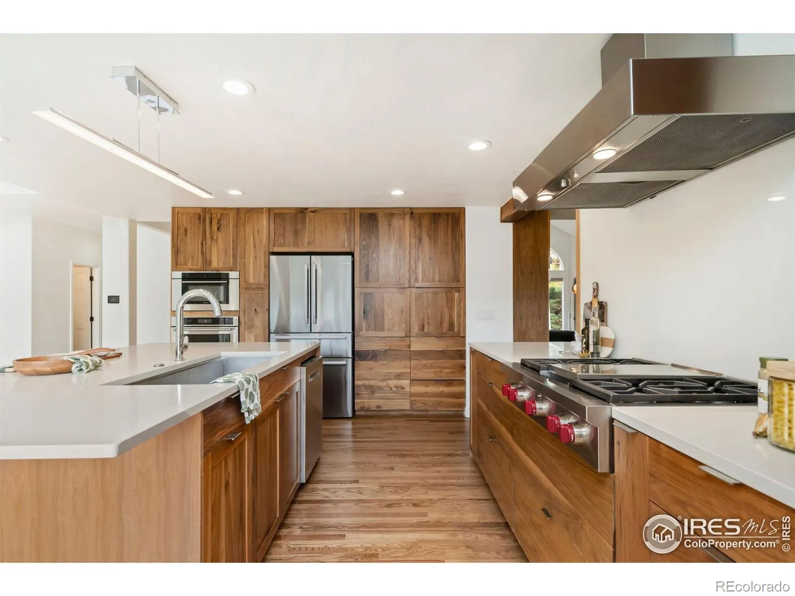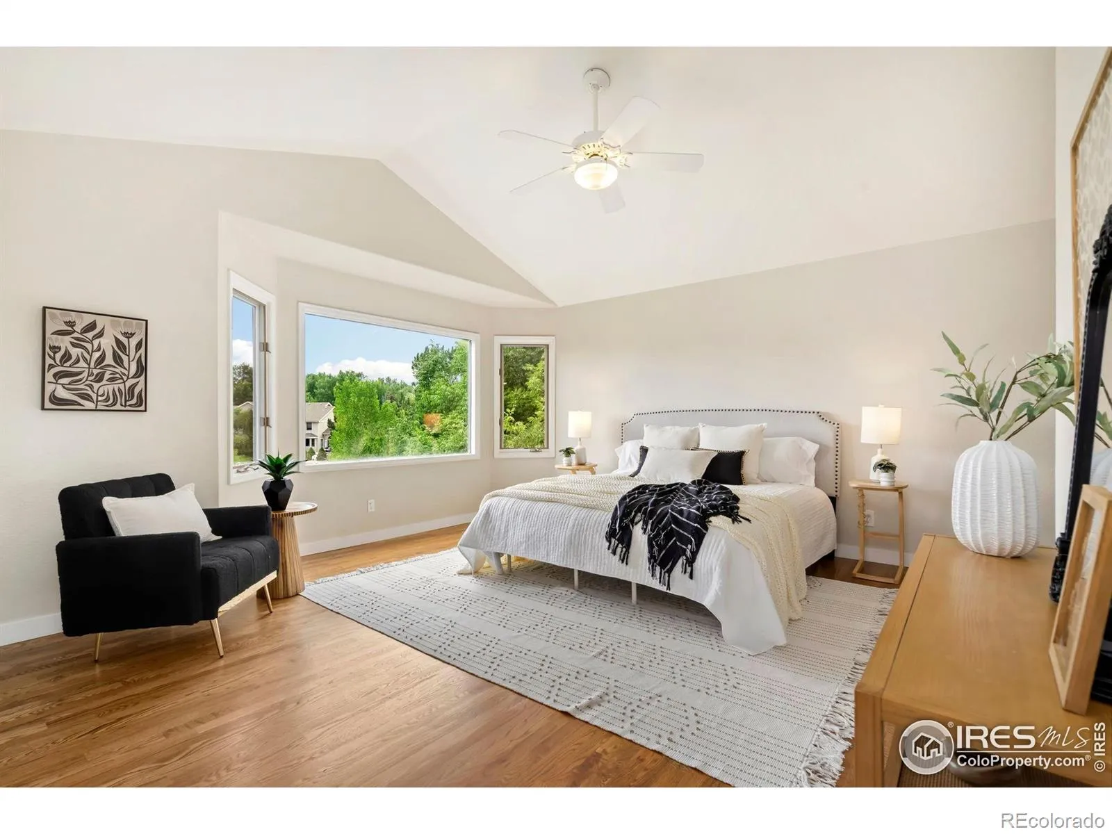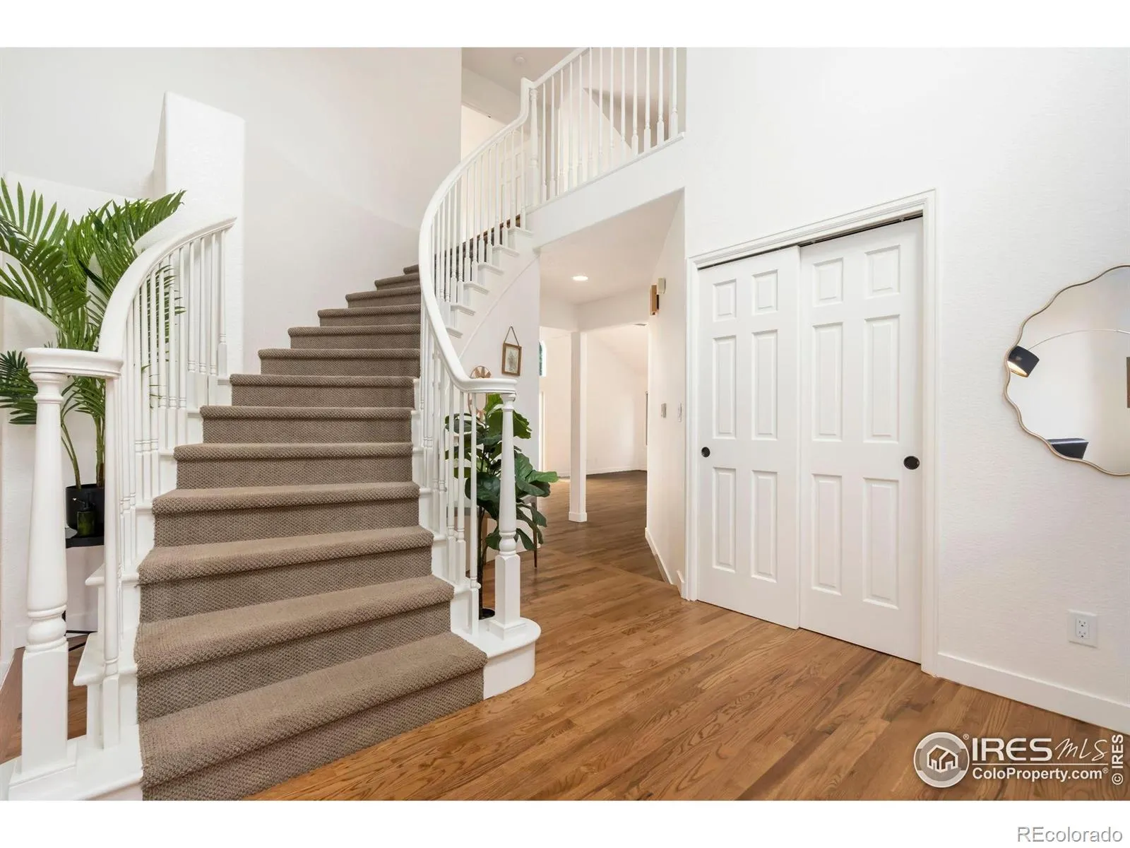Now is your chance to own a rare Clarendon Hills treasure-nestled at the end of a quiet cul-de-sac on a .61-acre lot with mountain views and Fossil Creek just beyond the backyard. This 4,651 sq ft home blends timeless elegance with modern comfort, offering sun-filled living spaces, custom details, and a setting that feels private yet connected to the best of Fort Collins. From the moment you arrive, the mature trees and landscaping set the tone for something special. Step inside and you’re greeted by soaring cathedral ceilings, a dramatic curved staircase, and freshly refinished hardwood floors that flow throughout the main level. The chef’s kitchen is a showpiece with custom walnut cabinetry, high-end Wolf gas range and steam oven, and seamless flow into the family room with a gas fireplace and oversized windows to frame the yard and mountain views. A formal dining room, bright living room, and main-floor office/bedroom with attached bath round out the thoughtful layout. Upstairs, the loft connects four bedrooms, including a primary retreat with vaulted ceilings, a private deck, and a luxurious five-piece bath. Hardwood floors run through every upper bedroom, with a skylight adding warmth and light to the shared bathroom. The walkout basement provides flexible space for a rec room, game room, or studio, plus a full bedroom, bathroom, and abundant storage. Outside, entertain on the expansive deck overlooking a fenced yard, garden boxes, and open space-perfect for Colorado evenings. With access to trails, and a quick drive to Horsetooth Reservoir and Old Town Fort Collins, this home offers the rare combination of privacy, community, and lifestyle. A place to live beautifully, entertain effortlessly, and feel at home every day.