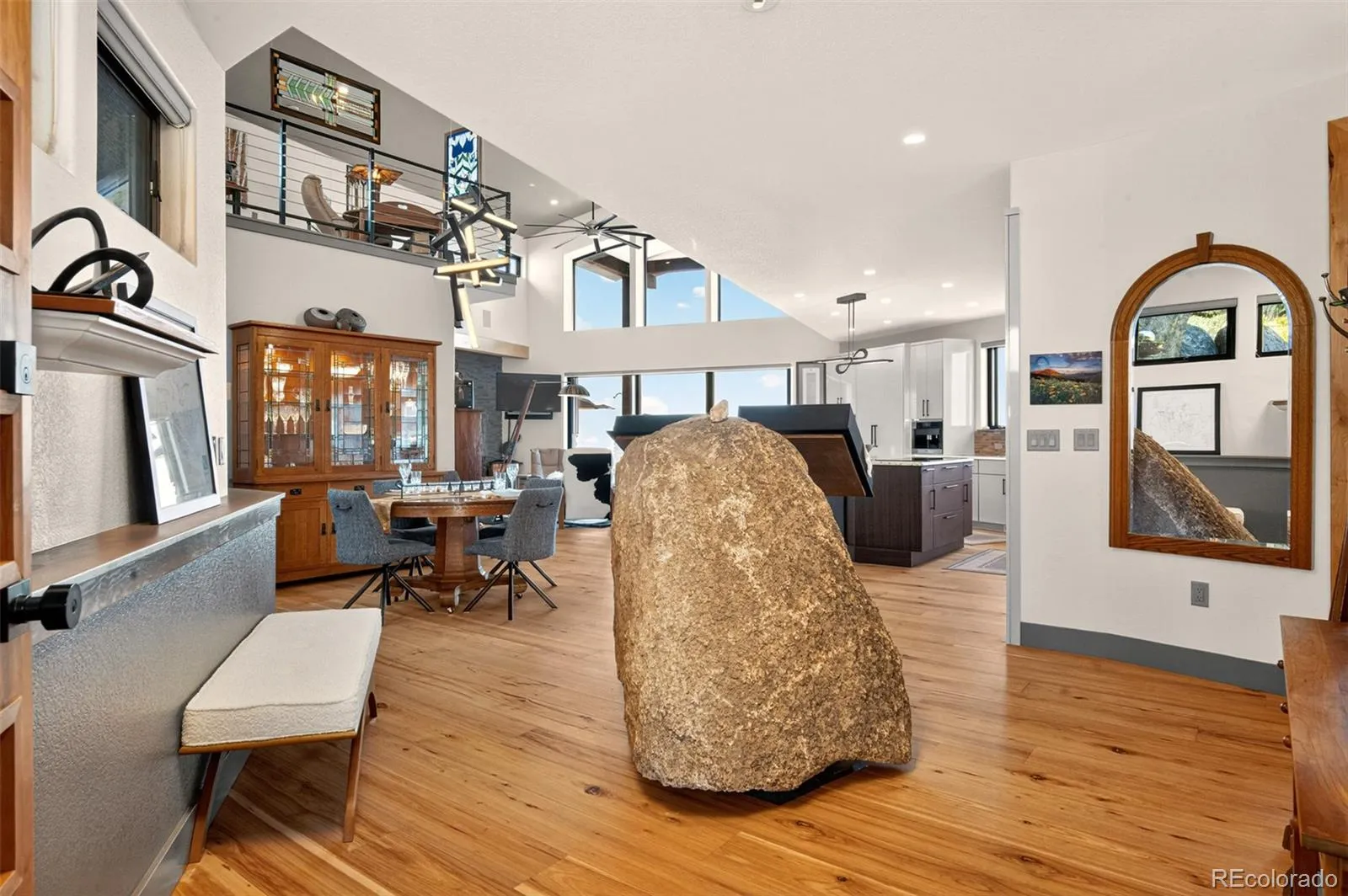 Welcome to this spectacular, truly custom mountain home named “Falling Rock”. This home boasts 4 bedrooms, 3 bathrooms, a 2 car oversized garage, an ATV garage all surrounded by rock outcroppings and majestic mountain views! As you walk toward the front entrance you are met with a covered patio with a chairlift from Angel Fire for a nice seat to soak in the surrounding views. Now as you open the custom front door you will be in awe! The first thing you’ll notice is the large boulder seated in front of the main living area bringing the outdoors in! The main open concept area includes a kitchen, living room, dining area and a loft all surrounded by large windows w/ plenty of natural light. The gourmet kitchen has “caressed” granite counters, a large island, a black sandstone sink, a cooktop all encompassed by high end custom cabinetry designed to maximize space. Beyond the kitchen is the perfectly situated dining areas so you can see the mountain views while enjoying a meal. Then is the grand living room with a wood burning fireplace and a glass pocketed door bringing you out to the back deck with some of the most amazing views ever seen! The living room has a loft office perched perfectly just off of it with an elegant spiral staircase! The primary bedroom, fit for royalty, has a 5 piece en suite bathroom and a walk out to a private patio. The primary bathroom has a custom tiled steam shower encompassed with glass, a soaking tub with private views, two sinks and granite countertops all with heated tile flooring bringing you into the walk in closet. The spacious walk in closet provides ample space for your wardrobe and conveniently connects to one of the two laundry rooms. Down the hall you have 3 bedrooms, 2 bathrooms and an additional laundry/mudroom from the garage. Bedroom 2 has an en suite 3/4 bathroom and a walk in closet. Bedroom 3 has a connecting 3/4 b bathroom also with a walk in closet. Bedroom 4 is being used as an office with a walk out to a private deck.