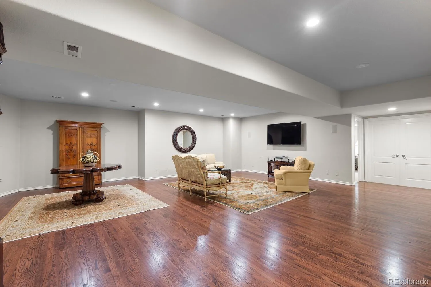 In the finished basement there is large open room with wood floors, perfect for a rec room, gym, theater or family room. Also, a full bath, 4th bedroom, large storage / utility room with newer furnace and hot water heater.