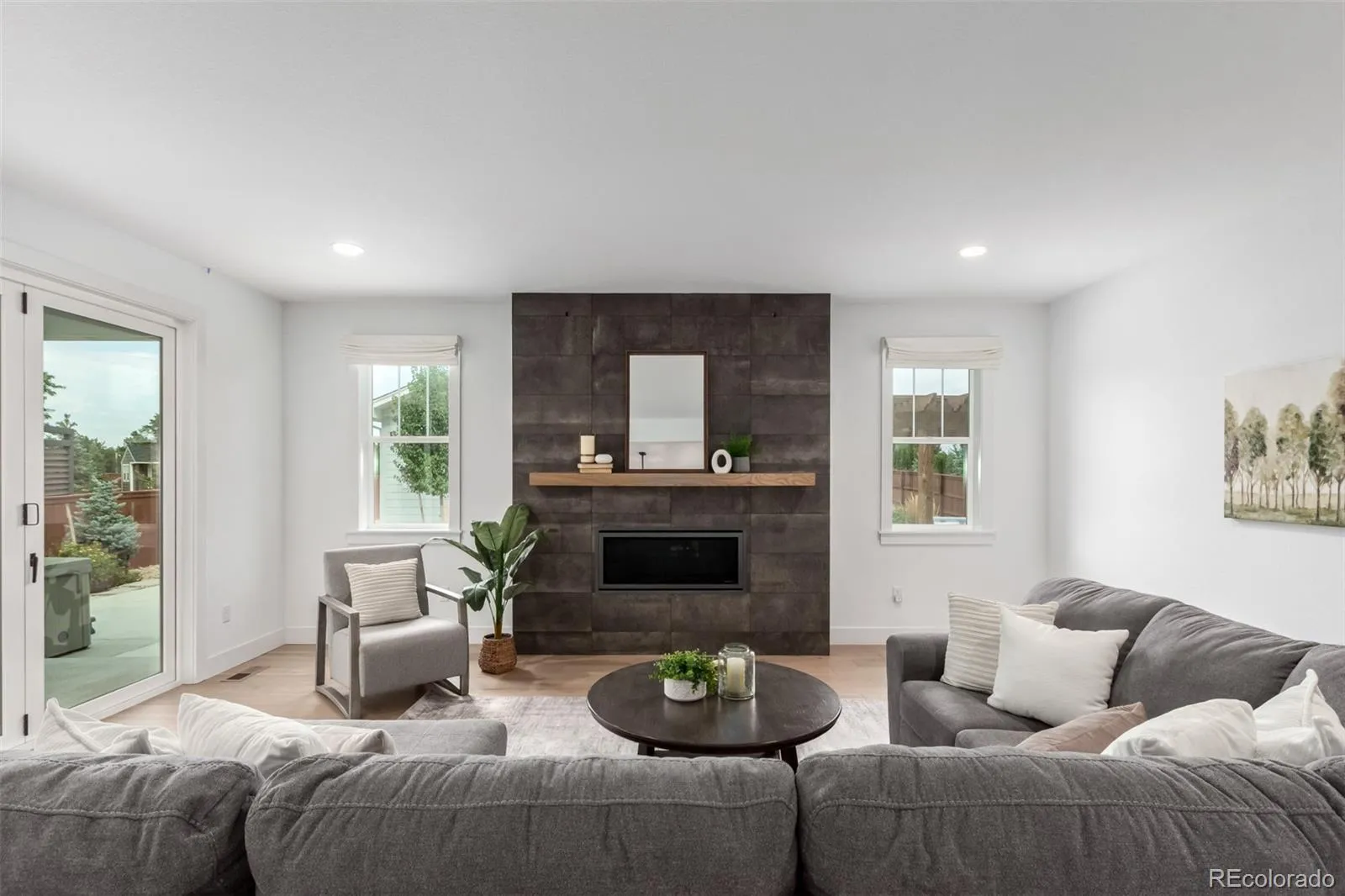 Indulge in luxury living with this exceptional 5 bedroom, 4 bathroom Erie estate complete with a 2-bedroom, 1-bath ADA-compliant guest home. The main residence showcases a chef’s kitchen with stainless steel premium appliances, dual ovens, a walk-in pantry, and a quartz countertop oversized island that seamlessly connects to the dining and living spaces. You’ll find a private office, main-level guest suite, and expansive great room with gas fireplace. The home is saturated in Engineered wood and lux design features throughout. Head upstairs and there are two bedrooms joined by a Jack-and-Jill bath, your luxurious owners’ suite with make-up nook that has mountain views, 5pc spa bathroom with a gorgeous soaking tub and custom closets. The finished basement offers a rec room, home gym, and additional guest suite. Your backyard oasis features a built-in BBQ, pergola, covered patio, hot tub, fire pit and expansive lawn. Perfect for multi-generational living or long-term guests, the detached ADU provides independence without sacrificing comfort or style. A rare opportunity to own a private retreat that blends elegance, function, and resort-style amenities—this estate truly has it all. Enjoy easy access to downtown Erie, open space trails, and top-rated St. Vrain Valley schools. Solar Panels included!