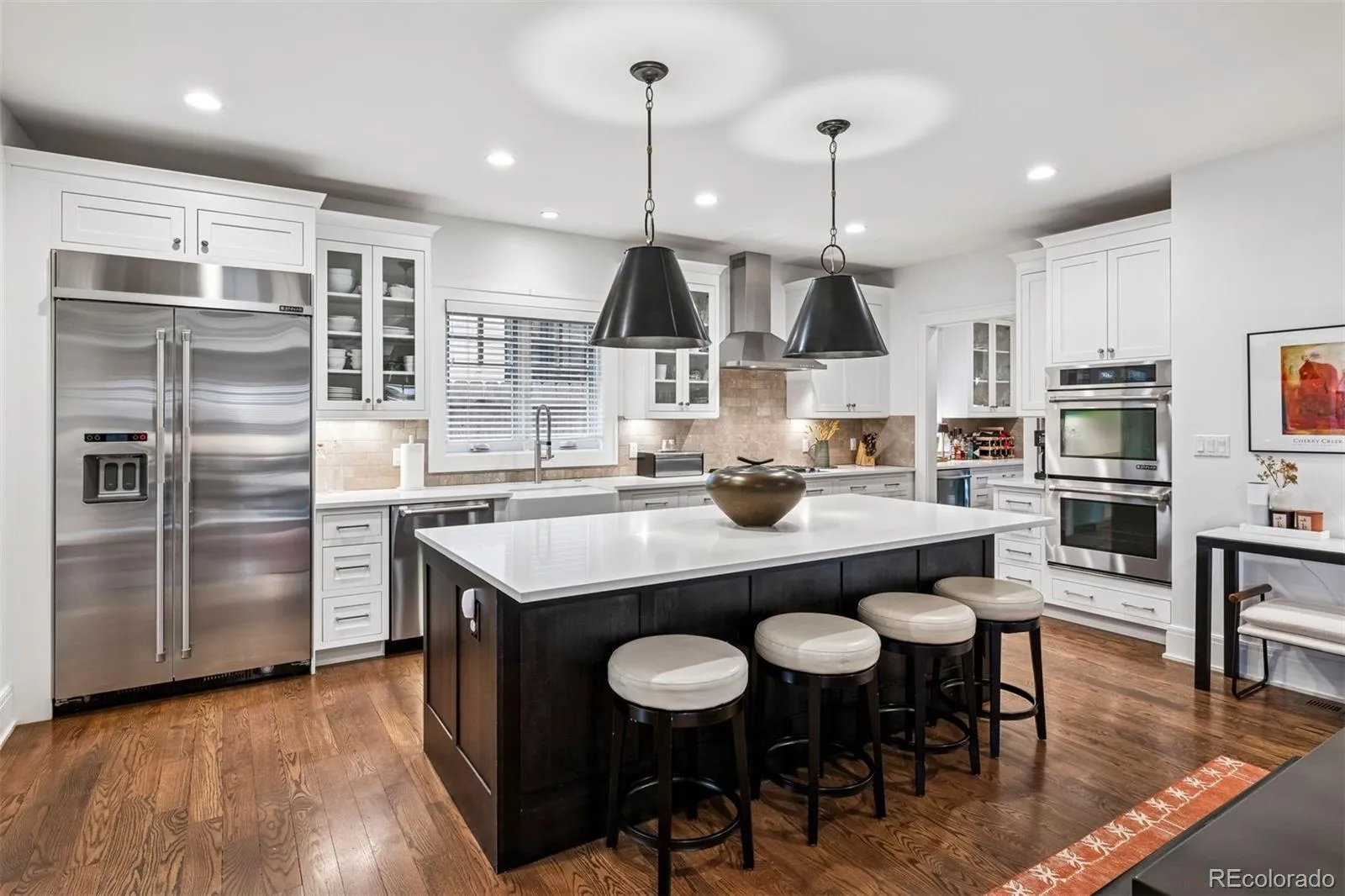 Rare opportunity in Wash Park! This all-brick traditional, thoughtfully designed by Gunlock Homes and offered by its original owners, combines timeless architecture with an ideal location. The main level features a smart floorplan with formal dining, a butler’s pantry, private office, and an open kitchen with a large center island that flows into the living room. Here, a fireplace with custom wainscot surround is the centerpiece, framed by elegant box-beam ceilings overhead. French doors open to a pergola-covered patio, landscaped yard, and a built-in outdoor kitchen—perfect for entertaining. Upstairs, all four bedrooms include ensuite baths, highlighted by a spacious primary suite with five-piece bath and walk-in closet, plus a full laundry room. The finished basement adds a large rec room and two additional bedrooms.( one currently used as a gym) Set on a 6,240 sq ft lot with a detached two-car garage, this home blends character, comfort, and convenience just minutes from Wash Park, Cherry Creek, top schools, and Denver’s best shopping and dining.