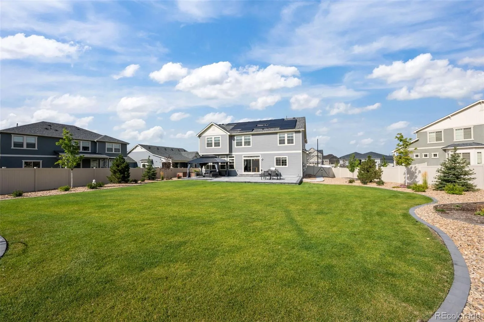 Welcome to this beautifully designed home, nestled in a quiet cul-de-sac within an exclusive gated community. Enjoy the benefits of a golf course community with the privacy of a secluded yard. This property, built in 2022, offers almost 5,000 square feet of meticulously designed living space on just over a quarter-acre lot, perfect for comfort and entertaining. The backyard is a private retreat, featuring over $70,000 in professional landscaping, 17 trees, a stone patio with a built-in pergola, and raised garden beds. The oversized lot gives you the space and seclusion you desire, while the front balcony provides stunning mountain views, an ideal spot to relax. Inside, the open-concept main floor features luxury vinyl plank flooring and a spacious living room with a gas fireplace. The chef’s kitchen is a host’s dream, complete with stainless steel appliances, two refrigerators, two freezers, a five-burner gas stove, black granite countertops, and an oversized island. The dining area seamlessly connects to the backyard for effortless indoor-outdoor entertaining, and there’s a dedicated space for a home office. Upstairs, the primary suite offers a spacious walk-in closet and a luxurious five-piece ensuite with a jetted tub and oversized walk-in shower. A junior suite features a private bath, while two additional bedrooms share a full bathroom. The upper level also includes a convenient laundry room and a versatile loft. The fully finished basement features an extra-wide staircase, a fifth bedroom with a private full bath, and a large open area perfect for a theater, game room, or playroom. This home also includes dual HVAC systems for total climate control, a three-car attached garage with overhead storage and epoxy floors, plus an oversized crawl space for abundant storage that houses a whole-home water softener. This property truly combines luxury, privacy, and convenience.