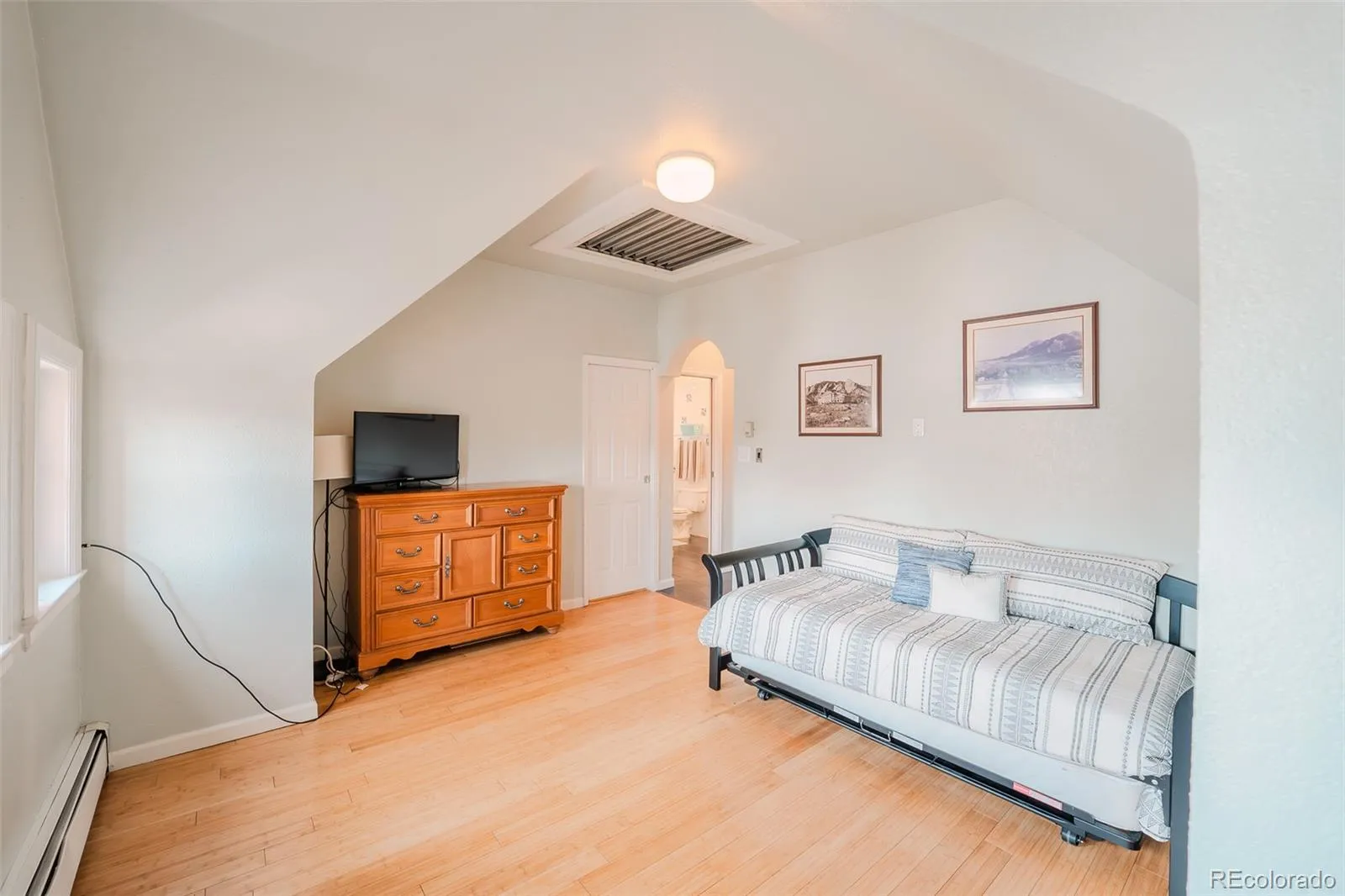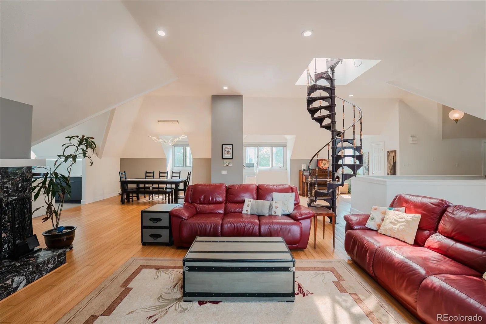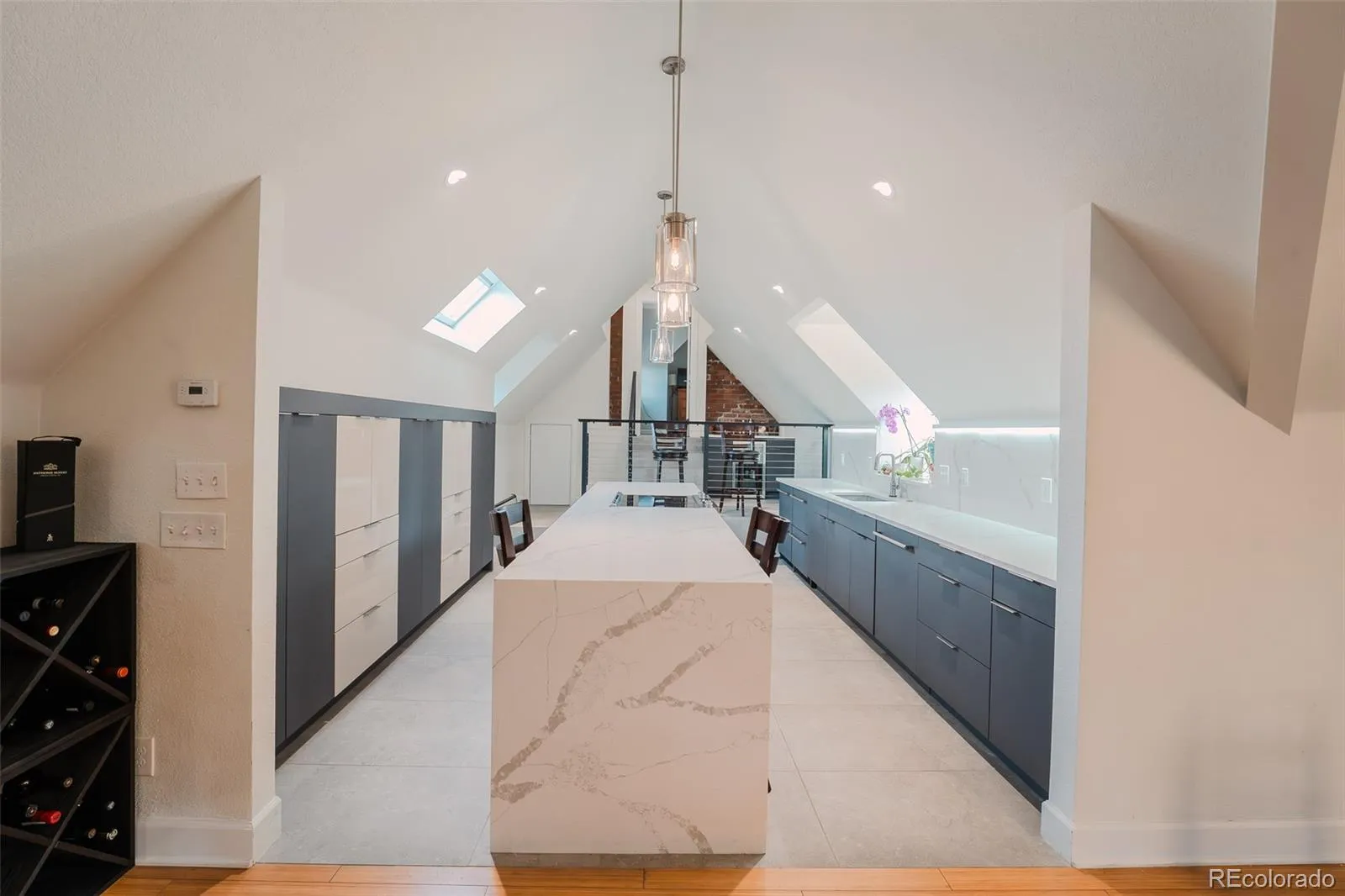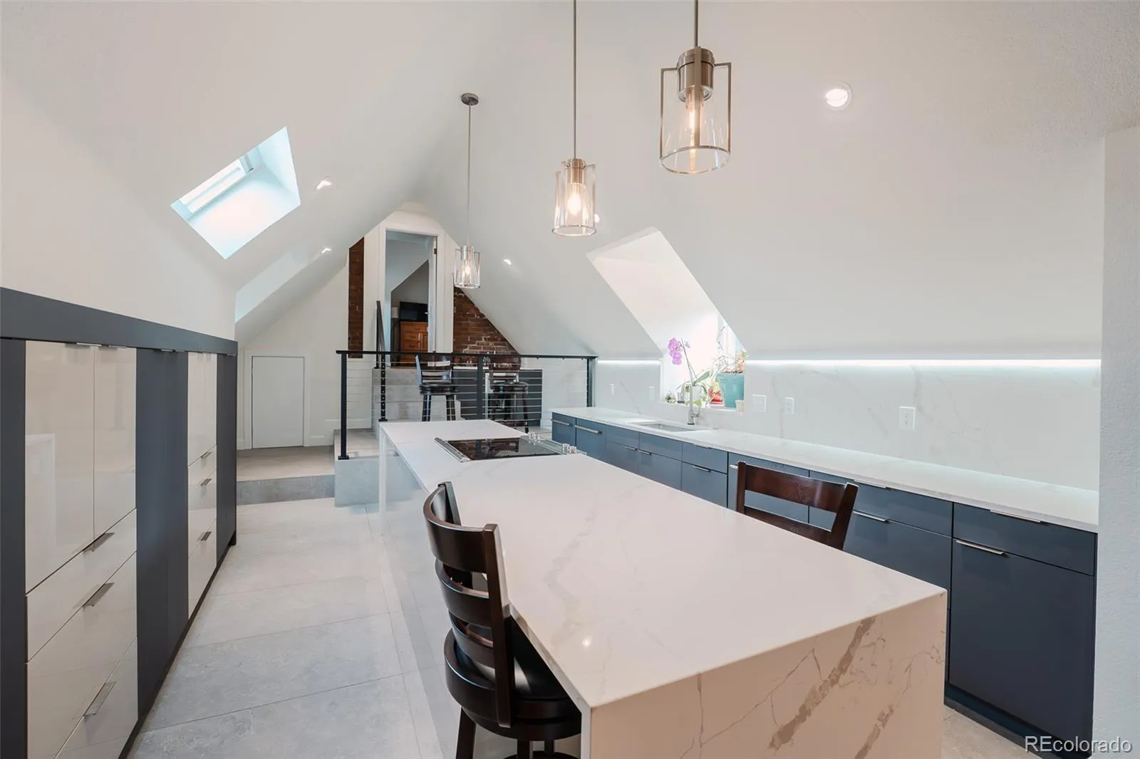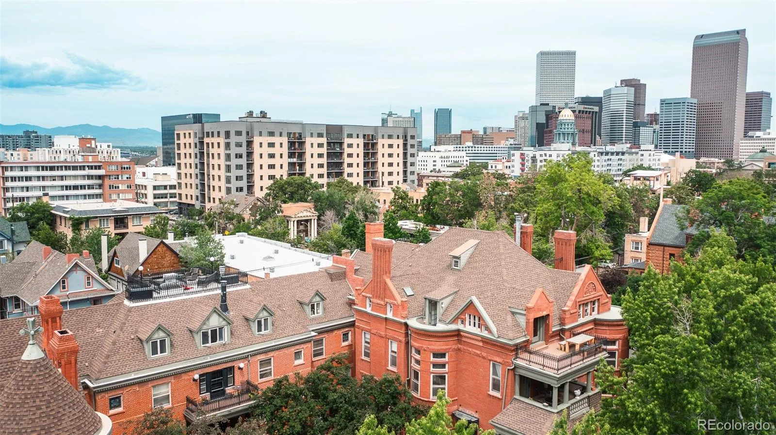 Featured on TV! Breathtaking 2,500+ square foot victorian penthouse in the vibrant heart of Capitol Hill, where elegant historic charm meets modern luxury. This one-of-a-kind residence, in a beautifully preserved early 1900s building, the largest unit at the Pennborough, boasts high vaulted ceilings, real terrazzo in the foyer and staircase, a modern fully remodeled kitchen featuring sleek quartz waterfall countertops, top-of-the-line stainless steel JennAir appliances, tons of custom paneled soft-close cabinets and drawers, quad built-in drawer fridges, and two spacious drawer freezers. The open-concept design flows seamlessly into a generous dining area and an expansive living room, complete with a wood burning fireplace with a beautiful marble surround, perfect for hosting. Ascend the striking spiral staircase to your private rooftop patio, recently redone with Trex decking, an oasis ideal for relaxing or entertaining under the stars with striking city and mountain views, a rare feature in Capitol Hill. The gracefully designed layout includes two private suites at opposite ends of the unit for privacy. The south suite stuns with soaring vaulted ceilings, large and bright skylights, a luxurious private bath with a walk-in shower and a full footprint skylight, while the elevated north suite offers a spacious bedroom, private bath, walk-in closet space, and it’s own private entrance, perfect for an Air BnB. Short-term rentals are allowed (local rules and regulations apply). Long term leased rentals are allowed after owning for two years. This exceptional penthouse comes with one reserved parking spot and an additional enclosed garage space. Other recent updates include the electrical panel and sewer line. Steps away from Governor’s Park, trendy restaurants and bars, coffee shops, iconic music venues, Whole Foods, and Trader Joe’s. Downtown only minutes away, this Capitol Hill gem offers the ultimate blend of historic elegance and modern urban living.