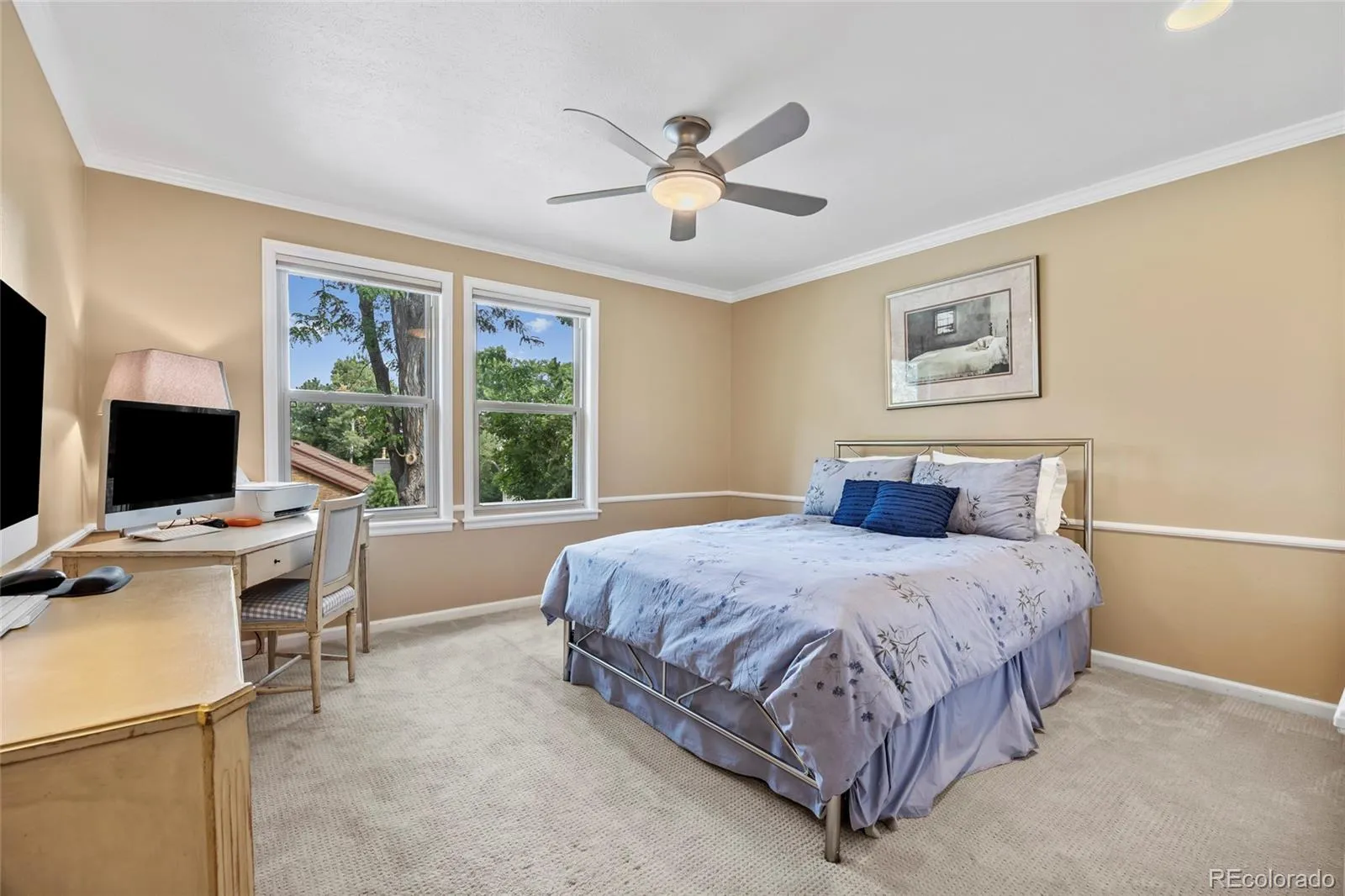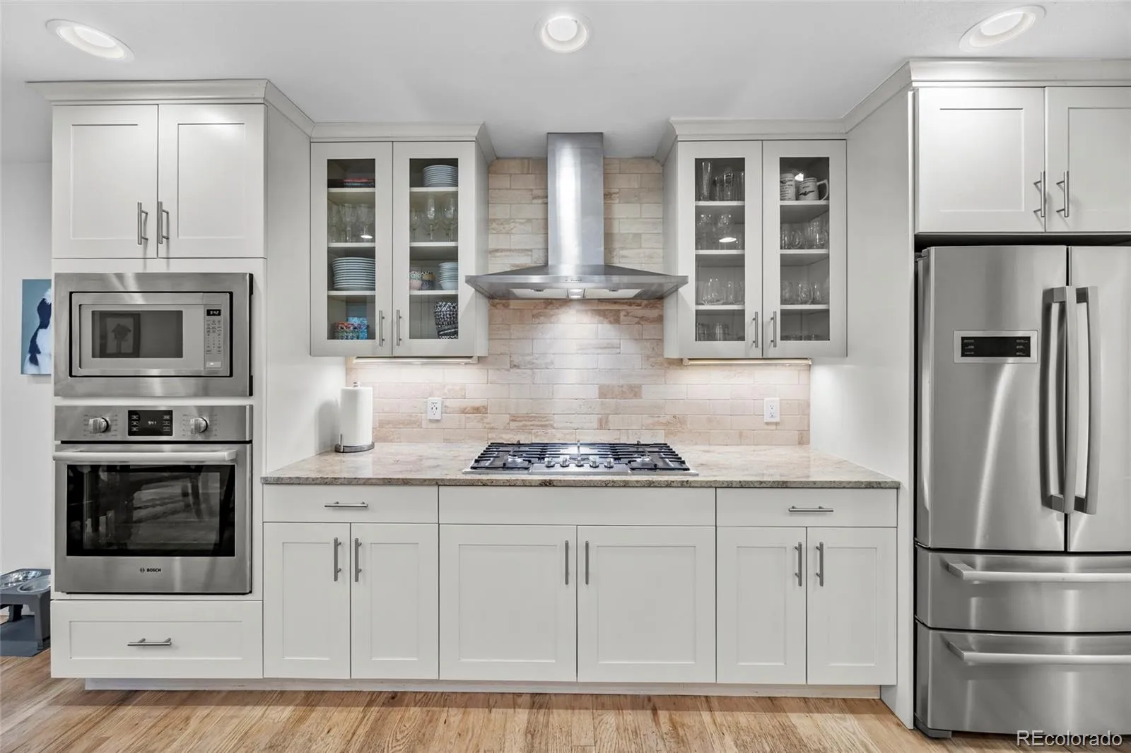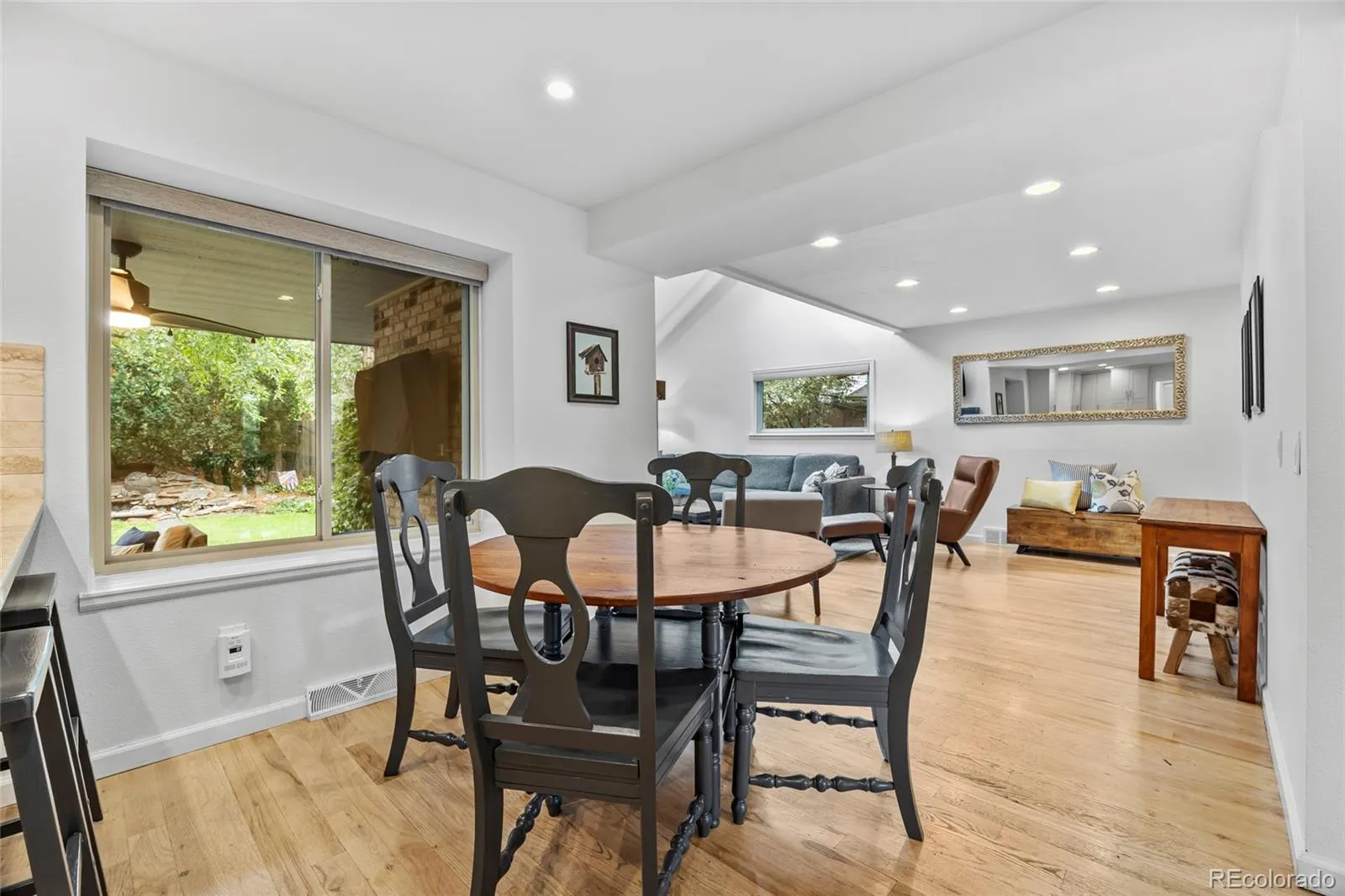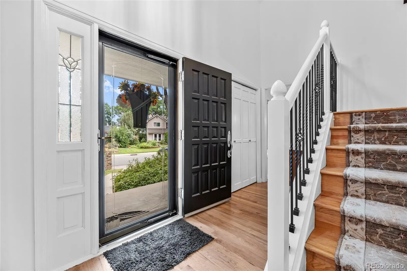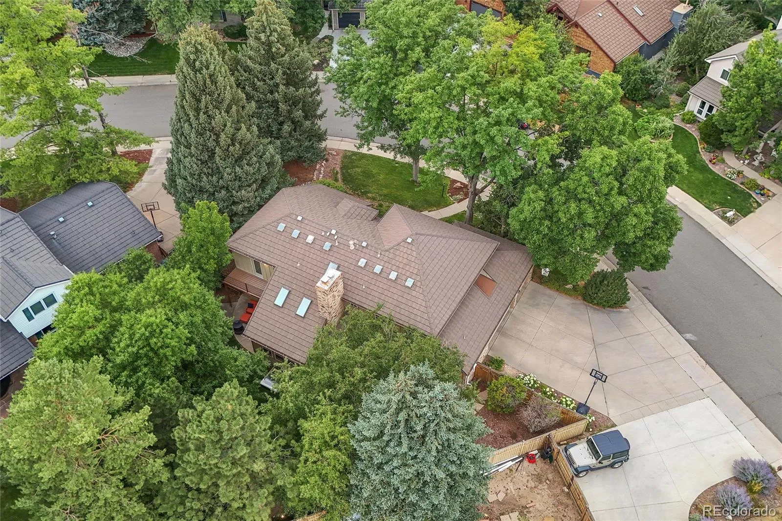 The Hills at Cherry Creek–This is the one! Stunning home offers 6 bedrooms,5 bathrooms w/ over 4,700 sq.ft. of beautifully finished living space. With fresh paint & gorgeous hardwood floors throughout; move-in ready & full of charm. Step inside the impressive foyer with vaulted ceilings, opening to a spacious formal living room with French doors (perfect as a private study) and a stylish dining room with updated lighting. Featuring a main-level bedroom with a private covered deck, perfect for guests, or home office. The inviting family room features vaulted ceilings, skylights, and a cozy gas fireplace. The updated kitchen with warm white cabinetry, granite counters, newer appliances & spacious eat-in area, a wonderful place to gather, cook meals & make memories. Just off the kitchen, you’ll find a convenient mudroom/laundry area, 3-car garage access & the second of 2 main-level powder rooms. The upper level boasts 4 generously sized bedrooms including the expansive primary suite with a private balcony, oversized walk-in closet (plus two more!) & a spa-like en-suite bathroom with soaking tub & walk-in shower. Don’t miss the fully finished basement with the 6th bedroom, full bathroom, wet bar & a massive recreation area- great for workouts, game nights, or a home theater-while still offering ample storage space in the utility room. Outdoors enjoy a brand-new covered patio with ceiling fans and skylights overlooking the private yard with mature trees-your perfect retreat for entertaining or relaxing. Additional highlights include a stone-coated metal roof and newer hot water heater. All this in a prime location just steps to a wonderful community open space and short walk to the Cherry Creek State Park. Not only is this an outstanding home, it accesses the best Cherry Creek Schools including top-rated Cottonwood Creek Elementary, Campus Middle, and Cherry Creek High.