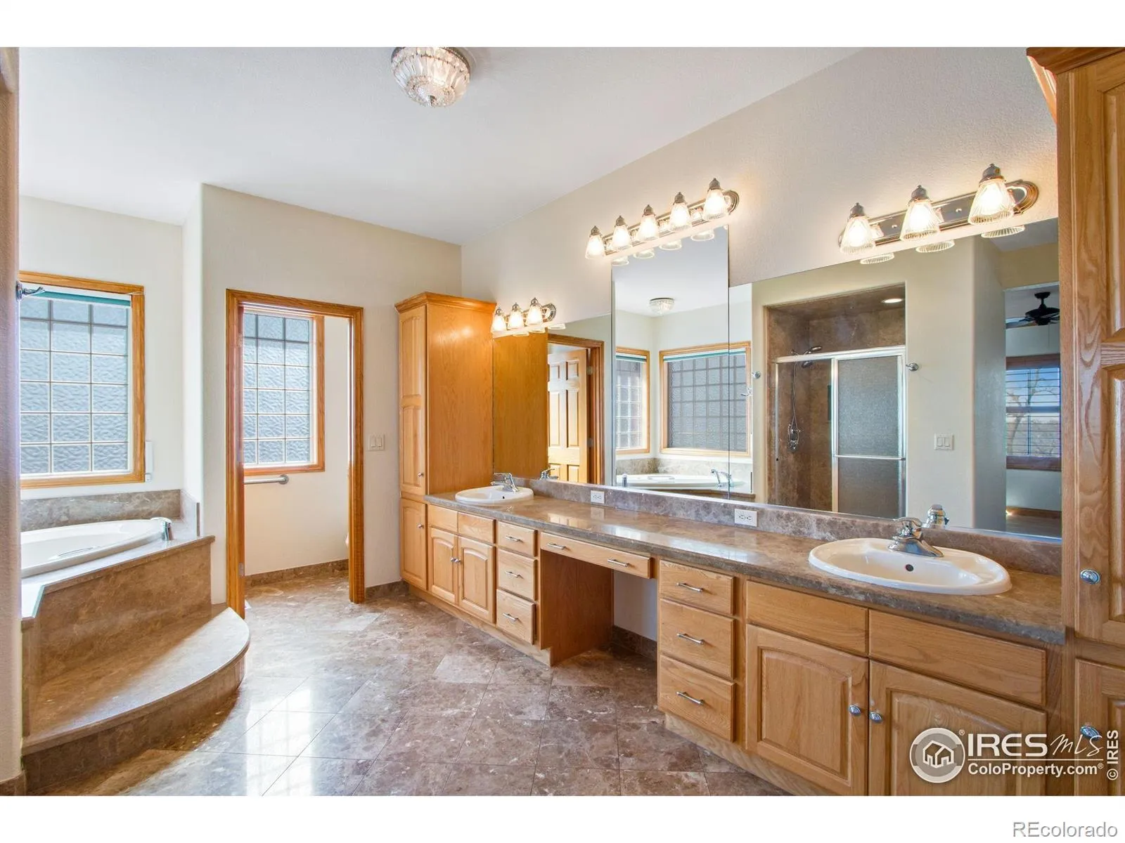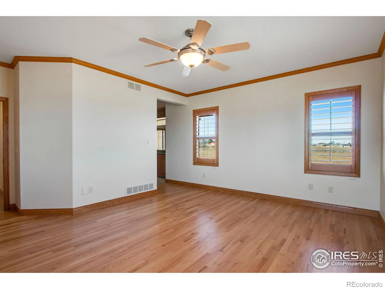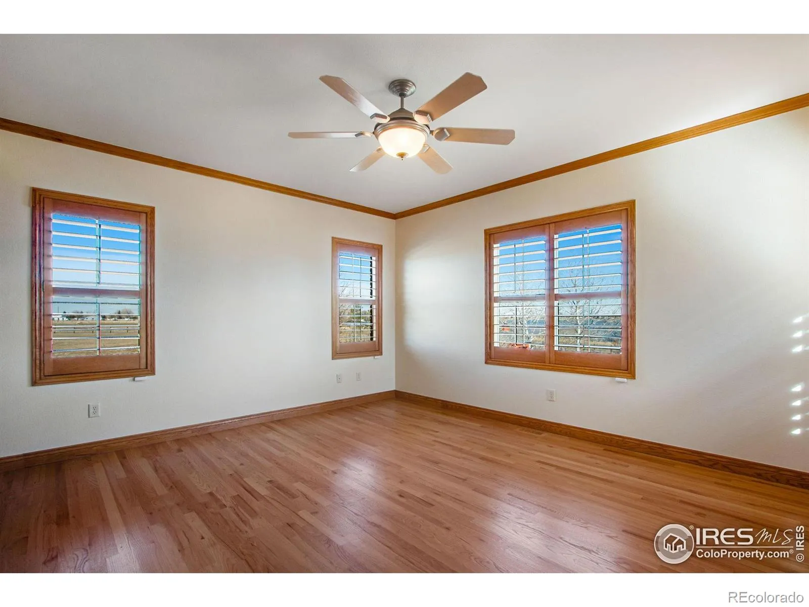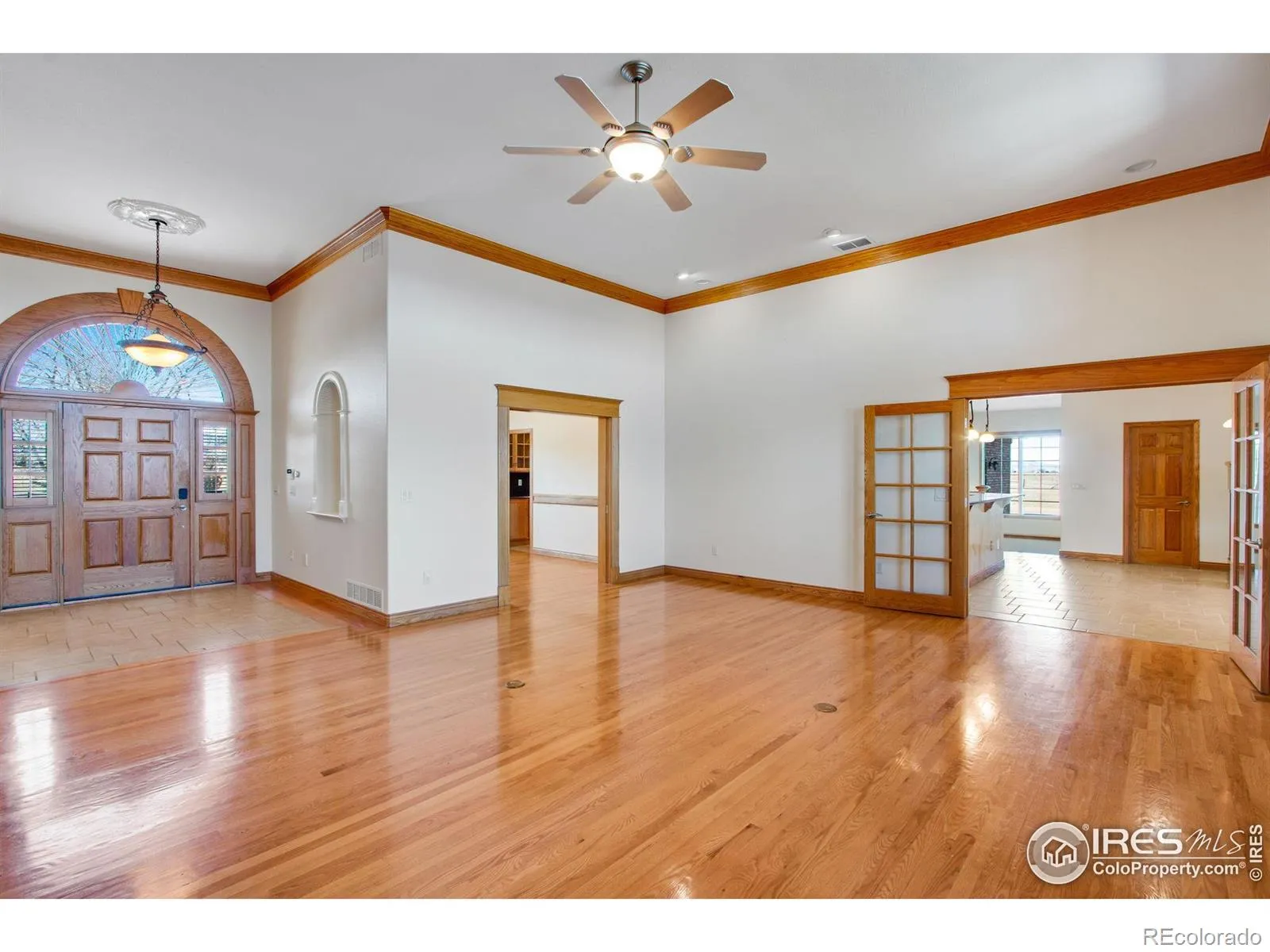 A True Equestrian Waterfront Estate in Paradise Valley. Set on a 4.25 ac. lot w/2 primary suites on main living level, 2 additional bedrooms in Garden level basement in this 7,000+ sq ft. brick ranch w/ garden level basement. Offers a beautiful setting to enjoy Rocky Mountains sunsets t& stunning lakefront sunrises. This is a unique private lot, that allows horses/lg. animals & the opportunity to join Lonetree Lake Club at Heron Lakes TPC golf community. Whether you’re enjoying the tranquility, open space, future opportunity for an equestrian barn, a day on the water, fishing, boating or teeing off at TPC Colorado Championship Golf Course just across the lake, this estate offers an unparalleled opportunity to enjoy everything that northern colorado offers in close proximity. The balance of elegance, space, and outdoor adventures. The home is designed w/ both grandeur & functionality in mind, the main floor living home features soaring ceilings, wood floors, premium custom woodworking & 3 fireplaces. The gourmet kitchen boasts high-end appliances, spacious island, walk-in pantry & butlers pantry to the formal dining room. Ideal for entertaining. The primary suite serves as a true retreat w/cozy gas fireplace, sitting area, cedar-finished walk-in closet, & five-piece bath w/ luxurious finishes. Additional highlights include a private office w/ custom built-in shelves, trim & paneling. Plus a custom inlaid compass design on floor. The functionally finished garden-level basement w/ high ceilings offers 2 bedrooms, family room & ample space for future expansion. Oversized heated 4-car garage w/ 220V power and above garage loft is perfect for hobbyists or those needing extra workspace. With close proximity to the TPC Heron Lakes golf course, (yearly stop for the Korn Ferry Tournaments), local dining, shopping, festivals, entertainment, & wonderful school districts. This is not in a Metro Tax District.