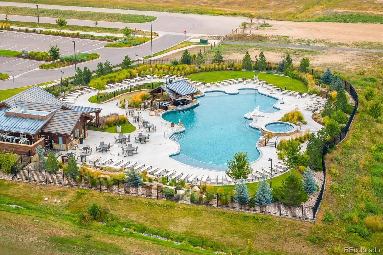 Discover your new home with stunning golf course, lake, & mountain views. This desired ranch-style home comes w/ maintenance-free living in a resort-style community. Situated away from the tee & the green on the 3rd hole of the Heron Lakes TPC golf course, you will enjoy the expansive views out the large windows & 3 panel sliding door. The open-concept design provides the perfect connection for the expanded kitchen, great room, large kitchen island & covered deck. A gas floor to ceiling fireplace & hardwood floors make this a comfortable place to spend your time. On this floor, you will find a spacious primary bedroom with two walk-in closets. Large bathroom with an ultra -shower, double vanity & water closet complete the ensuite. Down the hall, you will find an office (possible 5th bedroom), laundry room, full bathroom, and cozy bedroom with a view of the mountains. Head down the stairs to the garden level to find two large bedrooms w/ walk-in closets and large daylight windows. The rooms’ transom windows extend the natural light into the game room, entertainment area w/ fireplace, and bonus craft room/wet bar/possible kitchenette. Beyond these rooms, you will find the third bathroom & ample storage areas. Light oak wood flooring & custom cabinets create a wonderfully livable area. On the covered deck, you can enjoy the views of the golf course & “Newfound Lake” on Colorado’s warm summer evenings. The deck stairs will take you to the fenced yard & lead you out to the newly designed & installed xeriscape landscaping with bench to view the mountains. Weekly lawn care & winter snow shoveling are provided by the HOA. Enjoy all the amenities that come with owning a home at Heron Lakes. The beautiful clubhouse has two restaurants, a resort-style pool with a swim-up bar in the summer, a year-round state-of-the-art fitness center & miles of walking trails. Also available is membership to the Lone Tree Reservoir where you can boat, paddle, or swim during warmer months.