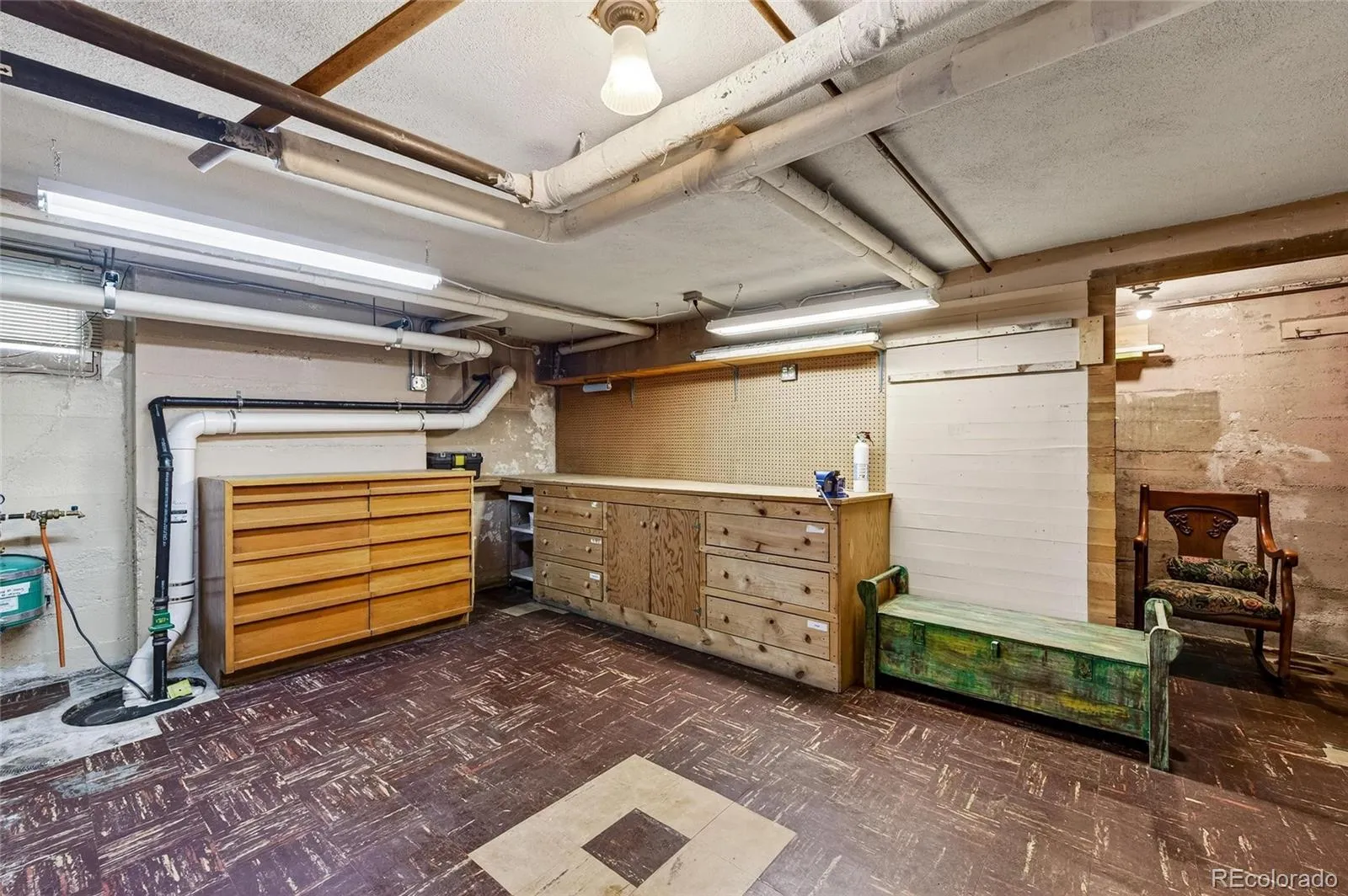 Spacious main-floor bedrooms feature unique original built-ins, with a versatile den or large closet off the second bedroom. The basement includes two non-conforming bedrooms, a 3/4 bathroom, a workshop/mechanical room with ample shelving, and a 10′ x 4′ pantry or storage. A radon mitigation system, installed in 2017, ensures peace of mind.