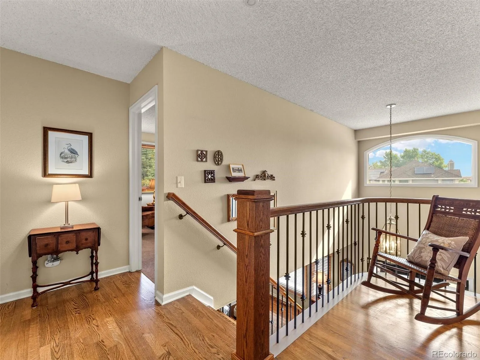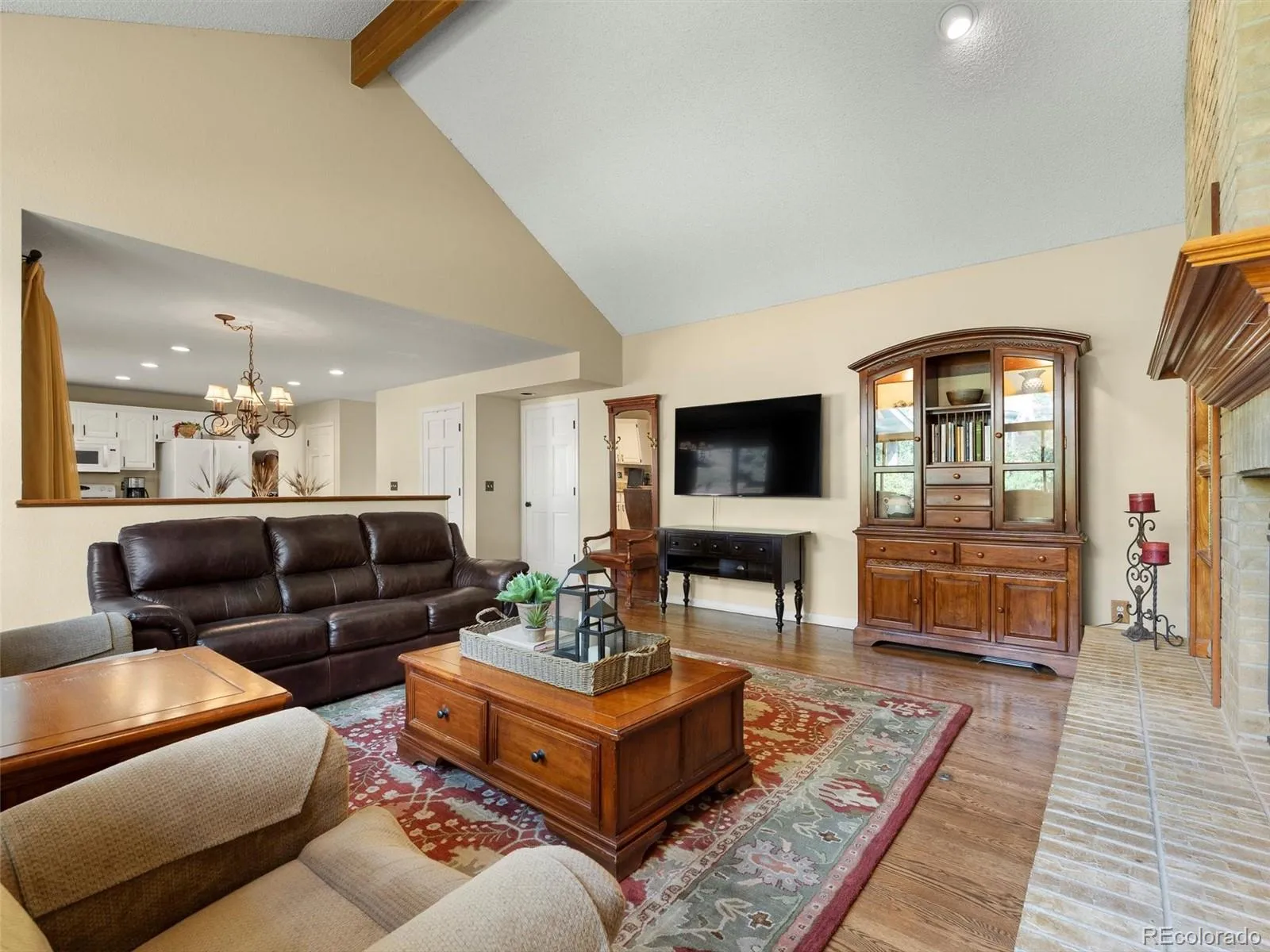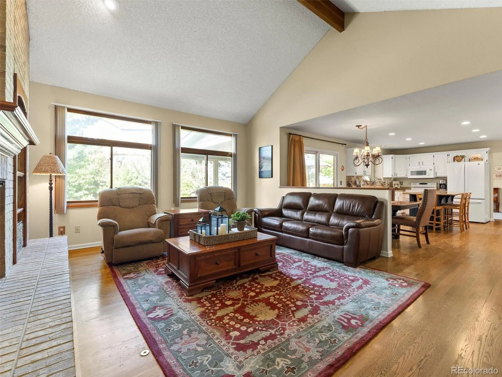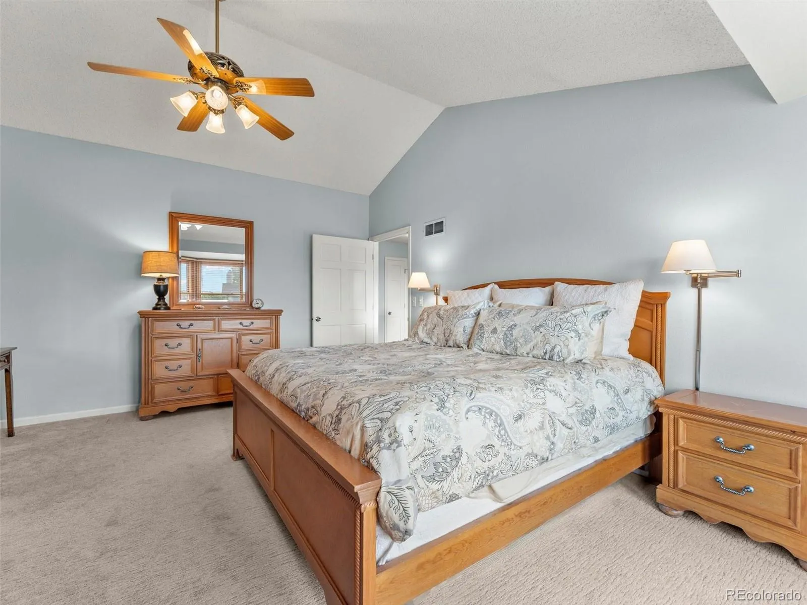 Updated kitchen with granite countertops and an expanded island, white cabinets and appliances, including a double oven. Vaulted Family room with gas log fireplace, recessed lighting, custom shelving and brick surround. Living room comes with crown molding and custom blinds and opposite is the main floor study with book shelving, French doors and ceiling fan. Large formal dining room with a bay window and Upstairs there is a luxurious vaulted primary bedroom and bath with expanded shower, radiant heated flooring and walk in closet along with a coffee bar. Large secondary bedrooms, all with ceiling fans and custom blinds. Walk out to the backyard and notice the big side yards that comes with a fabulous patio, brick pavers and a custom trex deck that is covered and has privacy sun shades. Three car garage gives you plenty of space and a basement that you can finish with your personal taste. All TV’s are included in this wonderful home and one you would be proud to own. Huge Price reduction in one of the best subdivisions in Highlands Ranch. Make it yours.