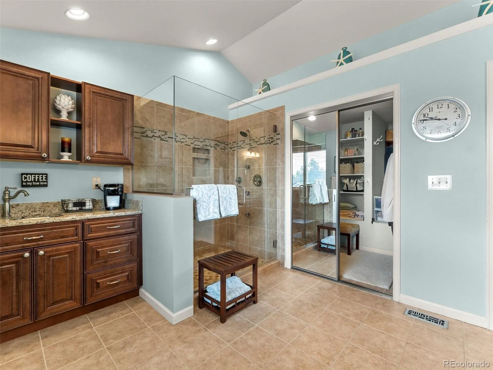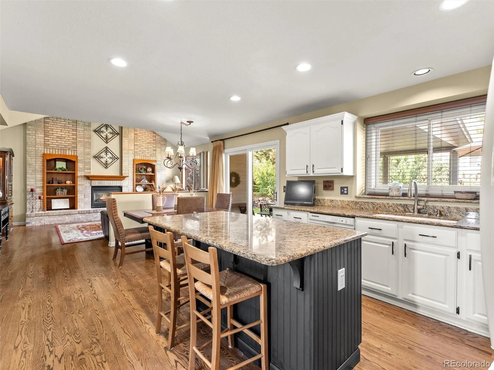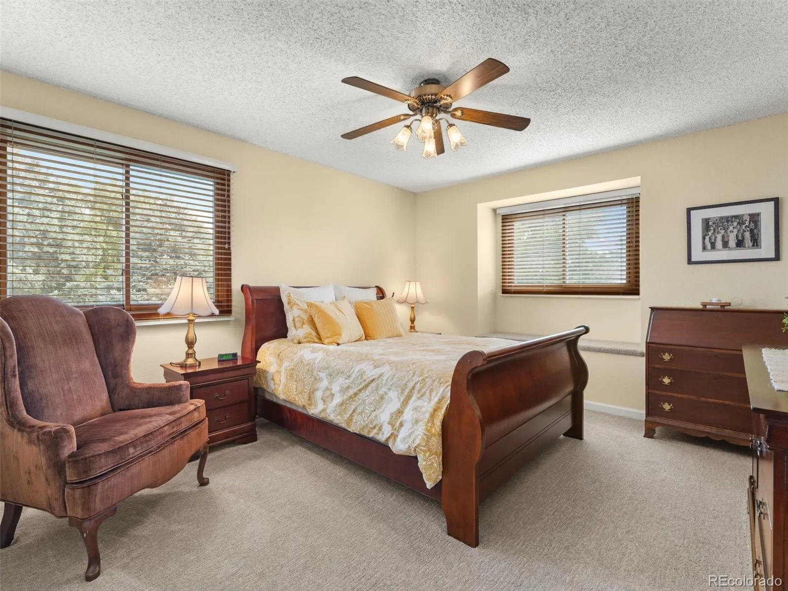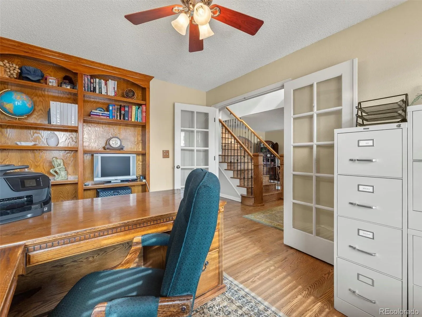 Updated kitchen with granite countertops and an expanded island, white cabinets and appliances, including a double oven. Vaulted Family room with gas log fireplace, recessed lighting, custom shelving and brick surround. Living room comes with crown molding and custom blinds and opposite is the main floor study with book shelving, French doors and ceiling fan. Large formal dining room with a bay window and Upstairs there is a luxurious vaulted primary bedroom and bath with expanded shower, radiant heated flooring and walk in closet along with a coffee bar. Large secondary bedrooms, all with ceiling fans and custom blinds. Walk out to the backyard and notice the big side yards that comes with a fabulous patio, brick pavers and a custom trex deck that is covered and has privacy sun shades. Three car garage gives you plenty of space and a basement that you can finish with your personal taste. All TV’s are included in this wonderful home and one you would be proud to own. Huge Price reduction in one of the best subdivisions in Highlands Ranch. Make it yours.