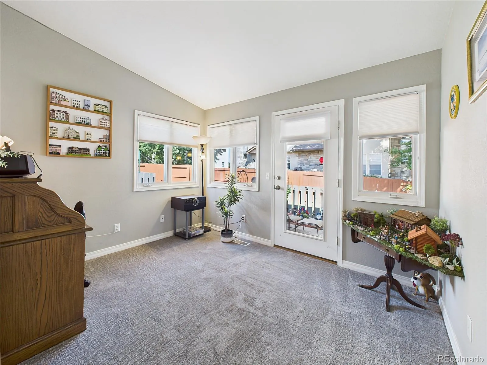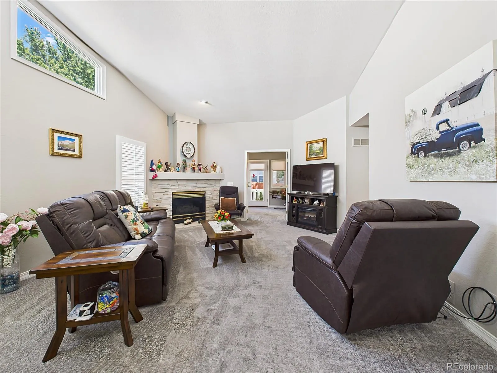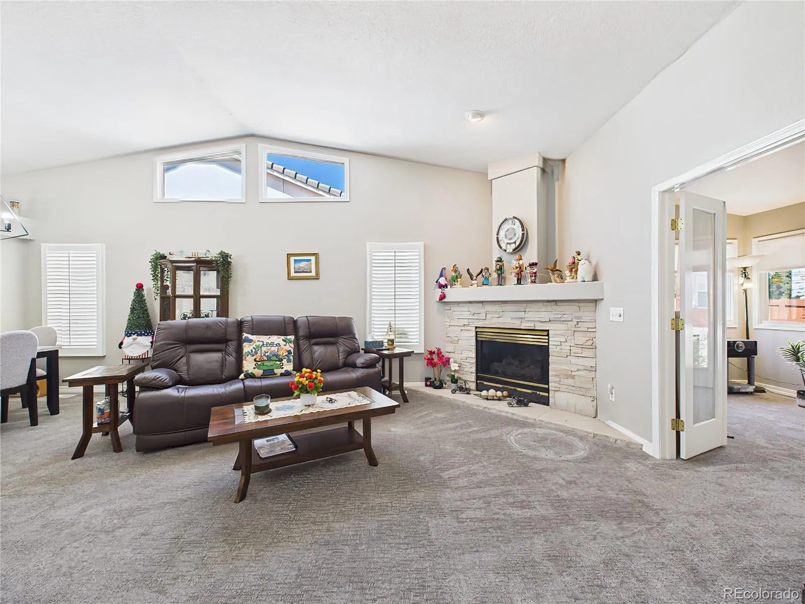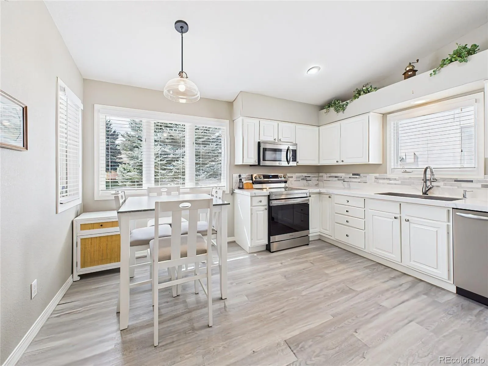 Located in the sought-after Highland Oaks at Cheyenne Mountain Ranch, this meticulously maintained ranch-style home blends comfort, convenience, and thoughtful updates. The stone-accented exterior is framed by mature landscaping, a welcoming front patio, and a spacious driveway. Inside, the open-concept layout is filled with natural light and updated with luxury vinyl plank flooring and fresh neutral finishes. The kitchen shines with stainless steel appliances—including a new range (installed August 2024) and upgraded ice maker (July 2024)—plus ample cabinetry and a charming bay window breakfast nook. Fresh carpet was installed throughout in October 2024, complementing the bright bedrooms and flexible sunroom/office space. The extended back patio offers expanded outdoor living with custom hardscaping, a newly erected pergola (late 2024), and a retractable awning added in August 2025 for shade and comfort. Additional upgrades include: Built-in shelving and two wall-mounted cabinets in the garage, New privacy fence (February 2025), Garage door spring replacement, Full air duct cleaning (November 2024). This home offers low-maintenance living in a quiet, private community with nearby Quail Lake access, scenic trails, and close proximity to shopping, dining, and Fort Carson.