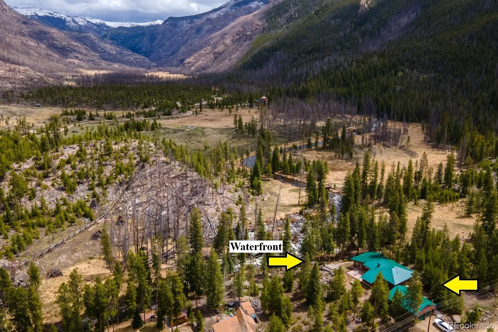 Legacy Property! Streamside Cabin on 2 lots beyond the east end of the boardwalk shops & restaurants & beach activity – just over a mile to walk or bicycle in, if you are feeling energetic. Access to Rocky Mountain National Park is just down the road. The Boat Launch onto Grand Lake is a mile to the east. Located just where the stream turns; that cold clear water is coming out of the Park and heading downstream past the Rapids Restaurant on its way into Grand Lake. 1400 square foot home is mostly on one level. New patio. Trees have been groomed down to near the water’s edge. Garage for toys is 672 square feet. Contact us for a detailed presentation including details about the well and septic.