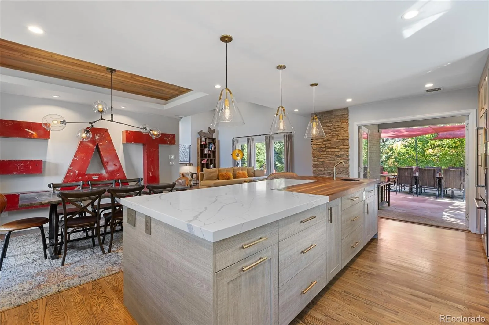 *PRICE IMPROVEMENT* SELLER OFFERING UP TO 1% RATE BUYDOWN* Welcome to one of the premier estates in Cherry Knolls. An Entertainer’s dream home! Stylishly renovated with elegant finishes and quality upgrades throughout. From the Kitchen meander through beautiful double patio doors to a multi-tiered flagstone patio with cozy private areas to entertain guests coupled with a lush, tiered lawn and beautiful landscaping. The built-in grill and chefs counter make outdoor cooking a breeze. The main level is an open floor plan concept which includes the dining area, living room with cathedral ceiling encased with wood ceiling and beams finished with a stacked stone fireplace. Refinished hardwood throughout most of the main and lower levels. Enjoy the comfort and ease of mind with modern updates, including newer windows and doors, a new combo Boiler/Hot Water Heater, Radon mitigation system, an energy efficient evaporative cooler, and a new class 4 Impact Resistant roof that will save you thousands in insurance. Venture to the upper level, where you will find three spare bedrooms, a shared ¾ bath, and a primary suite that feels like your own private retreat, including a full primary bath with an elegant soaking tub, ambient lighting, and an overhead shower. The lower level boasts a large family/TV room leading to a full finished basement with a large rec room, an office or extra room. Oversized garage with built-ins Located near Sandberg Elementary, Cherry Knolls Park, Dry Creek Trail, and just 5 minutes away from The Streets of SouthGlenn. This luxury 4 bedroom 3 bath designer home on an immaculate and beautifully landscaped 1/3 acre corner lot truly has it all! Highlights: • Incredible Curb Appeal • Amazing .29 Acre Corner Lot • Year Built 1965 • Fully remodeled 2019 & 2024 • Spacious Open Floor Concept • Open Dining area Casual Breakfast Bar • Total interior living 3,296 Sq. Ft. * All information herein is deemed reliable but should be independently verified.