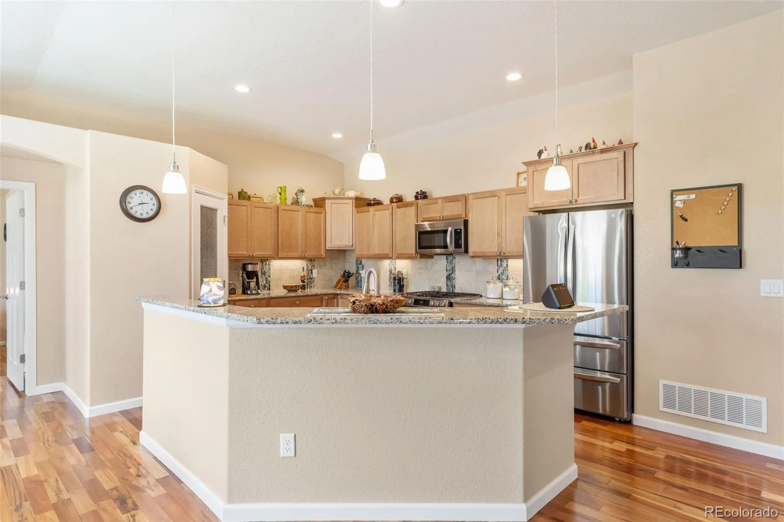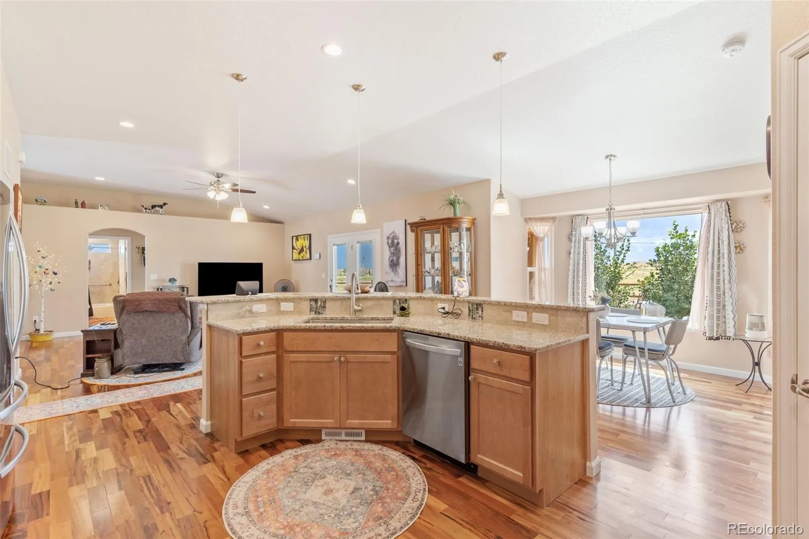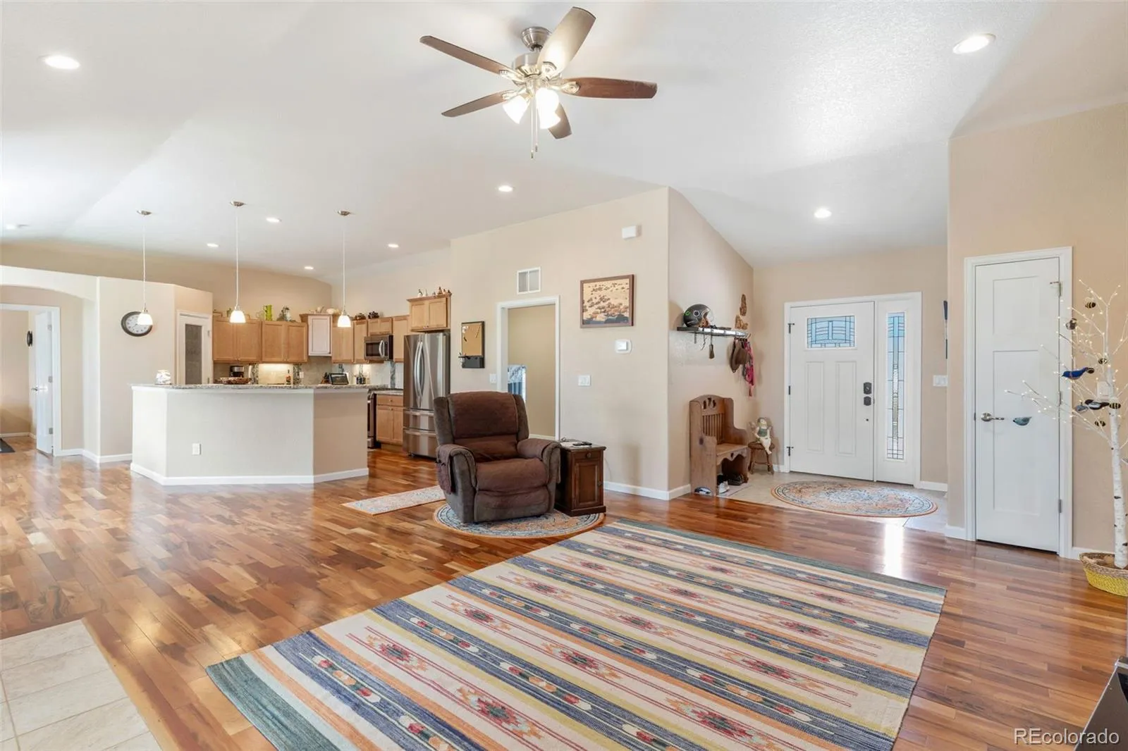 Welcome to this beautifully maintained ranch-style home situated on a level, landscaped lot in Pueblo West! This spacious one-level home features an open floorplan with vaulted ceilings, perfect for entertaining or relaxed everyday living. The bright and inviting living area flows effortlessly into the dining space and well-appointed kitchen, complete with granite countertops, ample cabinetry, and a pantry for additional storage. The primary suite offers a peaceful retreat with a large walk-in closet and an en suite bath featuring modern finishes. Additional bedrooms are generously sized, and all living spaces are thoughtfully designed to maximize comfort and accessibility—no stairs throughout! Enjoy Colorado’s stunning sunsets from the covered back patio, or unwind in the fenced front yard that’s beautifully landscaped on all sides. The oversized 3-car garage provides plenty of room for your vehicles, toys, and tools, with extra storage space and convenient access to the laundry room with built-in cabinetry. Located just minutes from local amenities and open space, this home is the perfect blend of rural charm and modern convenience. Don’t miss your chance to own this move-in-ready gem!