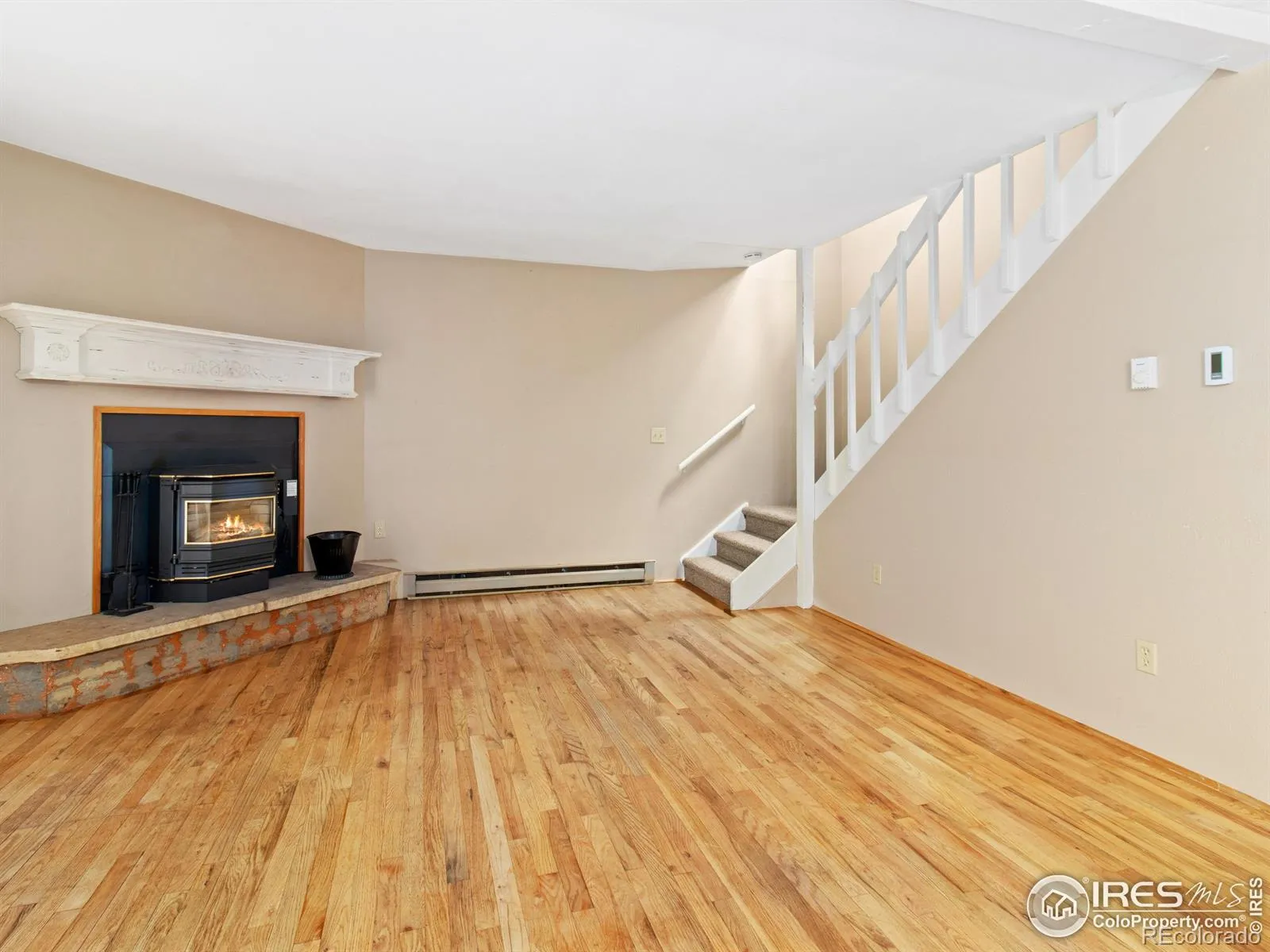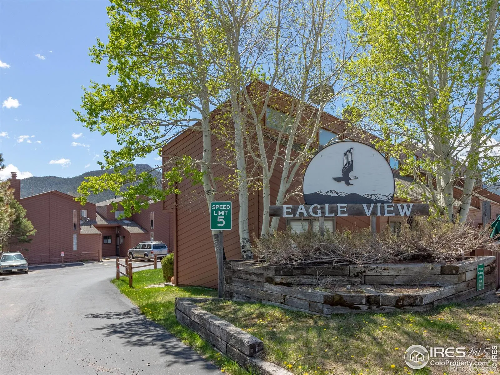 Here is your chance to own in Estes Park, Colorado! This Eagle View 2-bedroom, 1.5-bath condo is conveniently located in the heart of the Estes Valley. Enjoy the open floor plan on the main level including living room with hardwood flooring and fireplace, spacious dining room plus large kitchen with breakfast bar and 1/2 bathroom with laundry hook ups. The fireplace has a pellet stove insert to keep the heating bills low. The upper level is newly carpeted and has 2 bedrooms and a full bath, plus a bonus enclosed balcony to appreciate year round. Plus, benefit from assigned parking right at your doorstep and common space deck. Whether you are looking for an investment property, a personal mountain retreat for yourself or a full time residence this property offers low maintenance mountain living. Enjoy an unbeatable location with direct access to the hike/bike trail, and just a short walk to the Estes Park 18-hole golf course. You’re also close to downtown Estes Park and only a quick drive to Rocky Mountain National Park. This turn-key, freshly painted condo is ready for you to move in and enjoy.